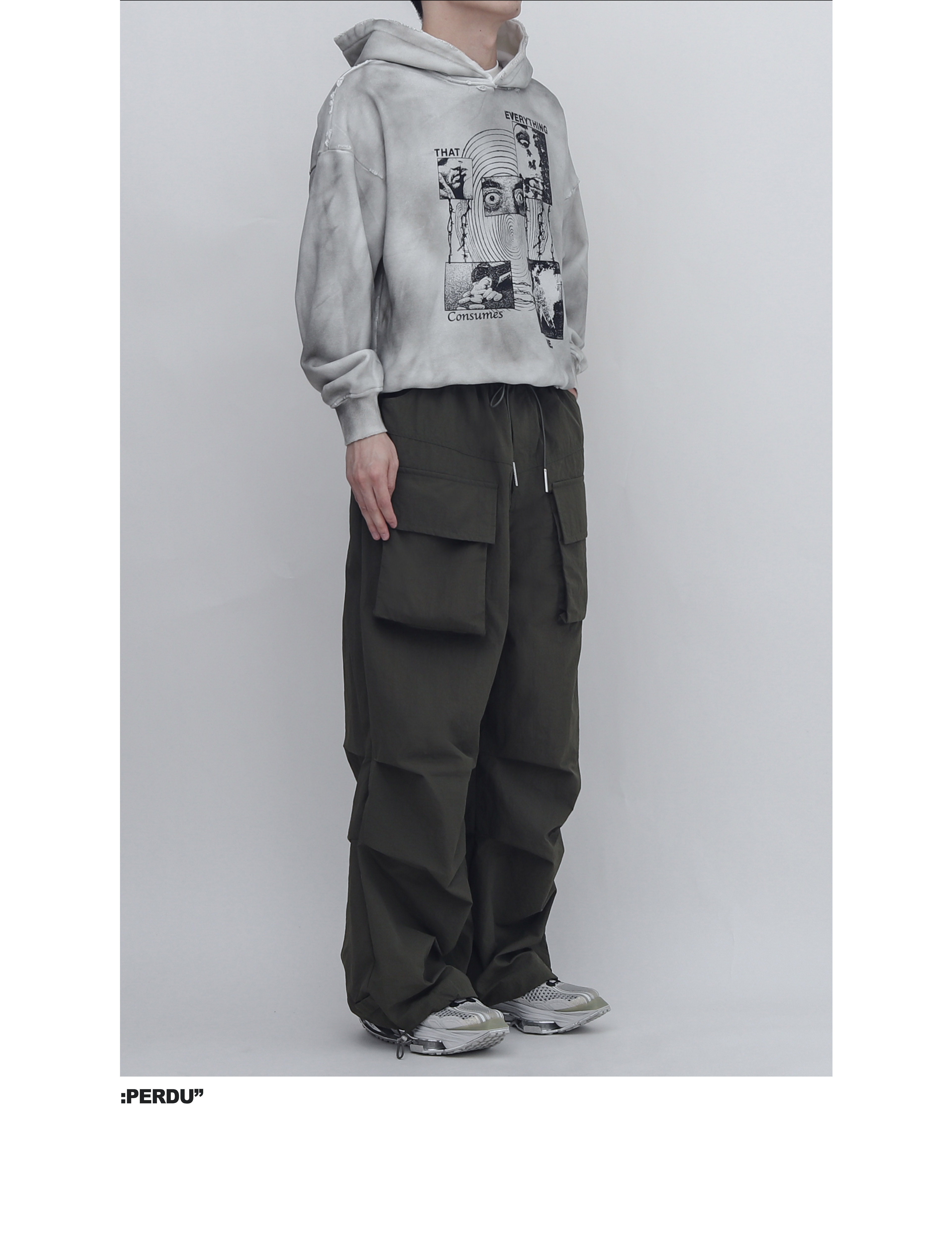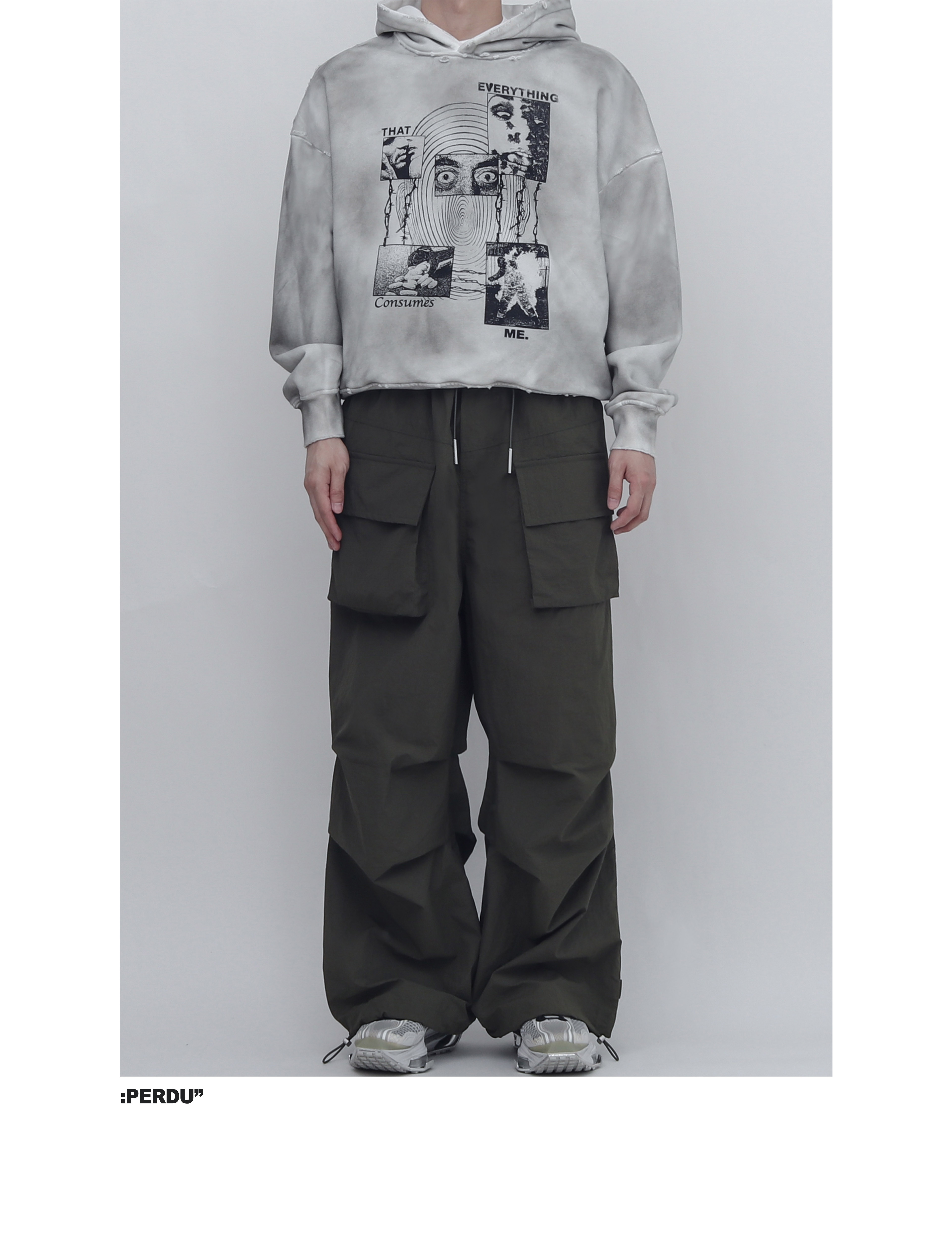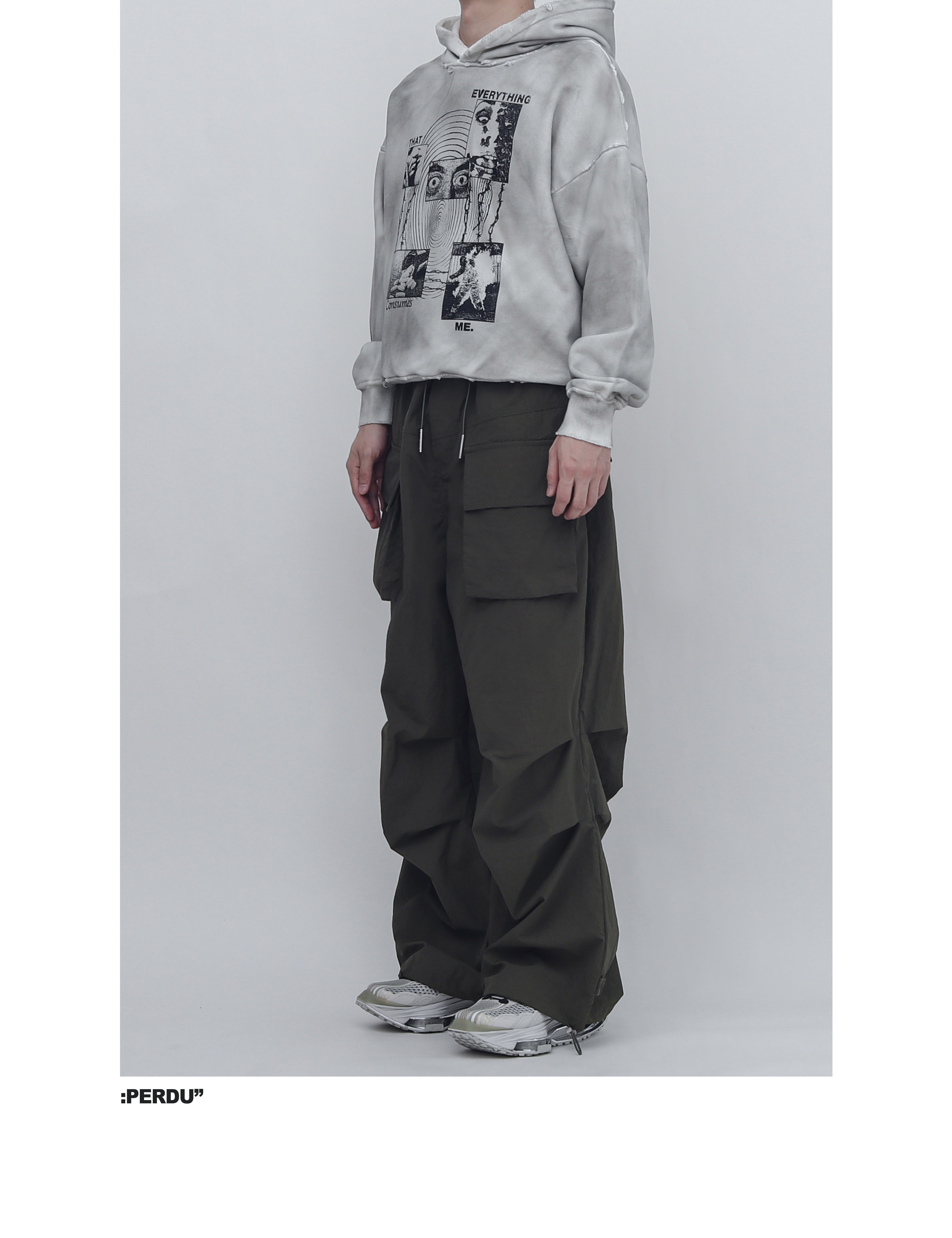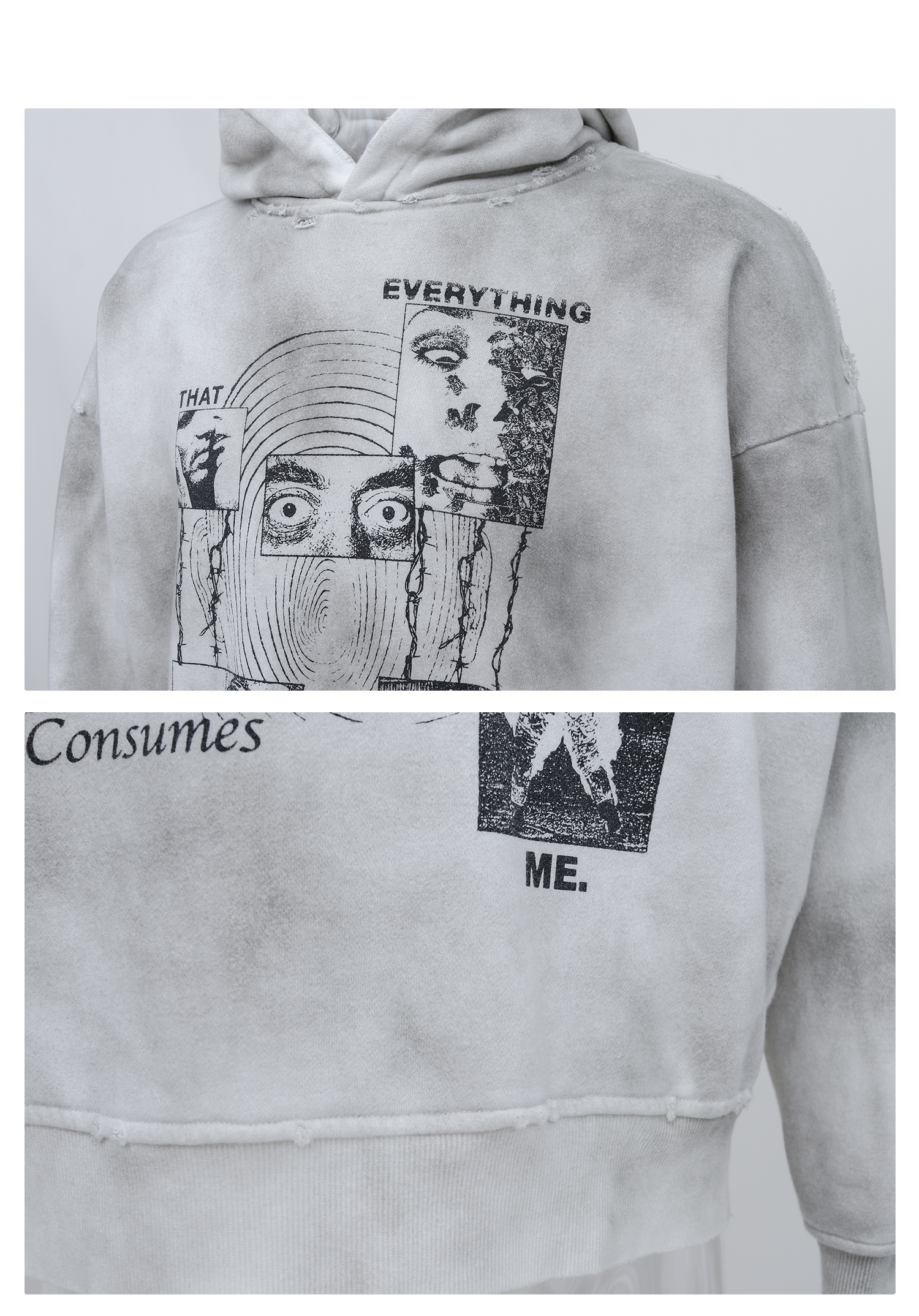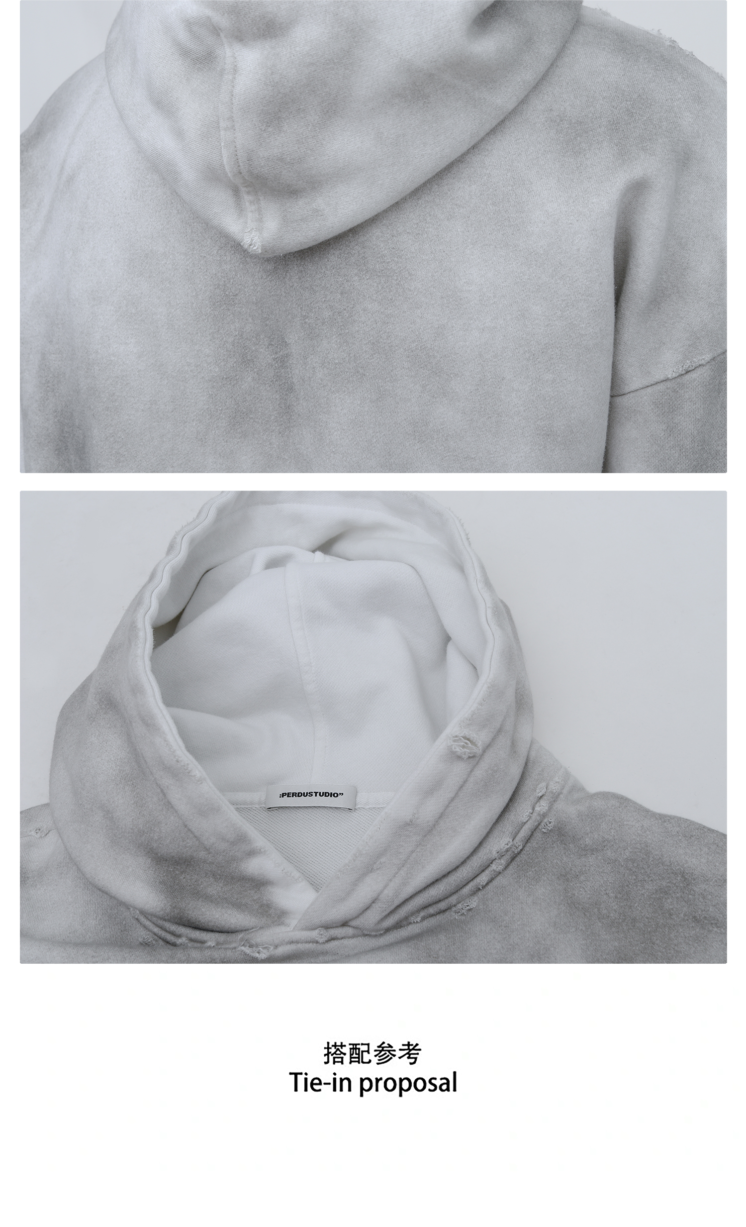 PERDU Dirty Dye Old Wash Water Damage Print Hooded Sweater