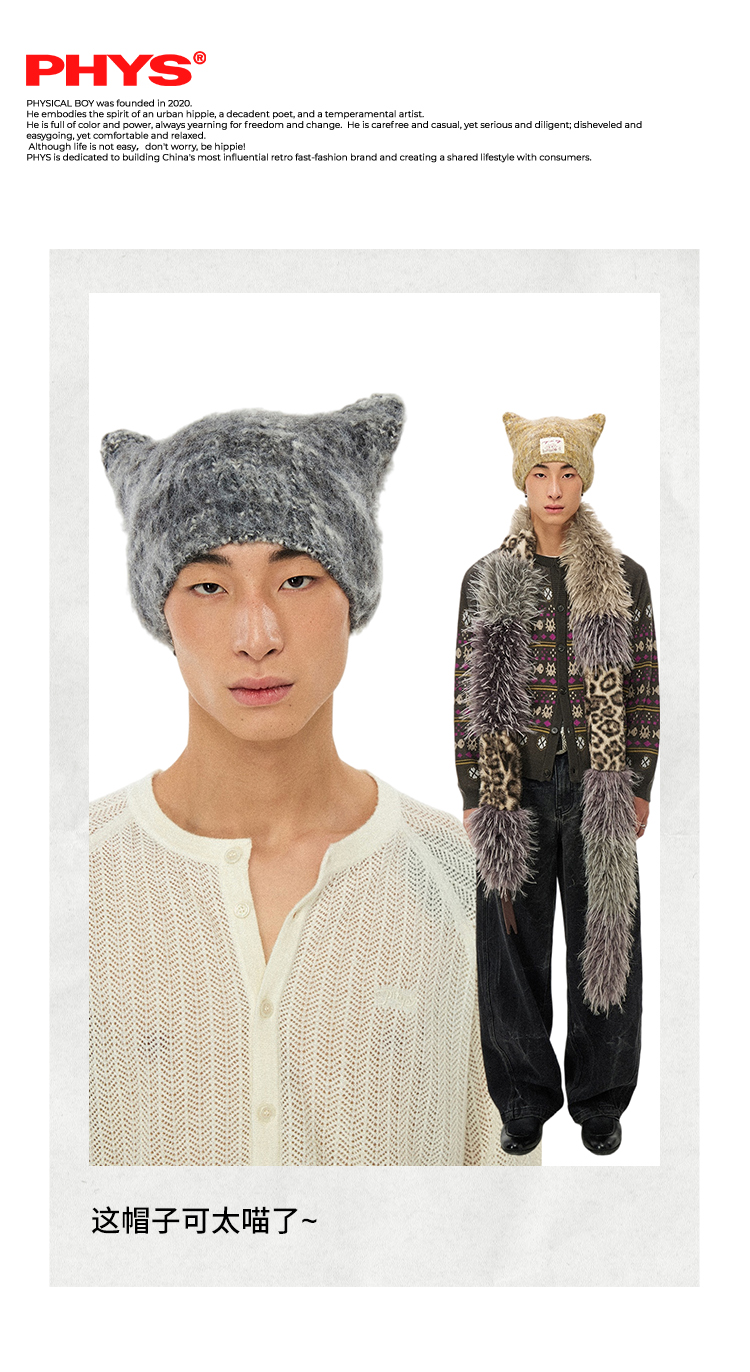 PHYS Natural Gradual Change Smart Cute Wool Cat Ear Hat