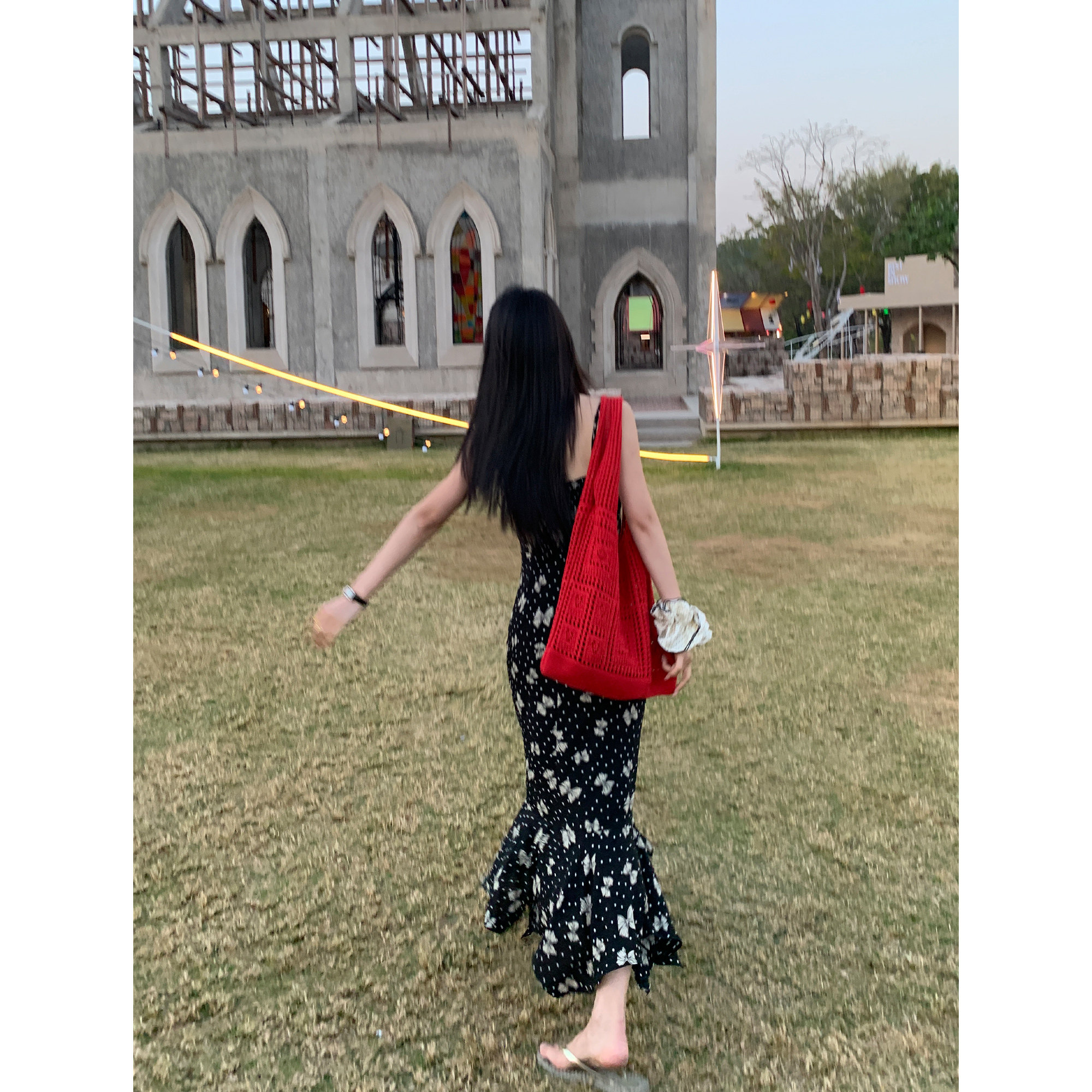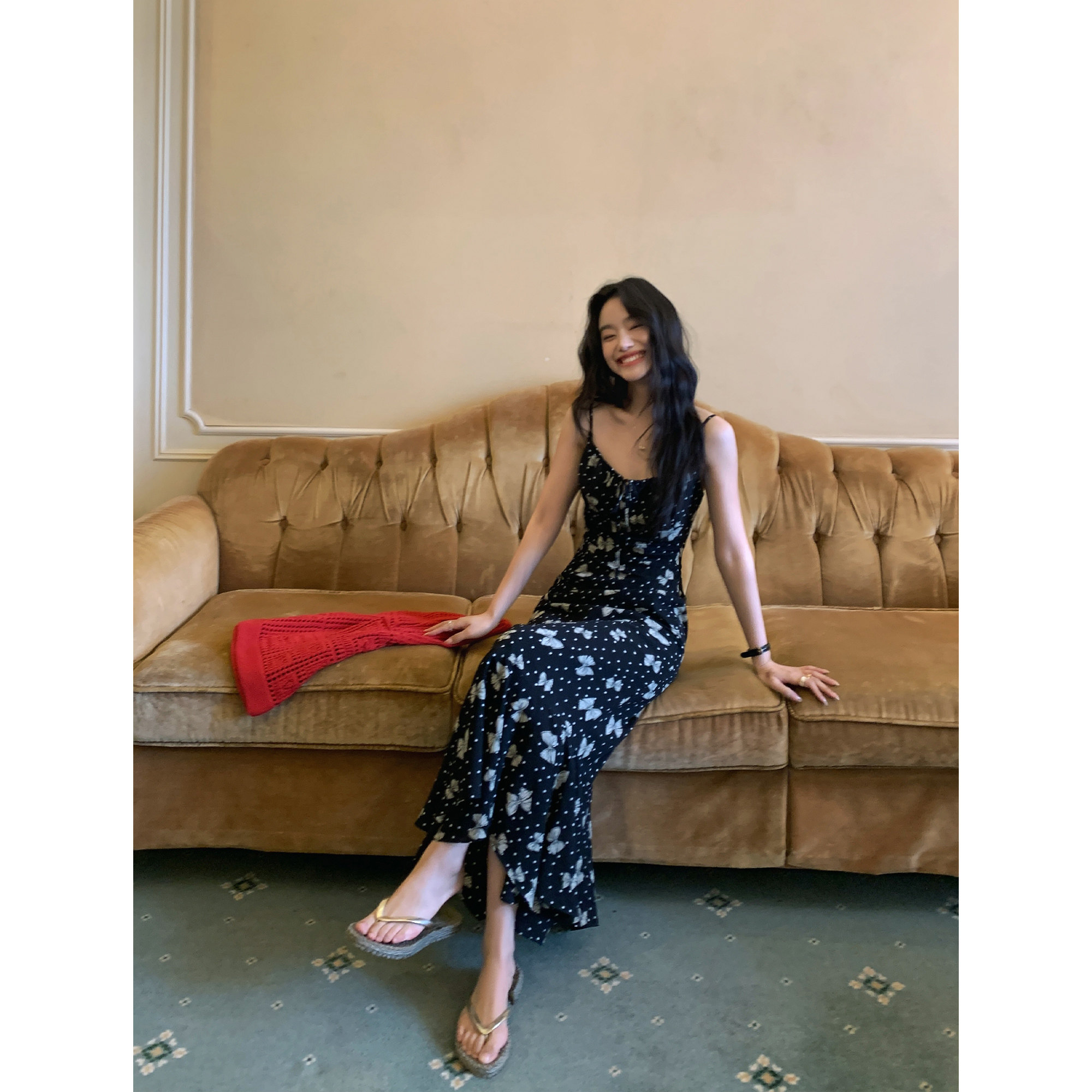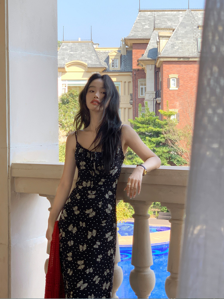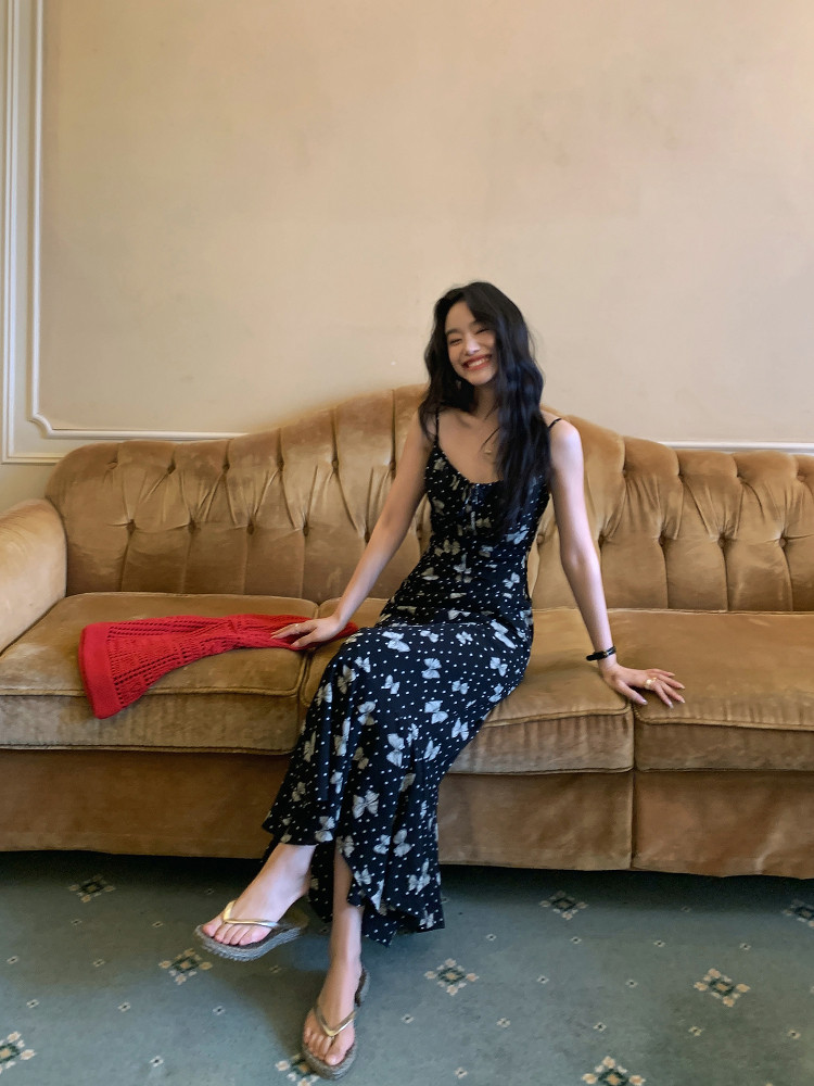 Pusumede Butterfly Print Suspender Dress