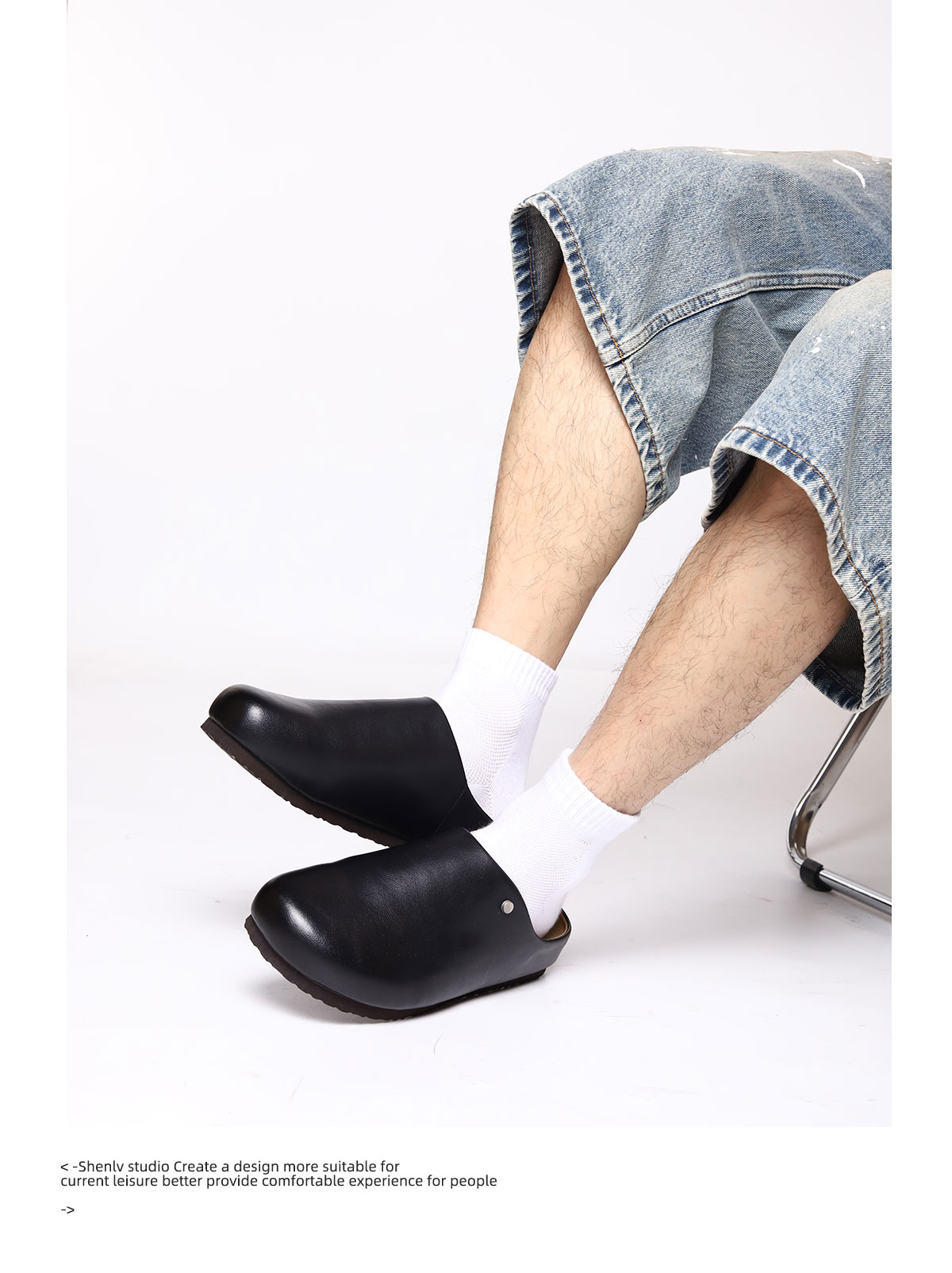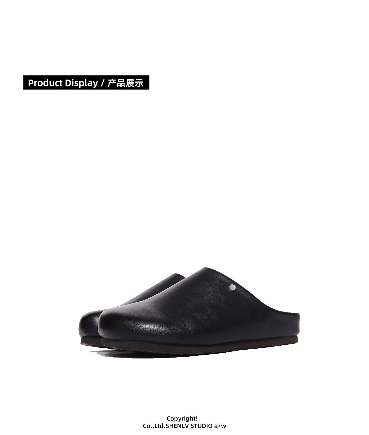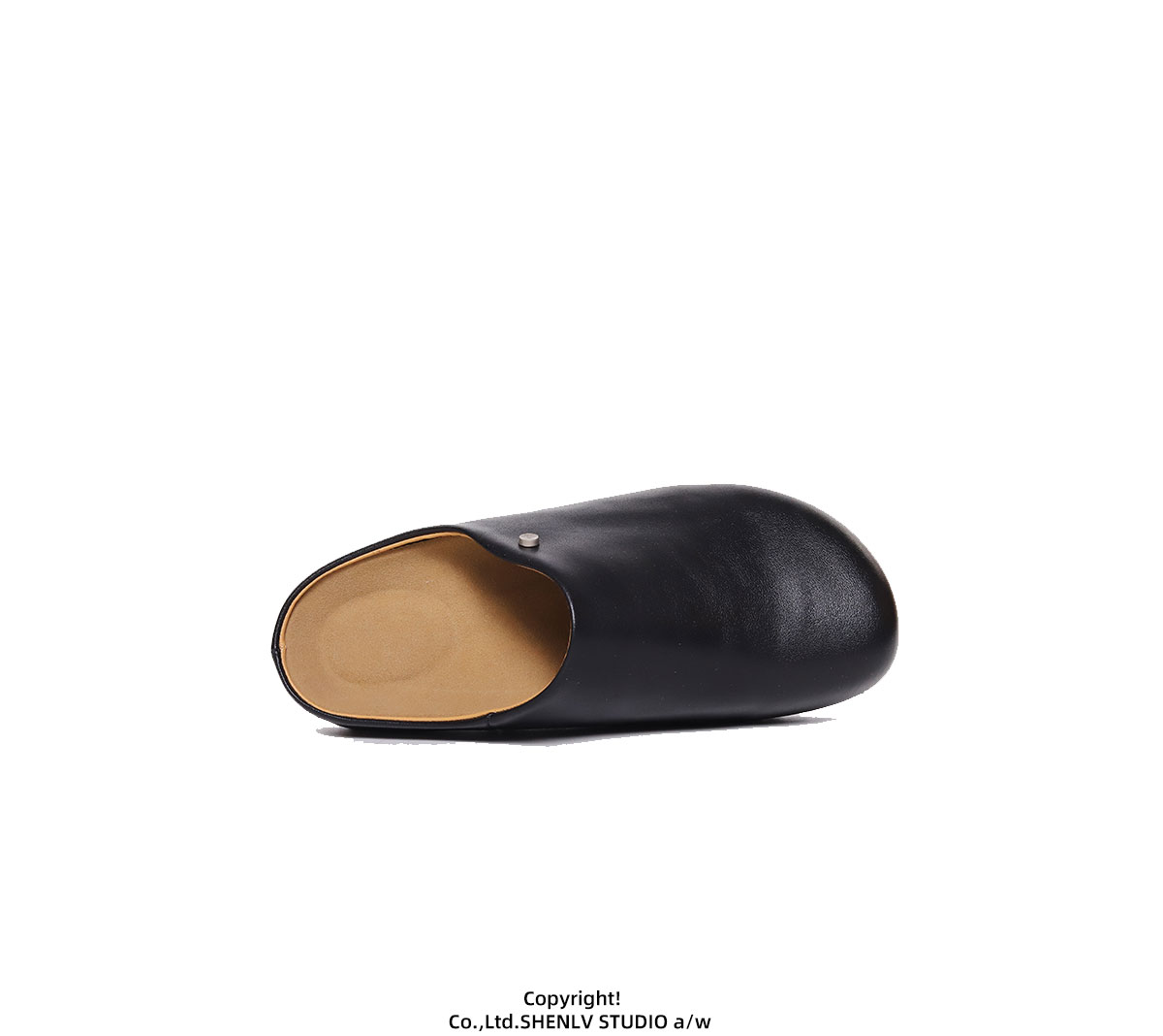 SHENLV STUDIO Black Simple Thick-bottomed Half-mop Outer Leather Slippers