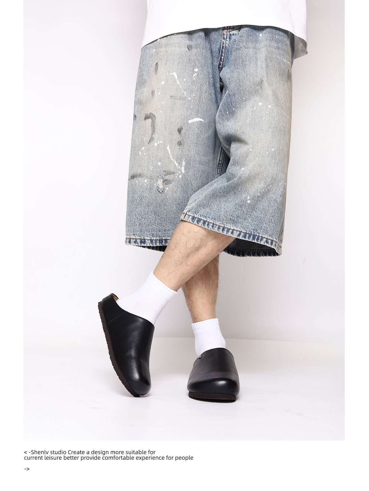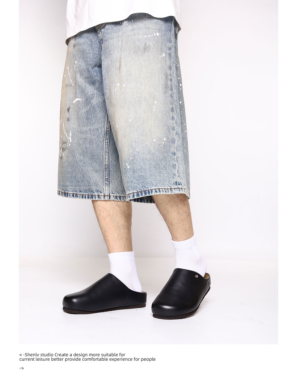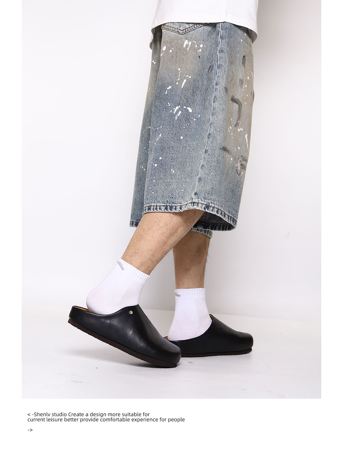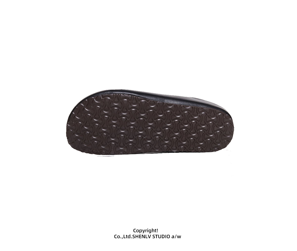 SHENLV STUDIO Black Simple Thick-bottomed Half-mop Outer Leather Slippers