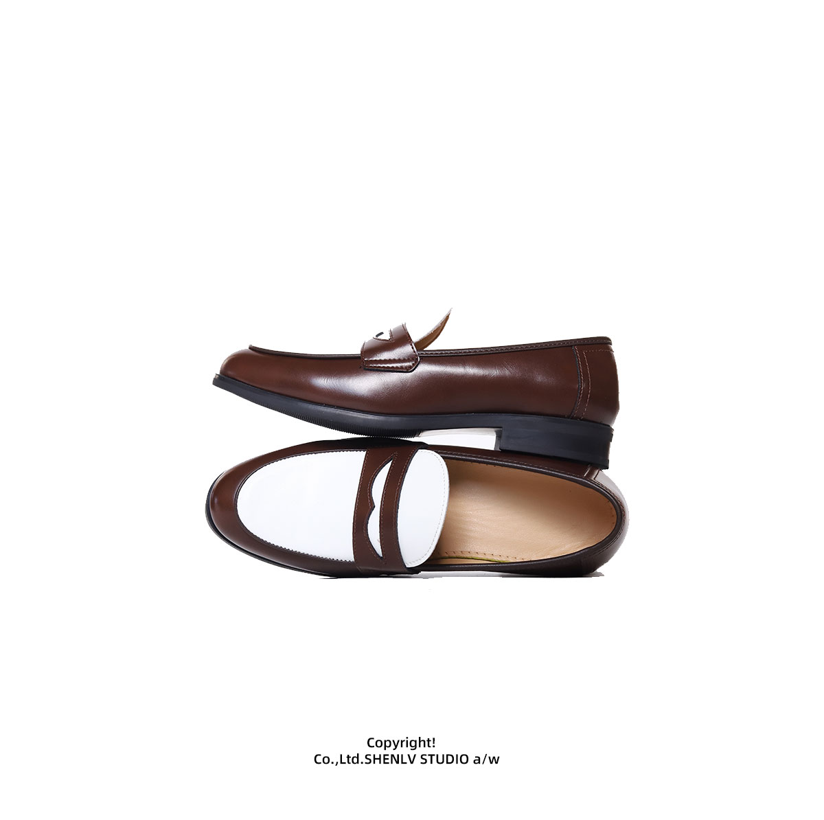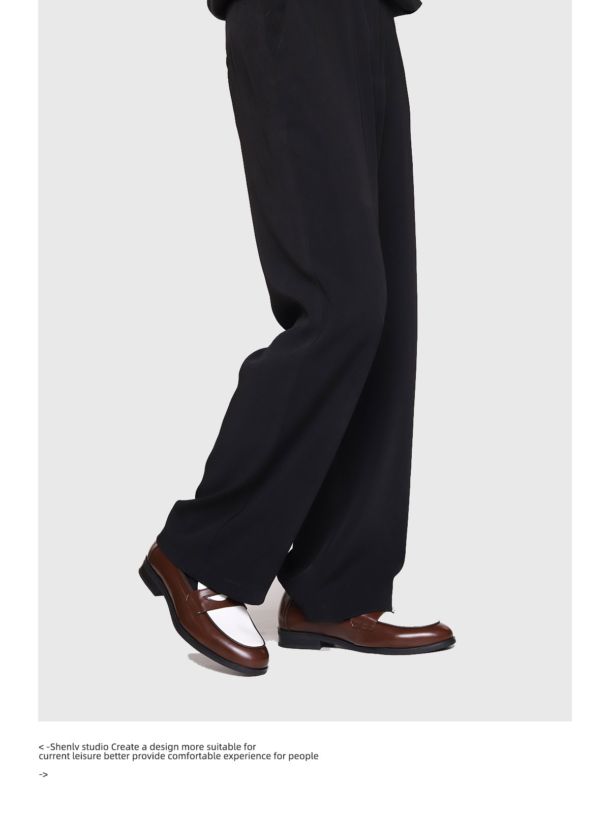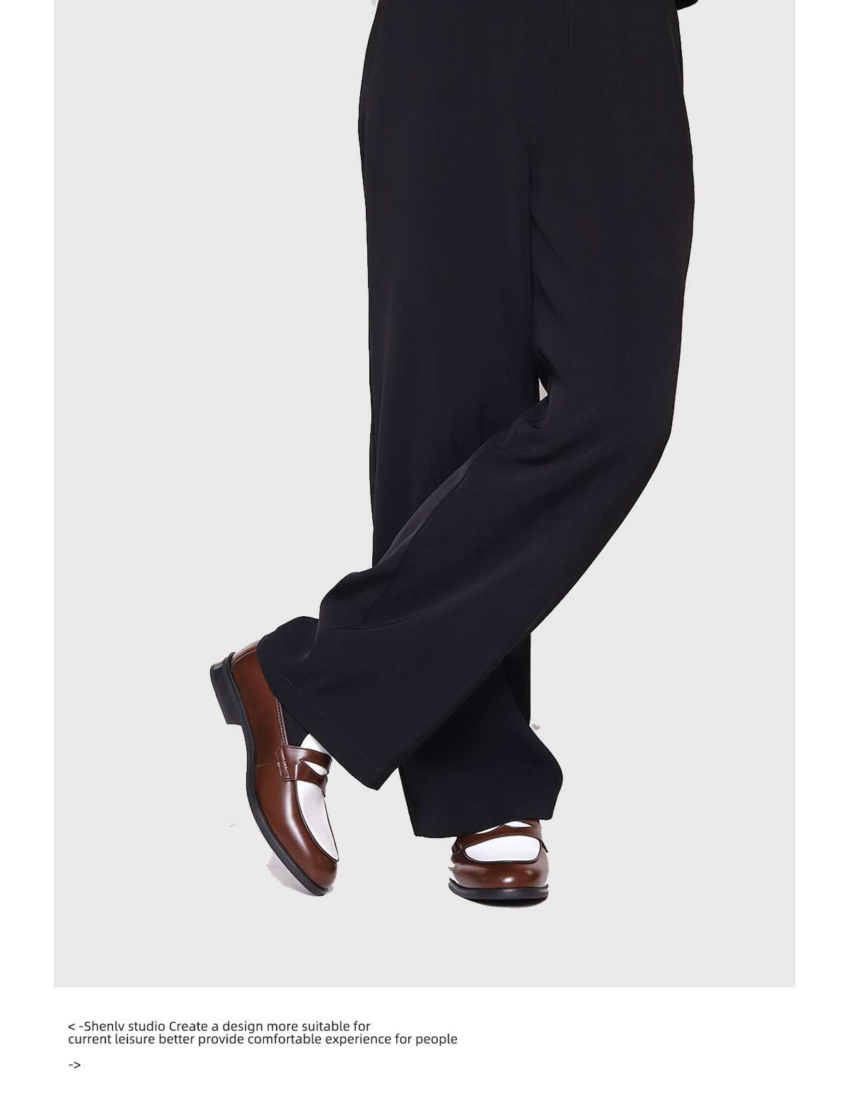 SHENLV STUDIO Pointed Round Head Color Matching One-pedal Thin-soled Derby Leather Shoes