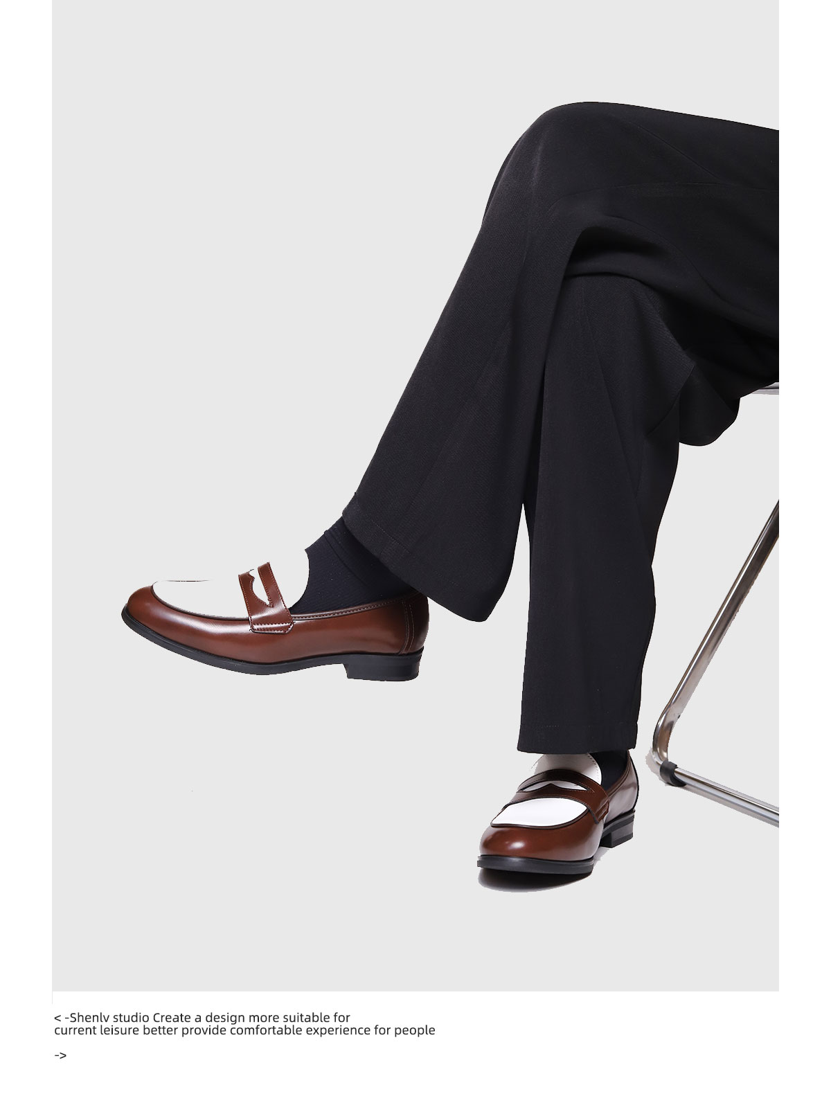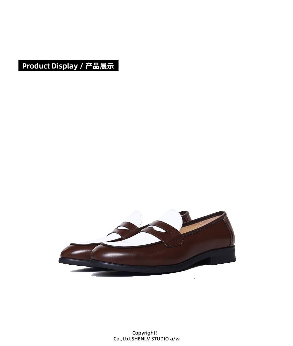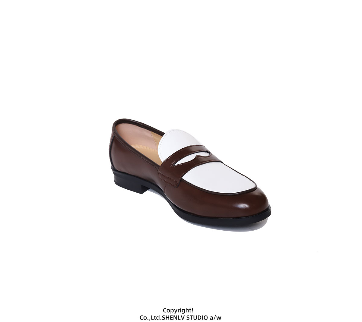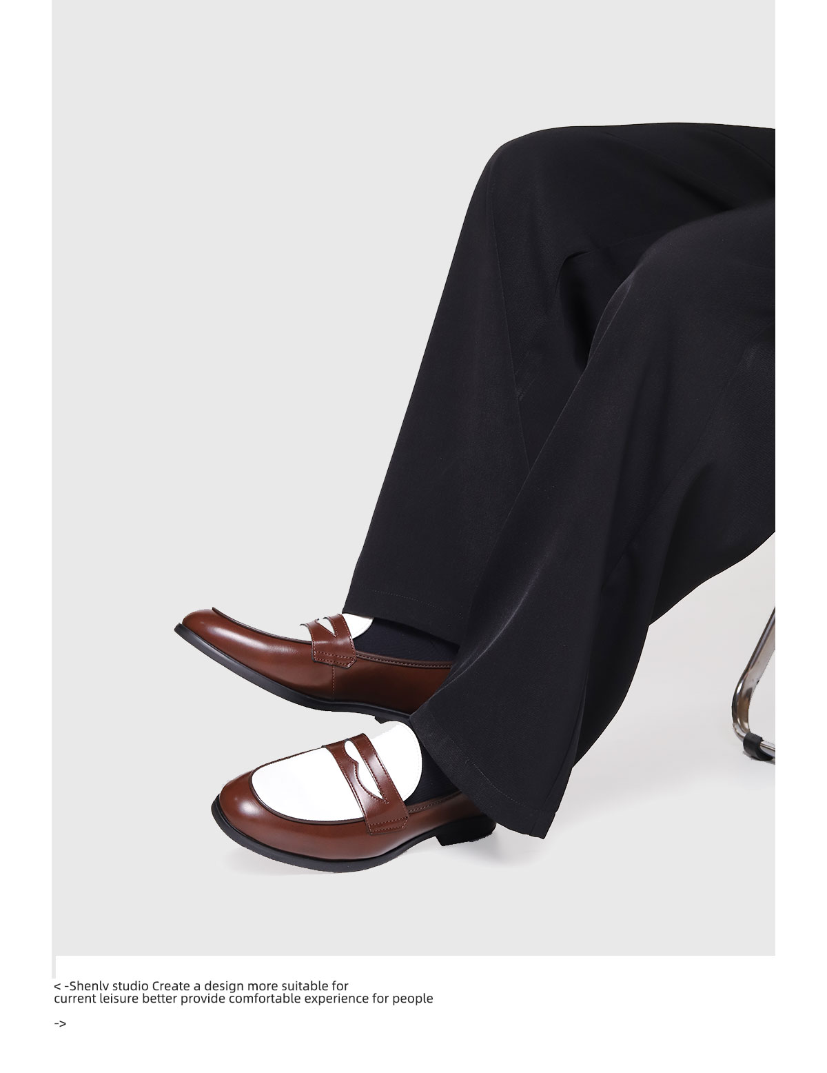SHENLV STUDIO Pointed Round Head Color Matching One-pedal Thin-soled Derby Leather Shoes