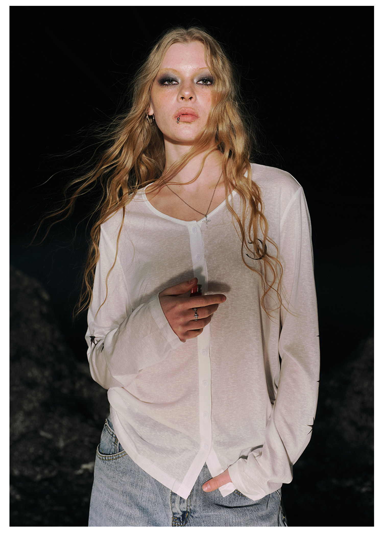 SMILEDDD Micro Transparent Loose Casual Long Sleeve