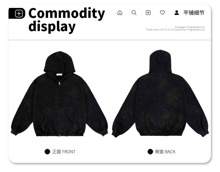 FORGIVNESS Dirty Fit Mud Dyed Dirty Zipper Hoodie