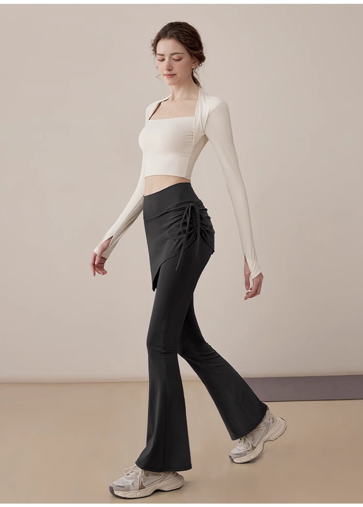 TIANQINGSE Fake Two-piece Side Drawstring Skirt Curtain Hip Cover Micro-pull Pants