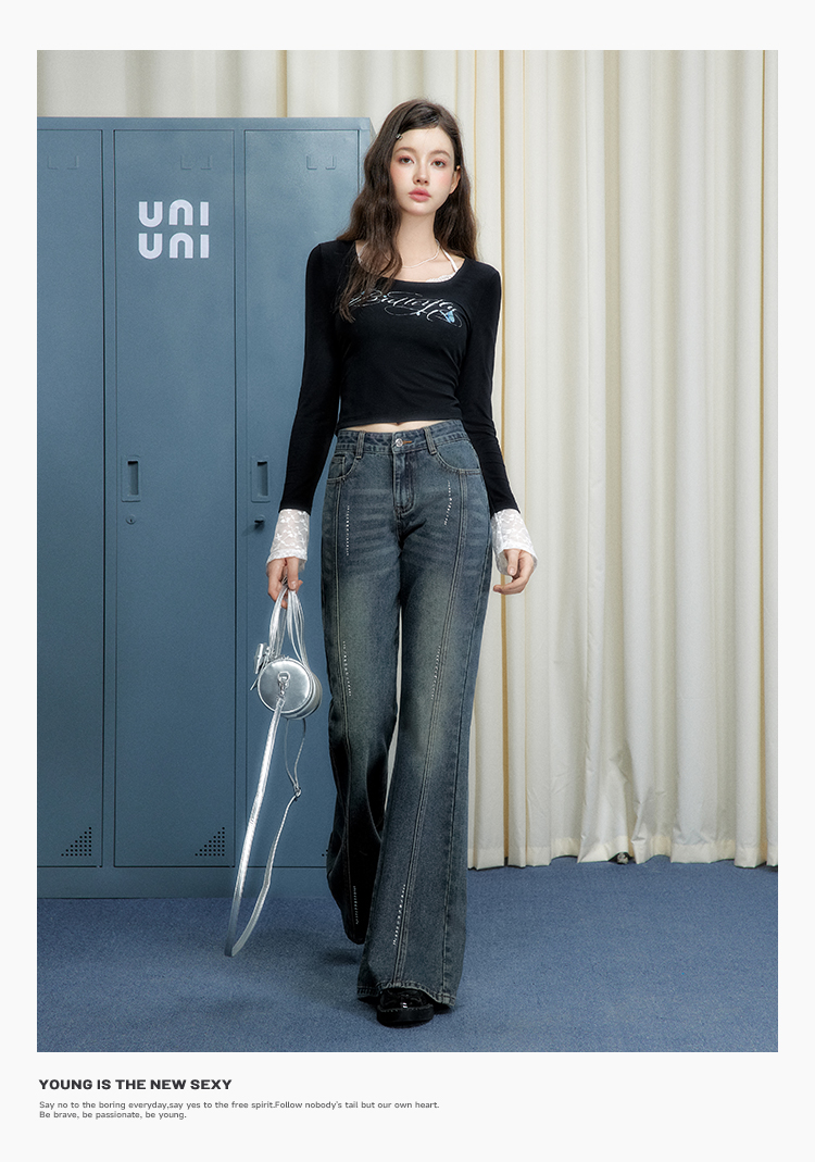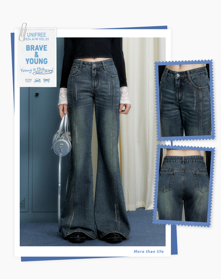 UNIFREE Hot Diamond Loose Wide Leg Jeans
