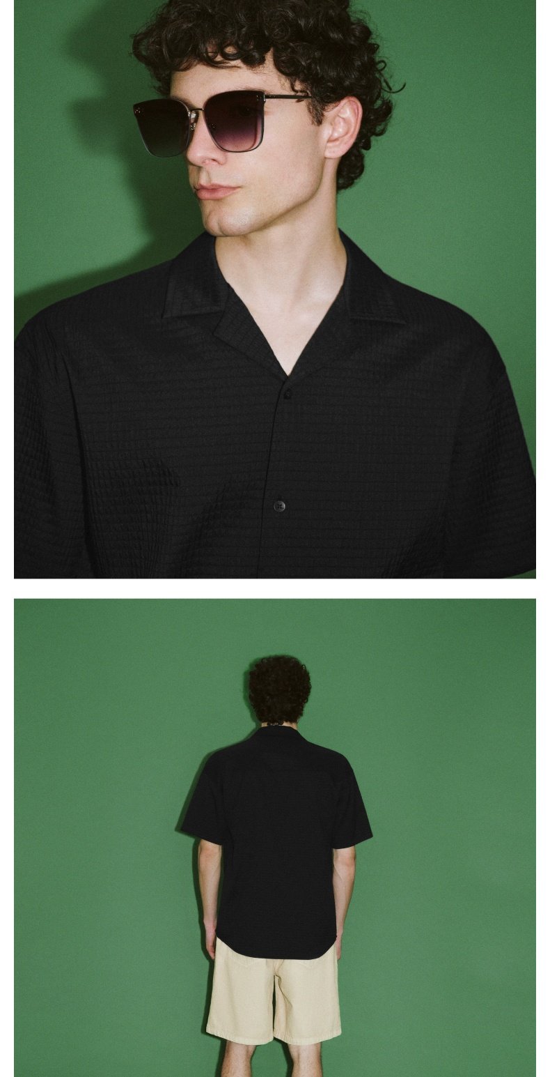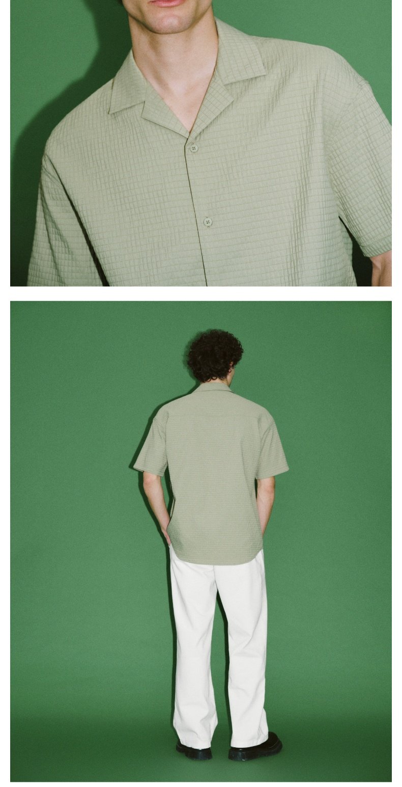 URBAN REVIVO Textured Plaid Short-sleeved Open Shirt