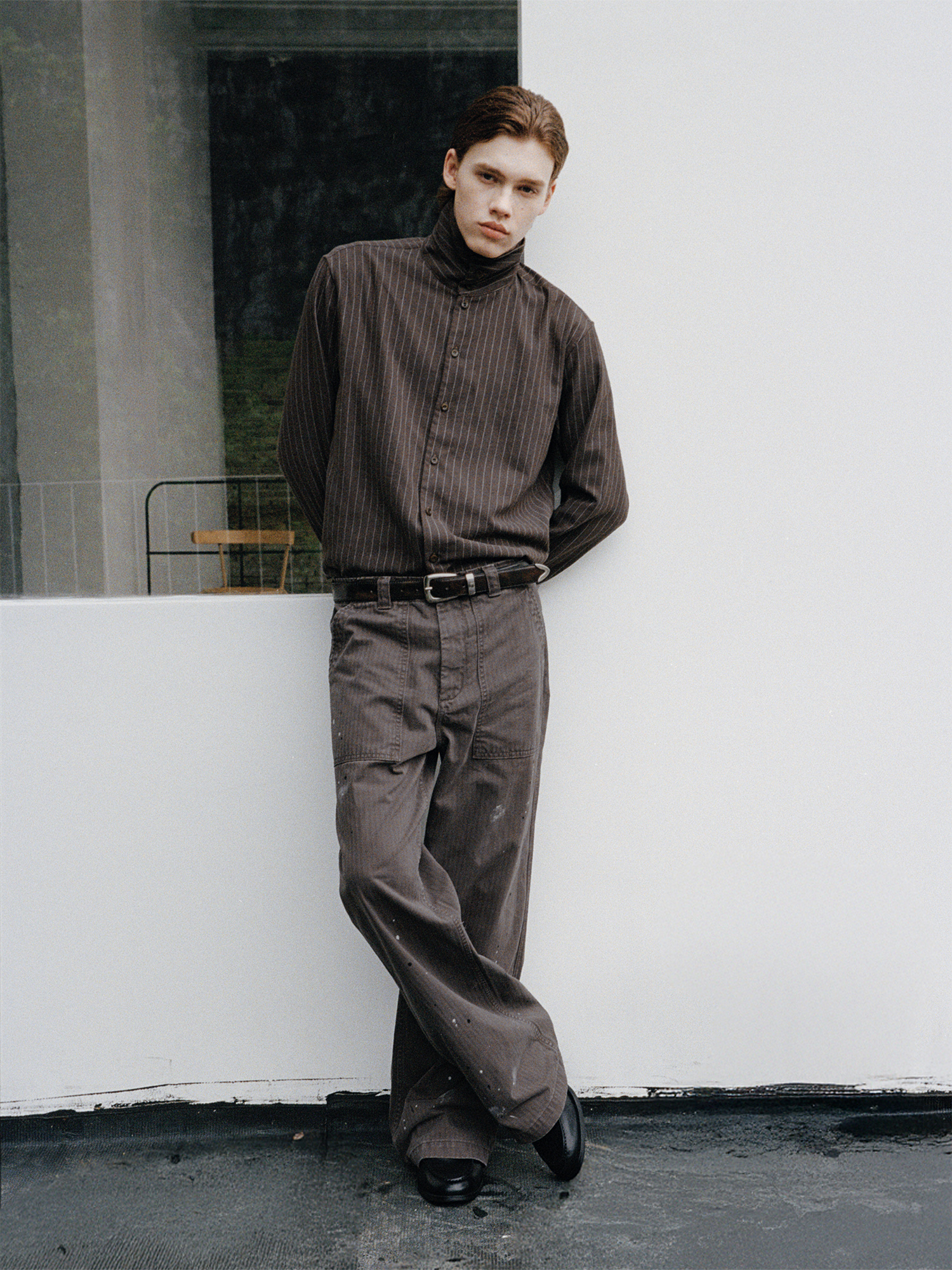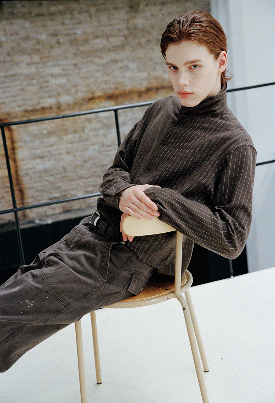 VLABMADE Striped Pendant Short Profile Multi-neck Adjustment Shirt