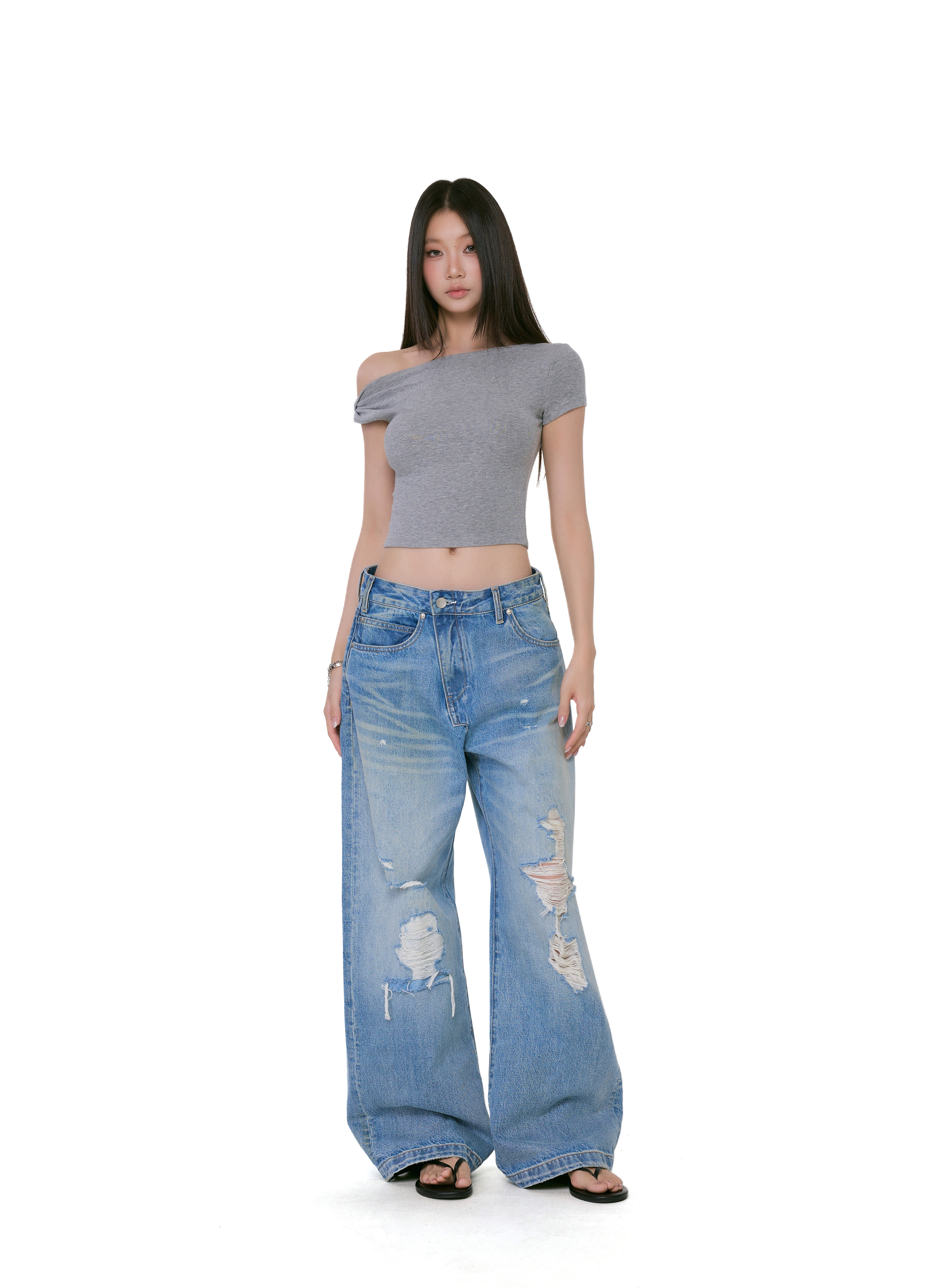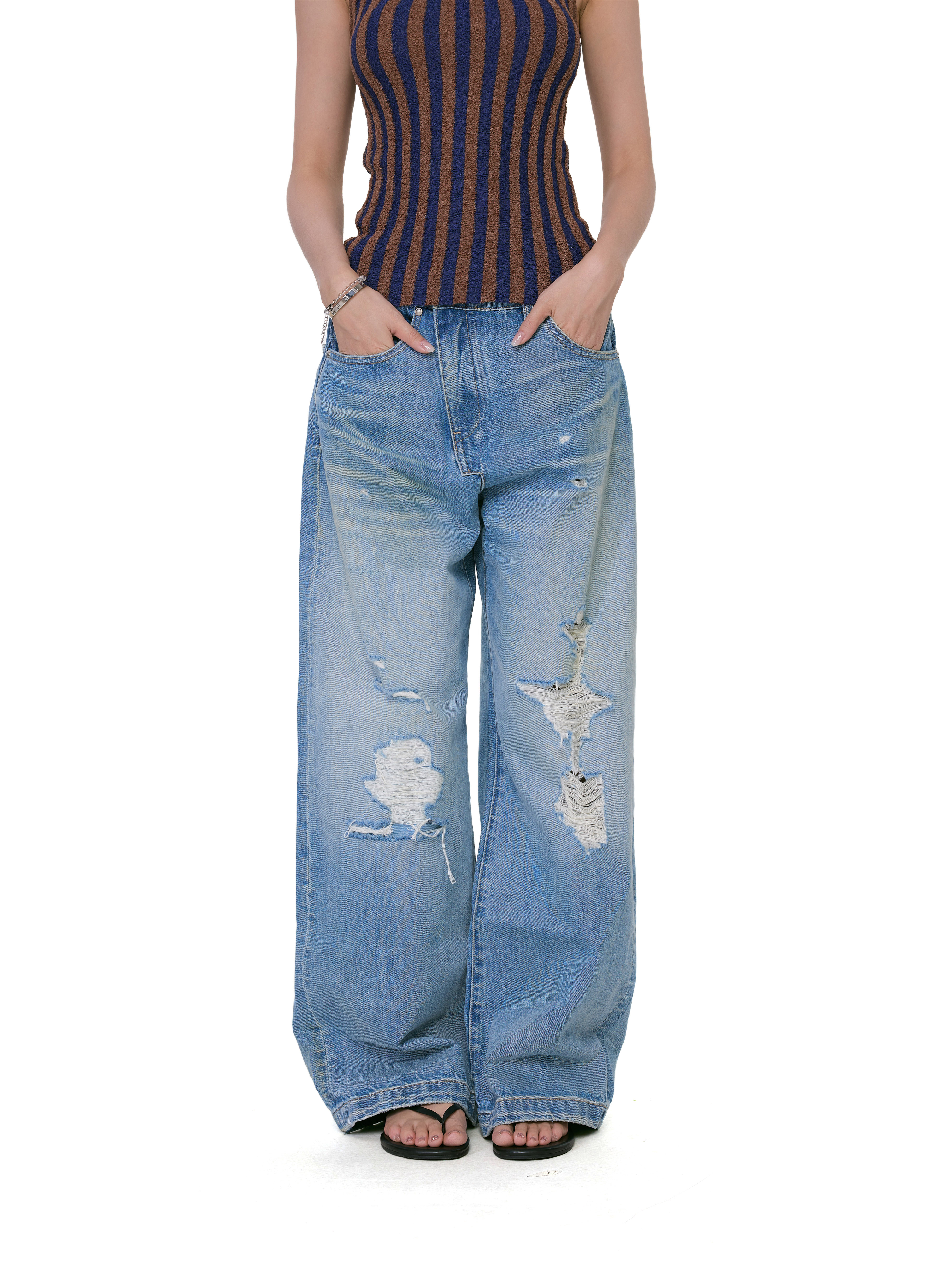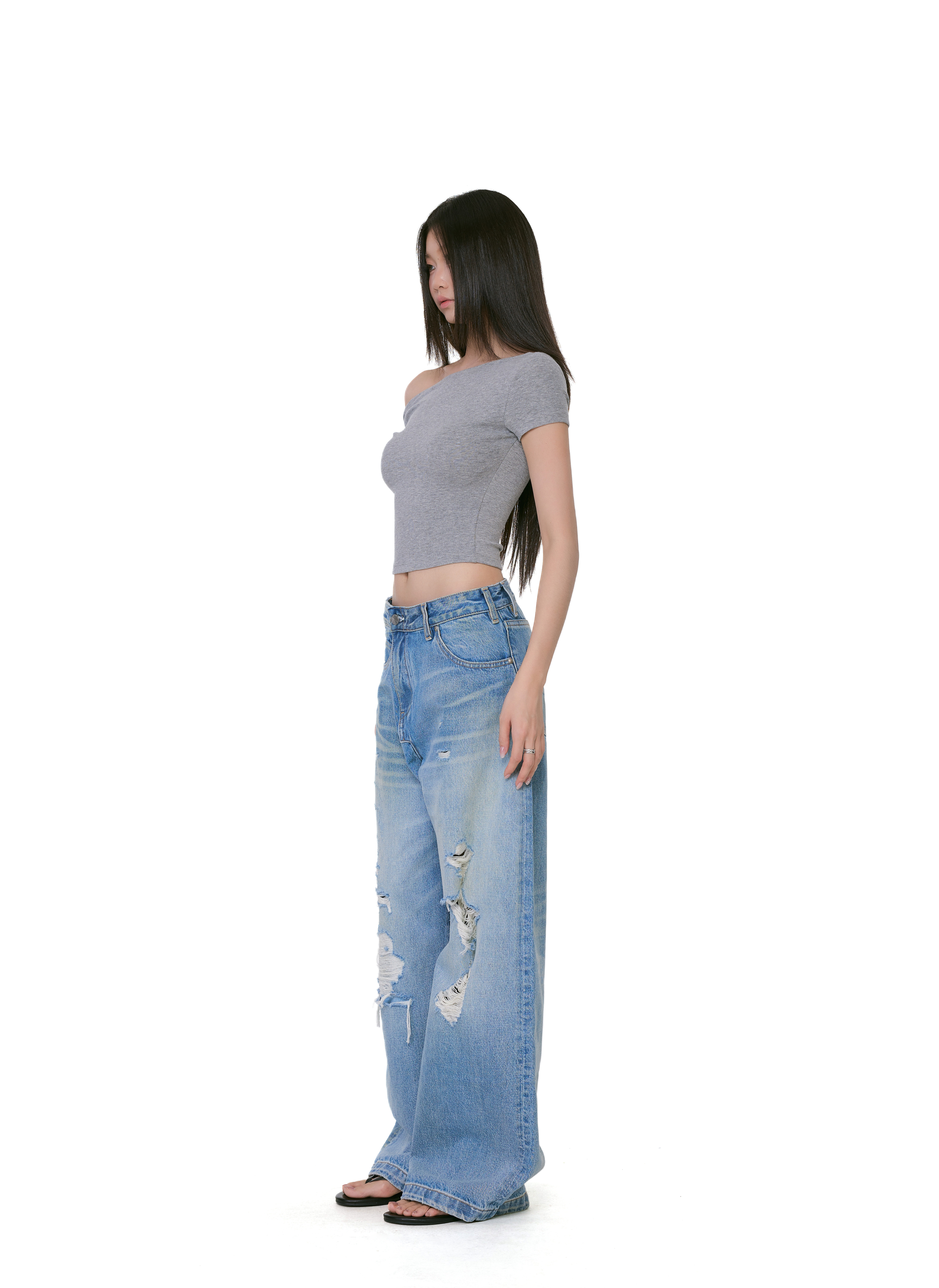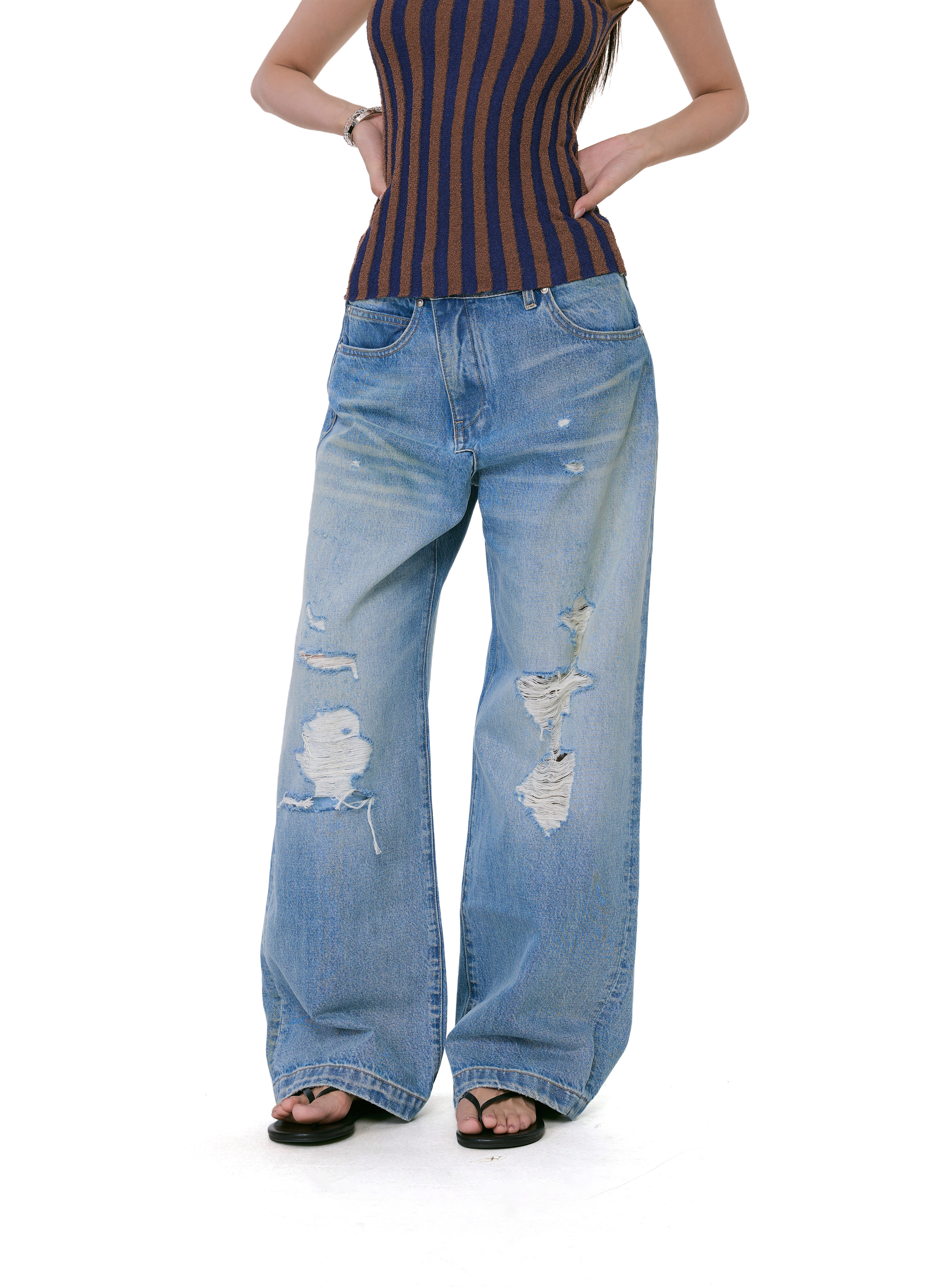 WITHMIN Low-rise Versatile Ripped Straight Wide-leg Pants