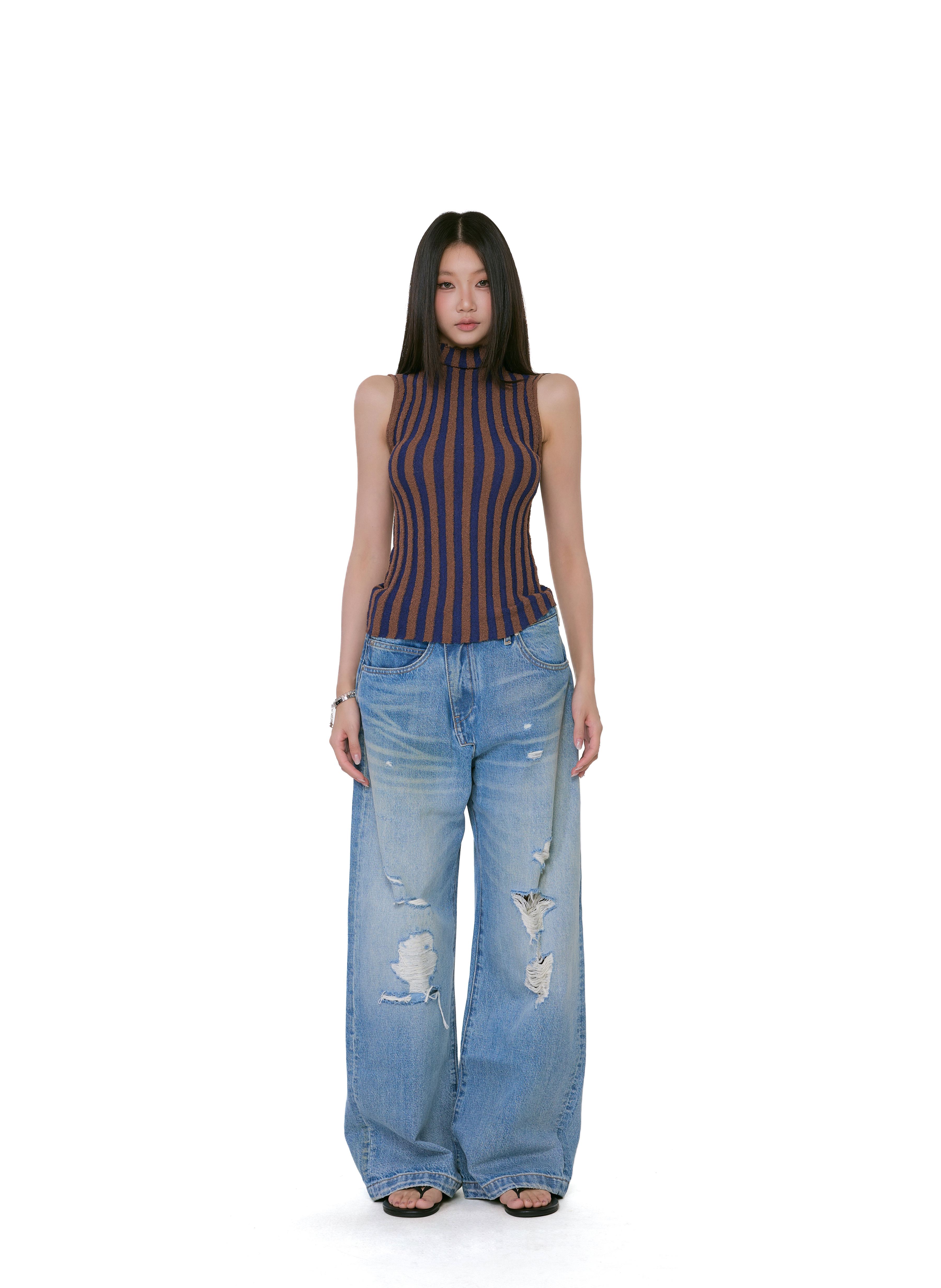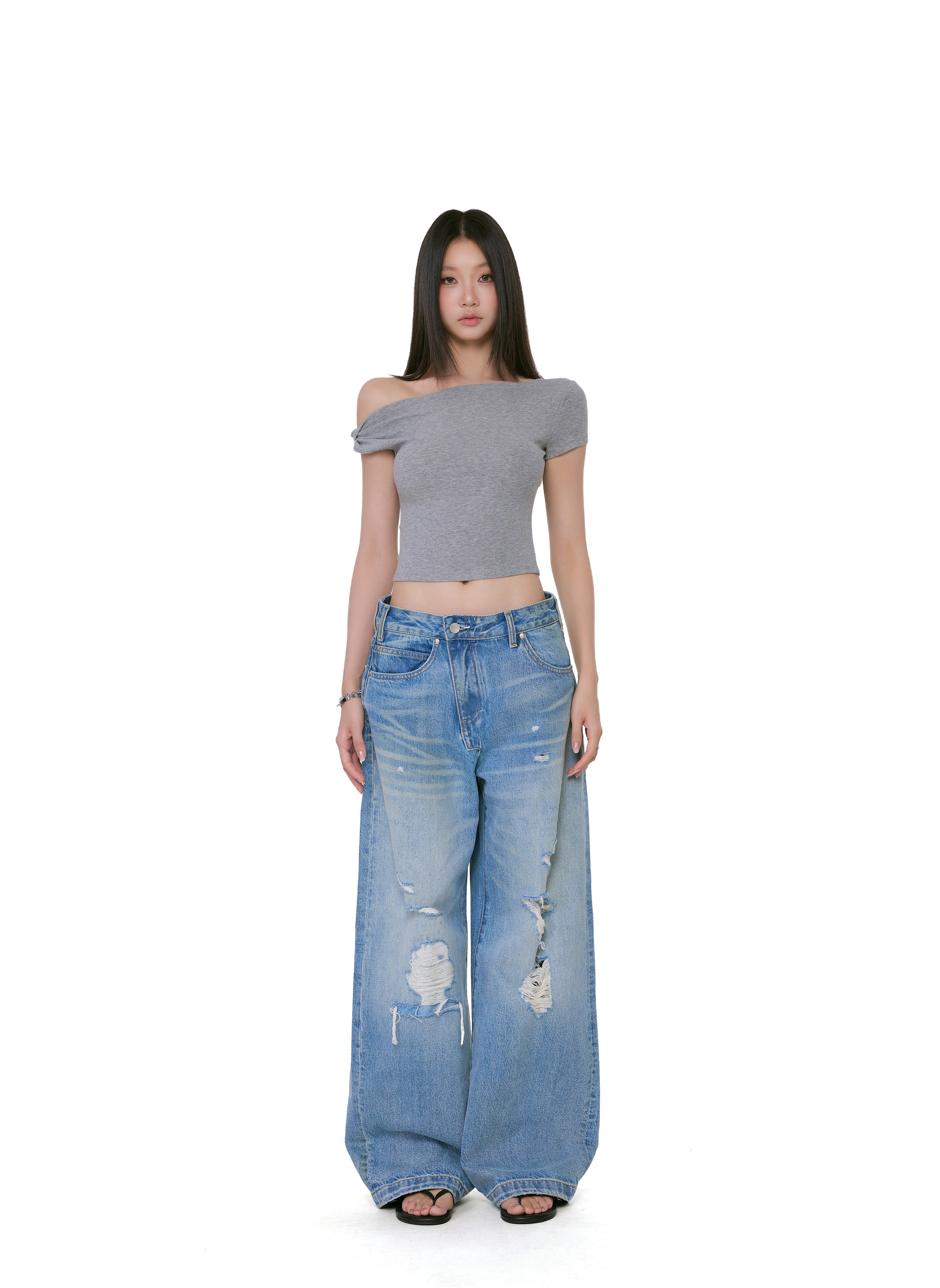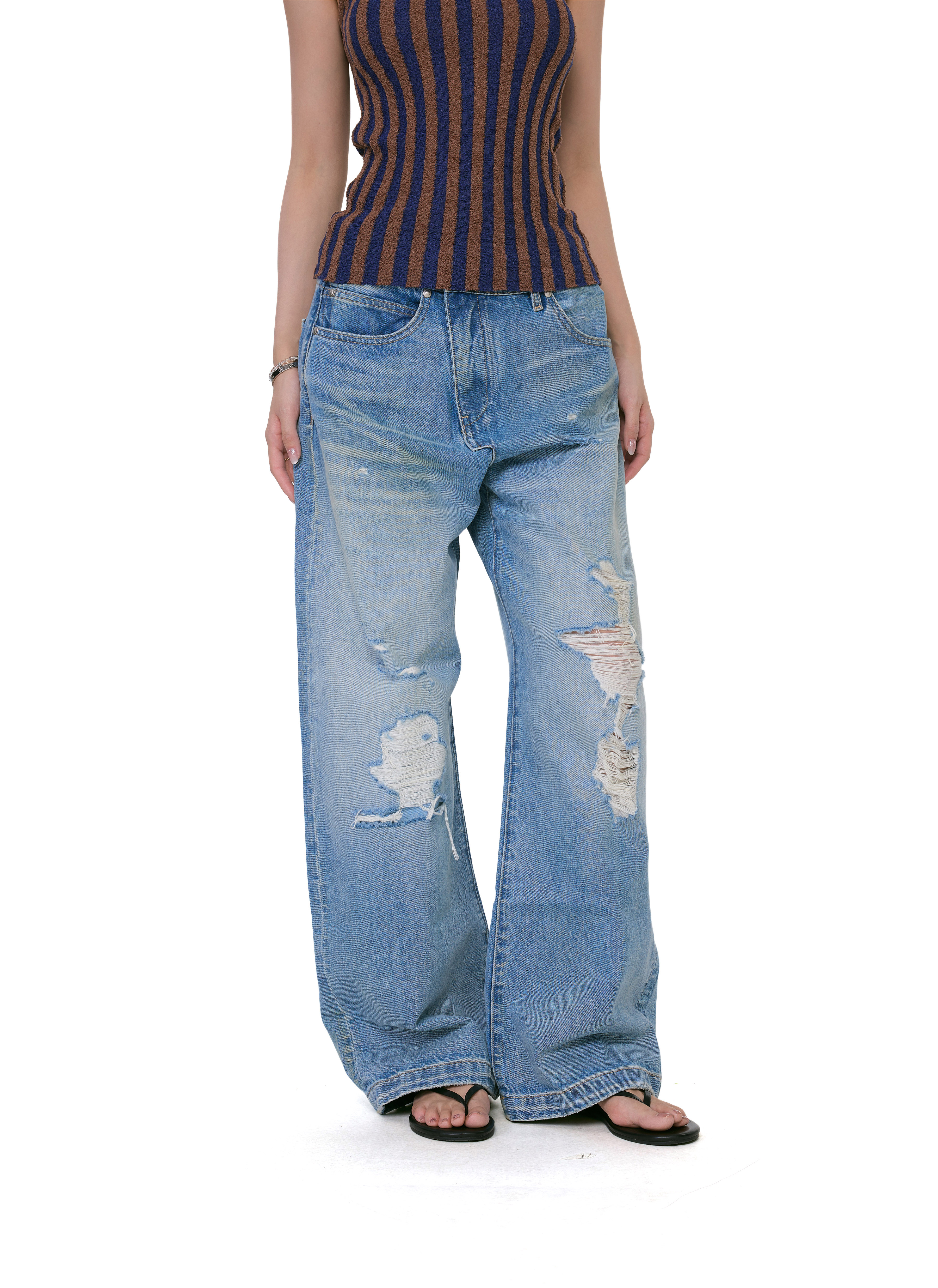 WITHMIN Low-rise Versatile Ripped Straight Wide-leg Pants