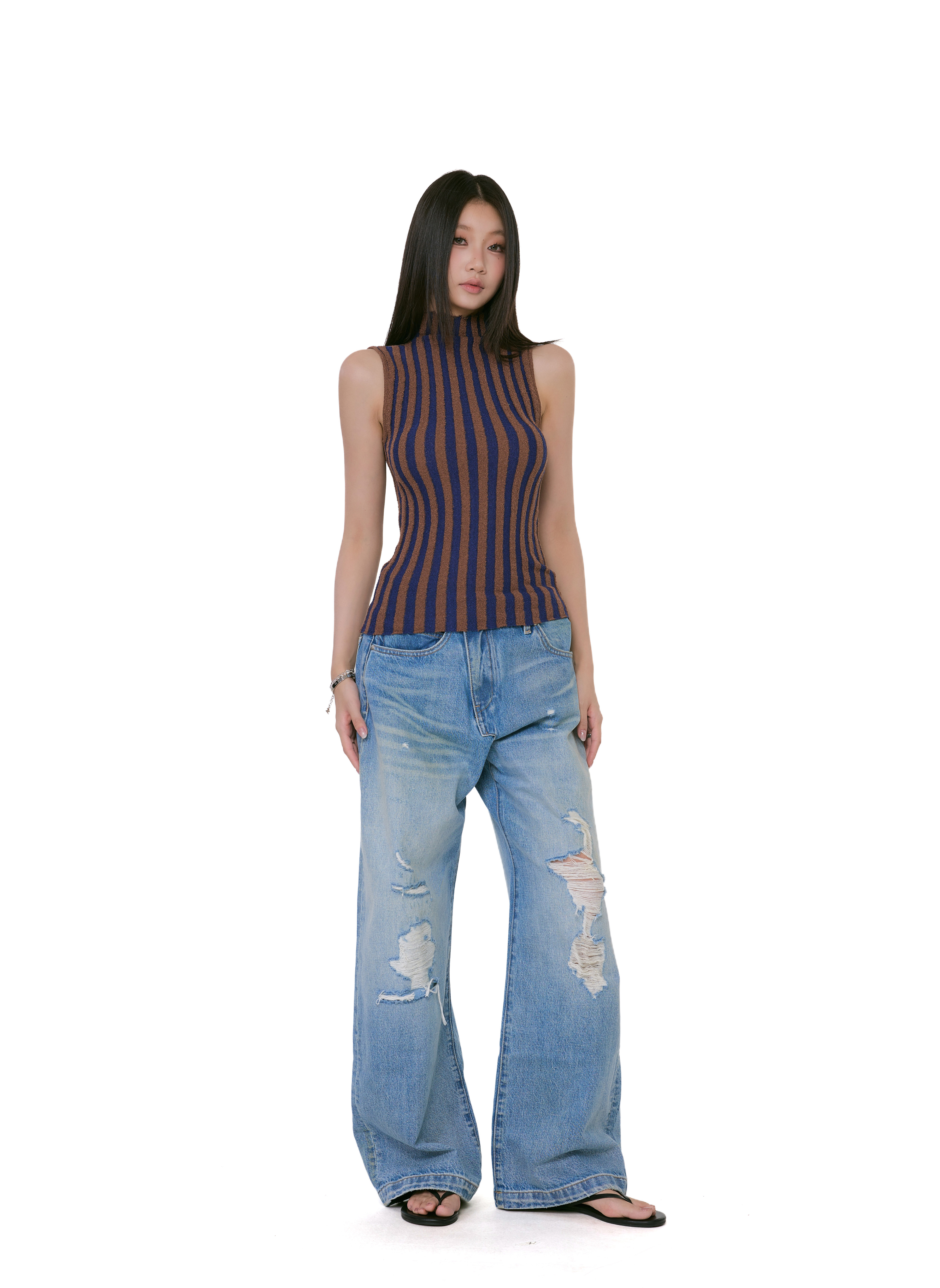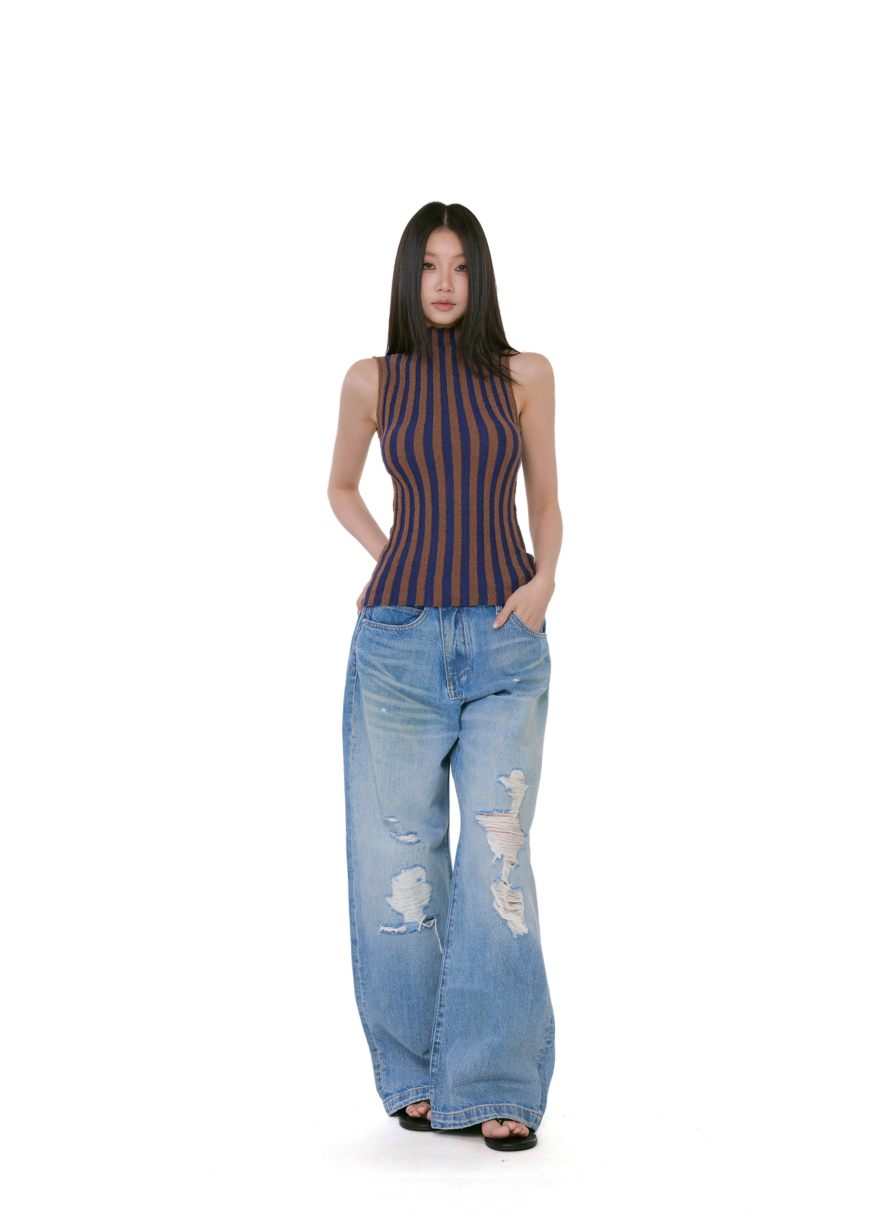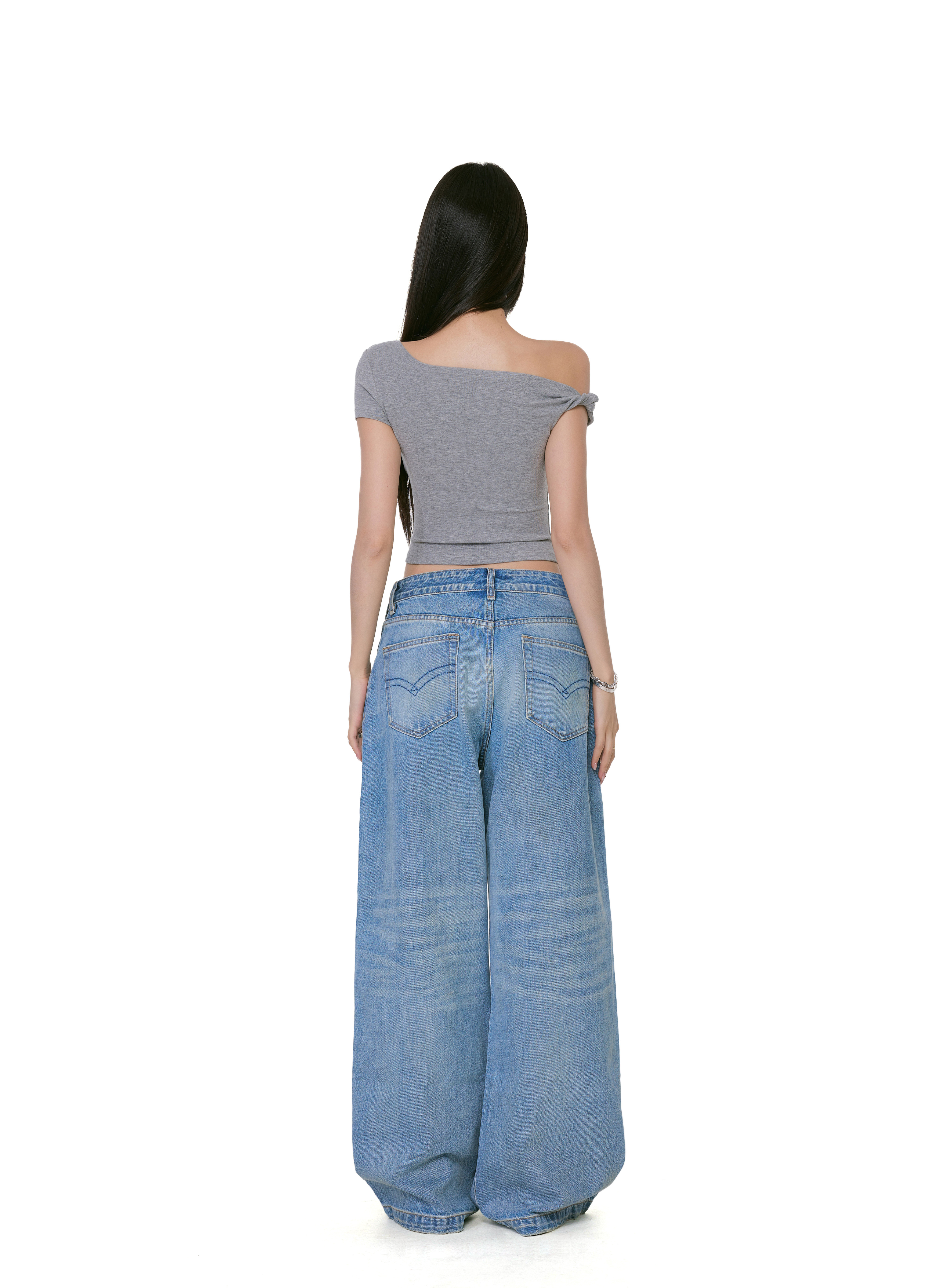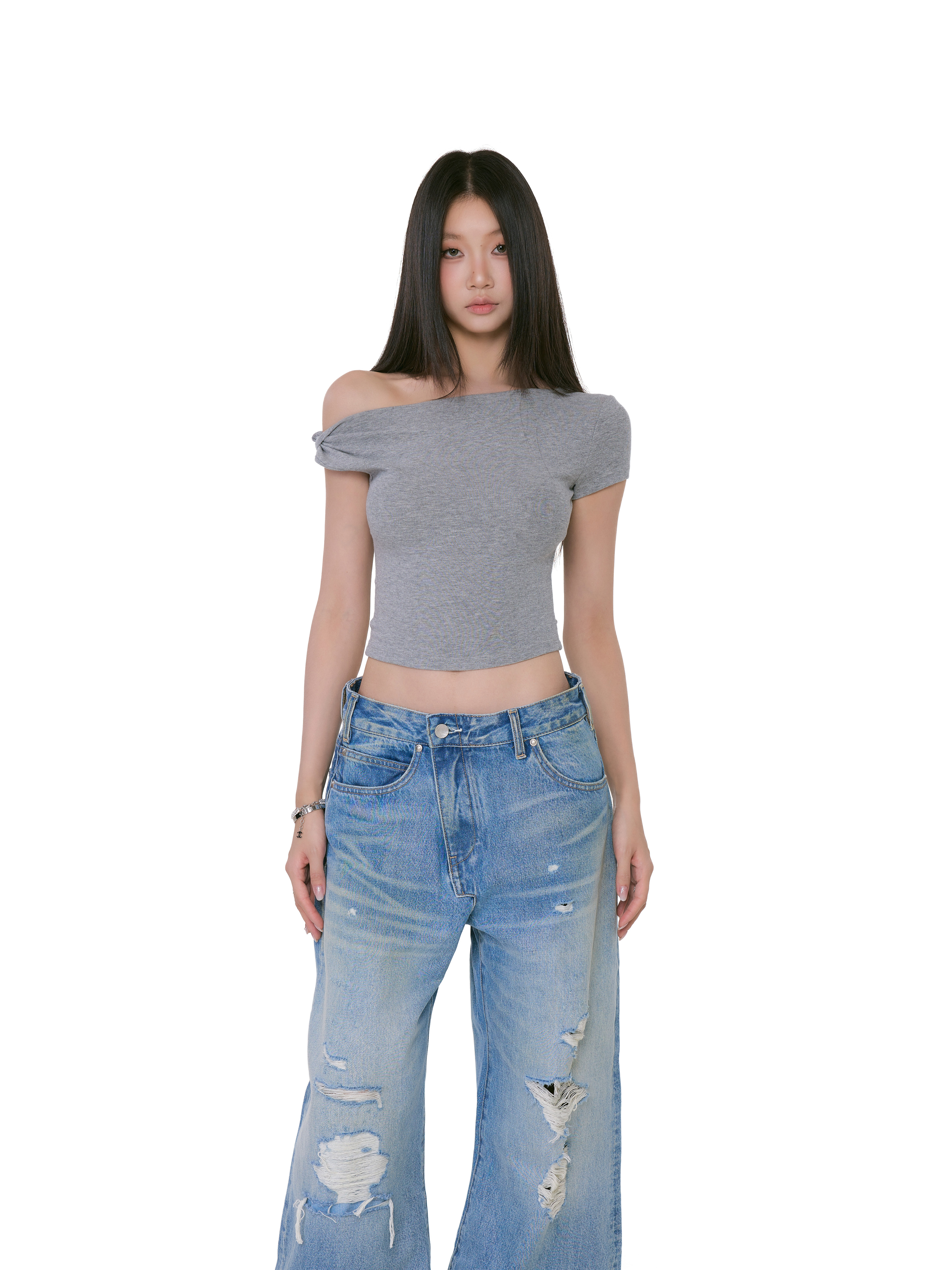 WITHMIN Low-rise Versatile Ripped Straight Wide-leg Pants