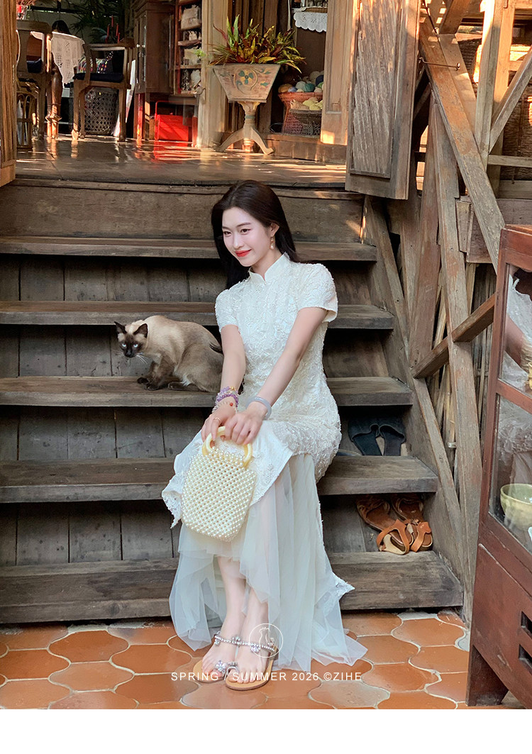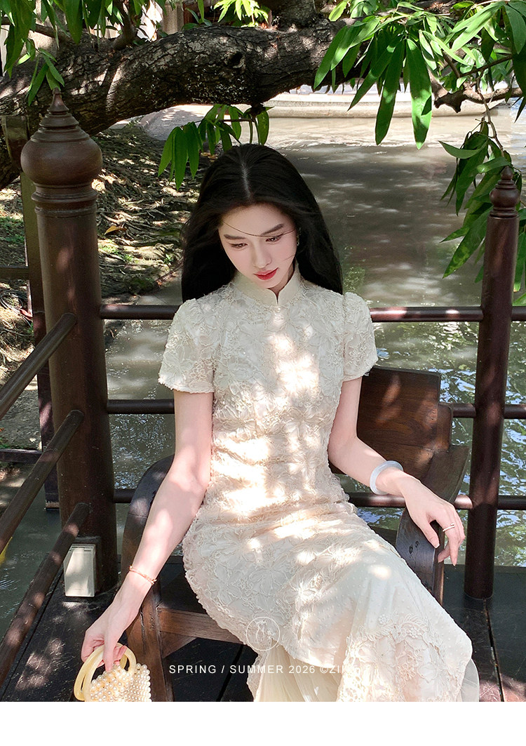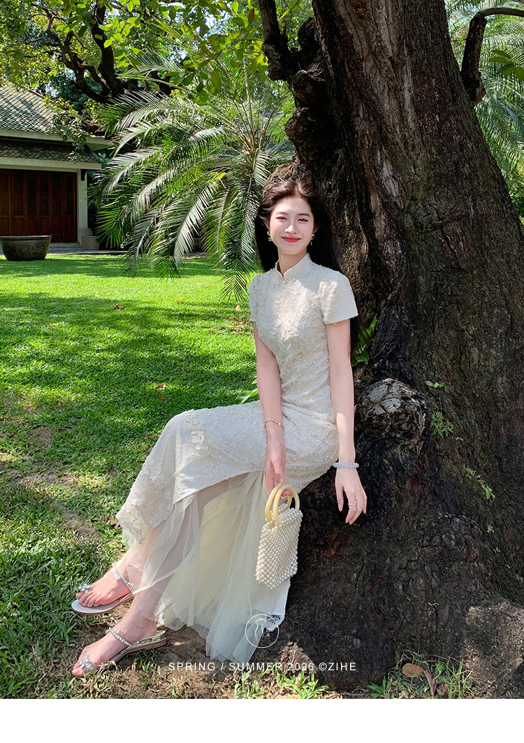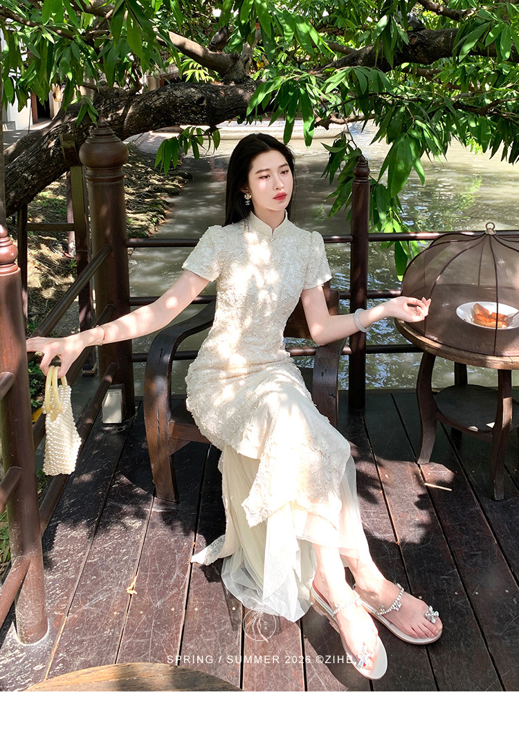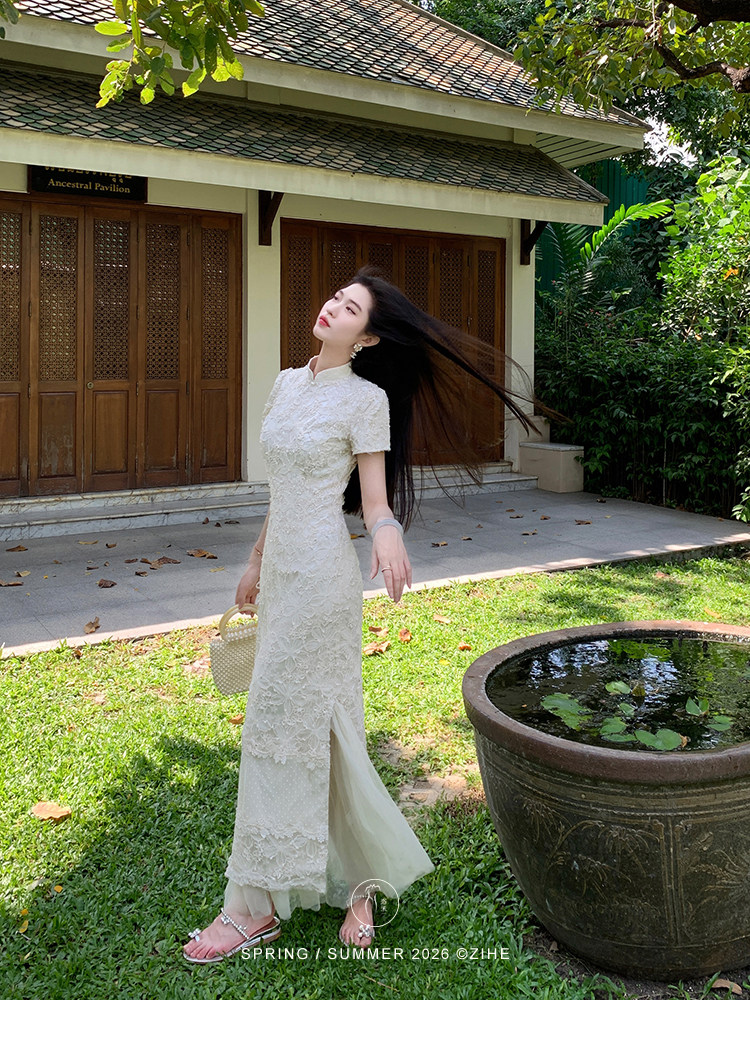ZIHE New Chinese Rope Embroidered Cheongsam Dress
