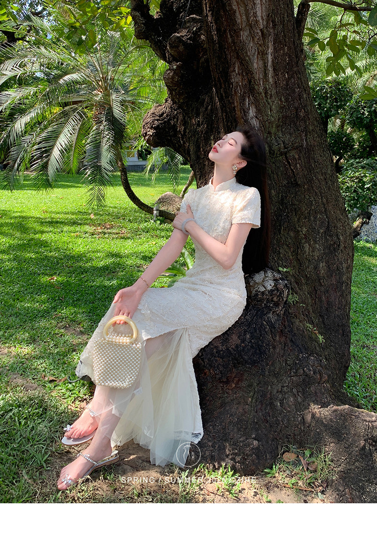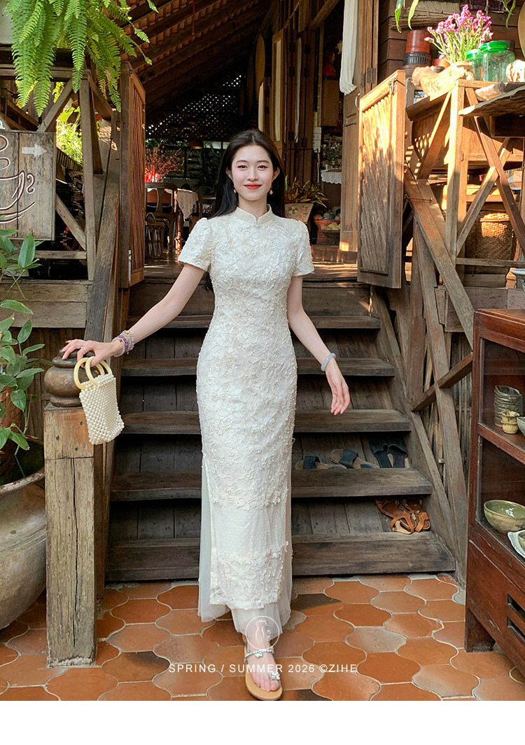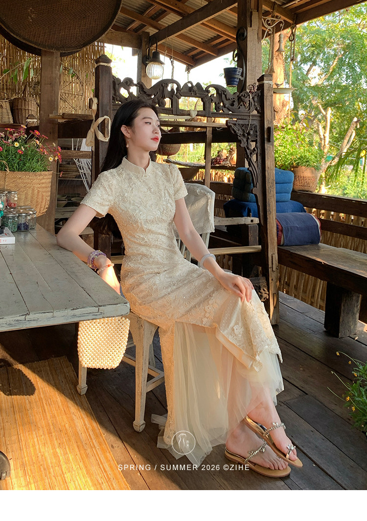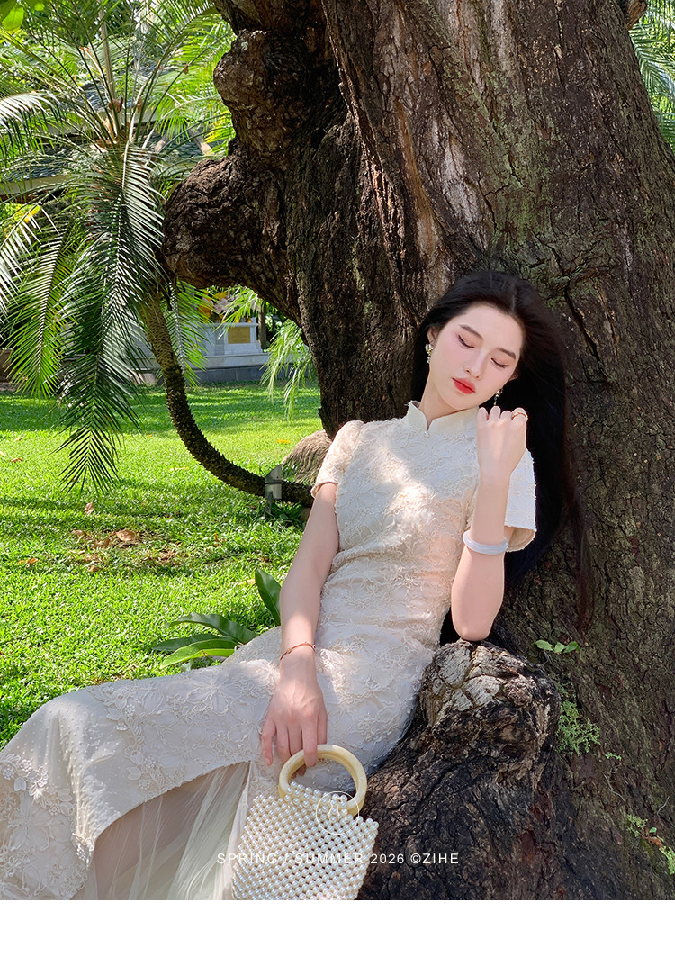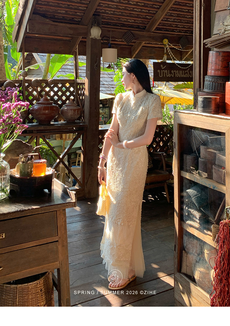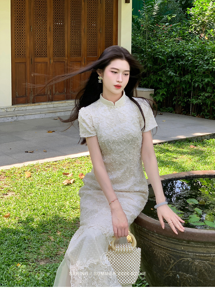 ZIHE New Chinese Rope Embroidered Cheongsam Dress