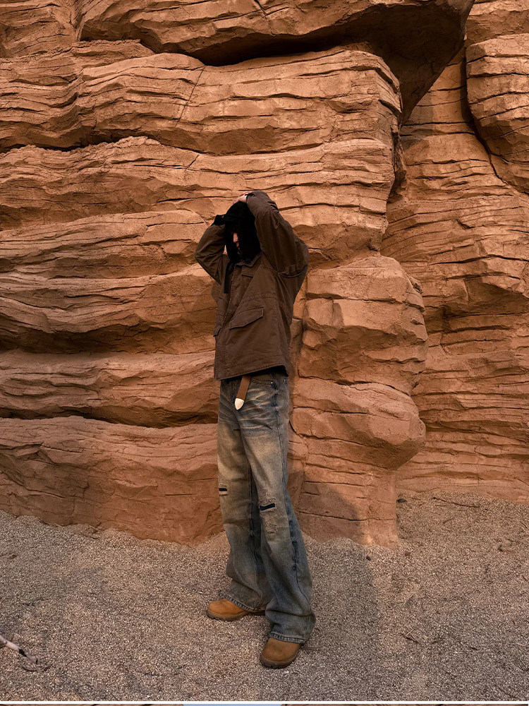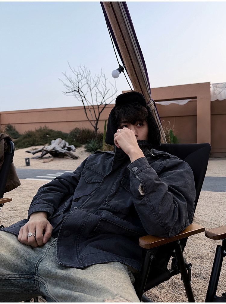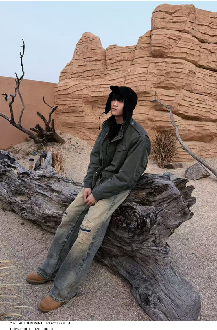 ZOZOFOREST Velvet Heavy Industry Stand-up Collar Mountain Carving Jacket