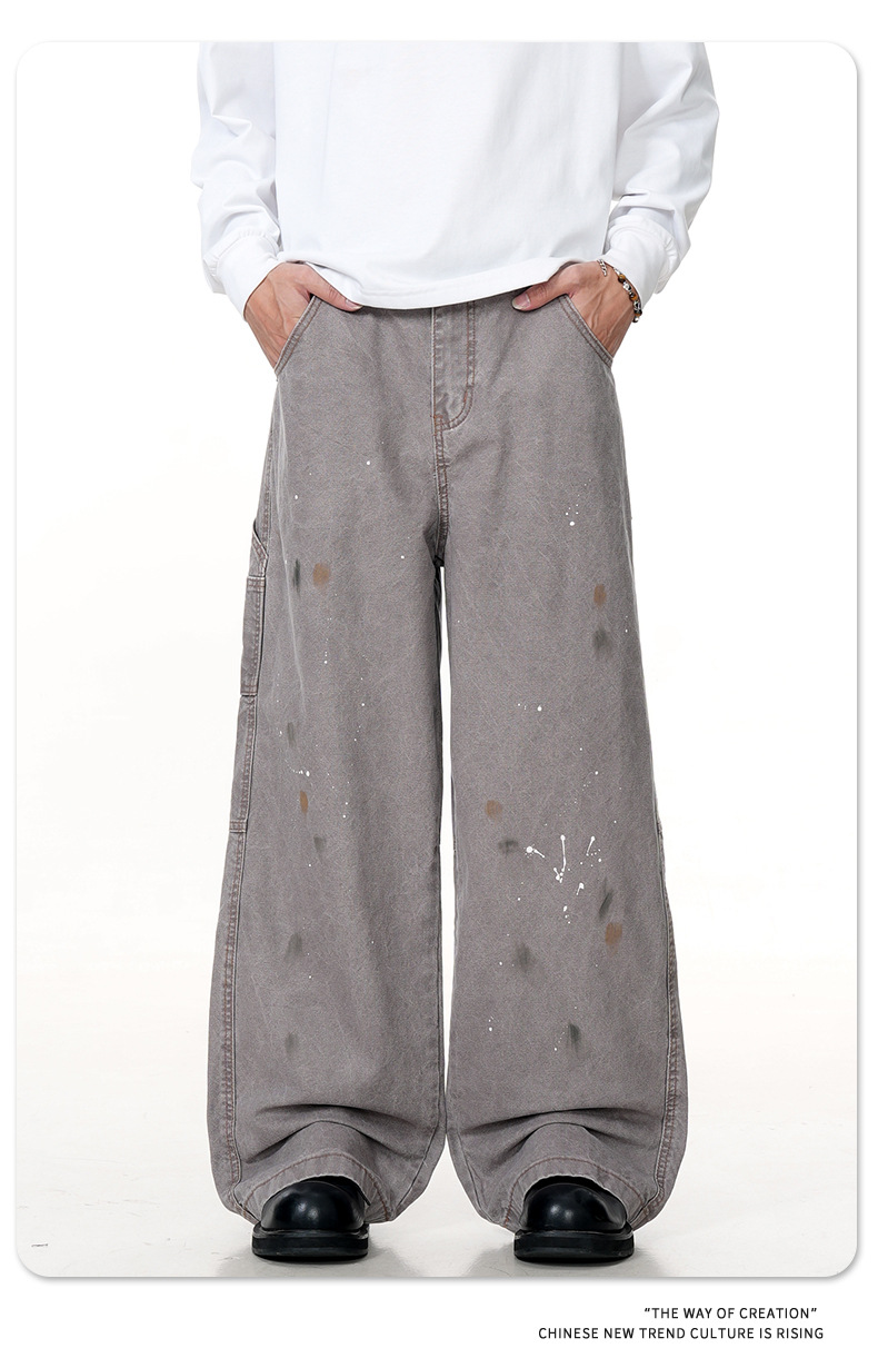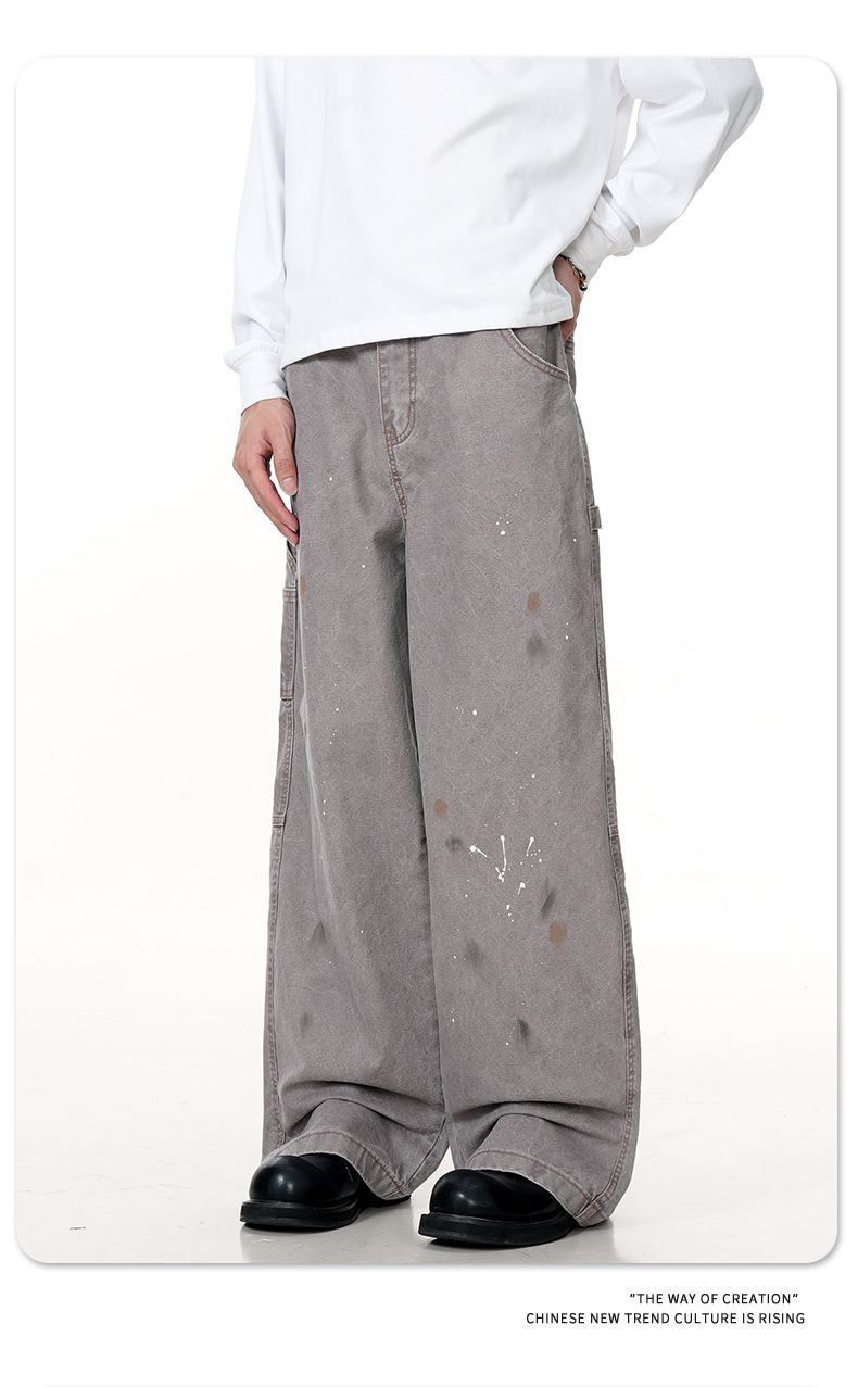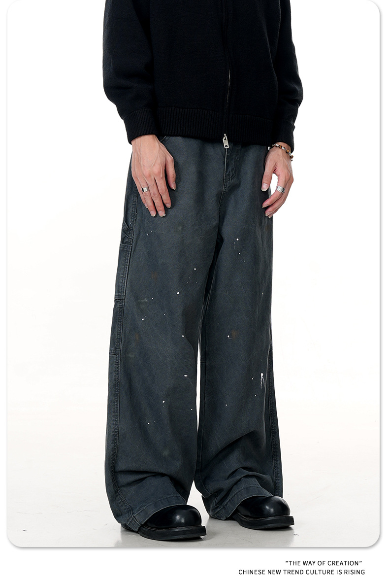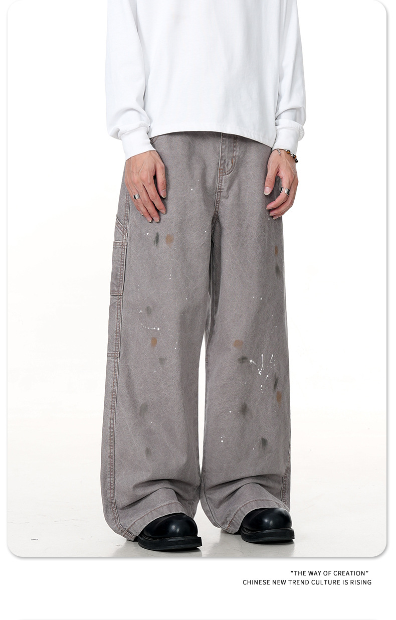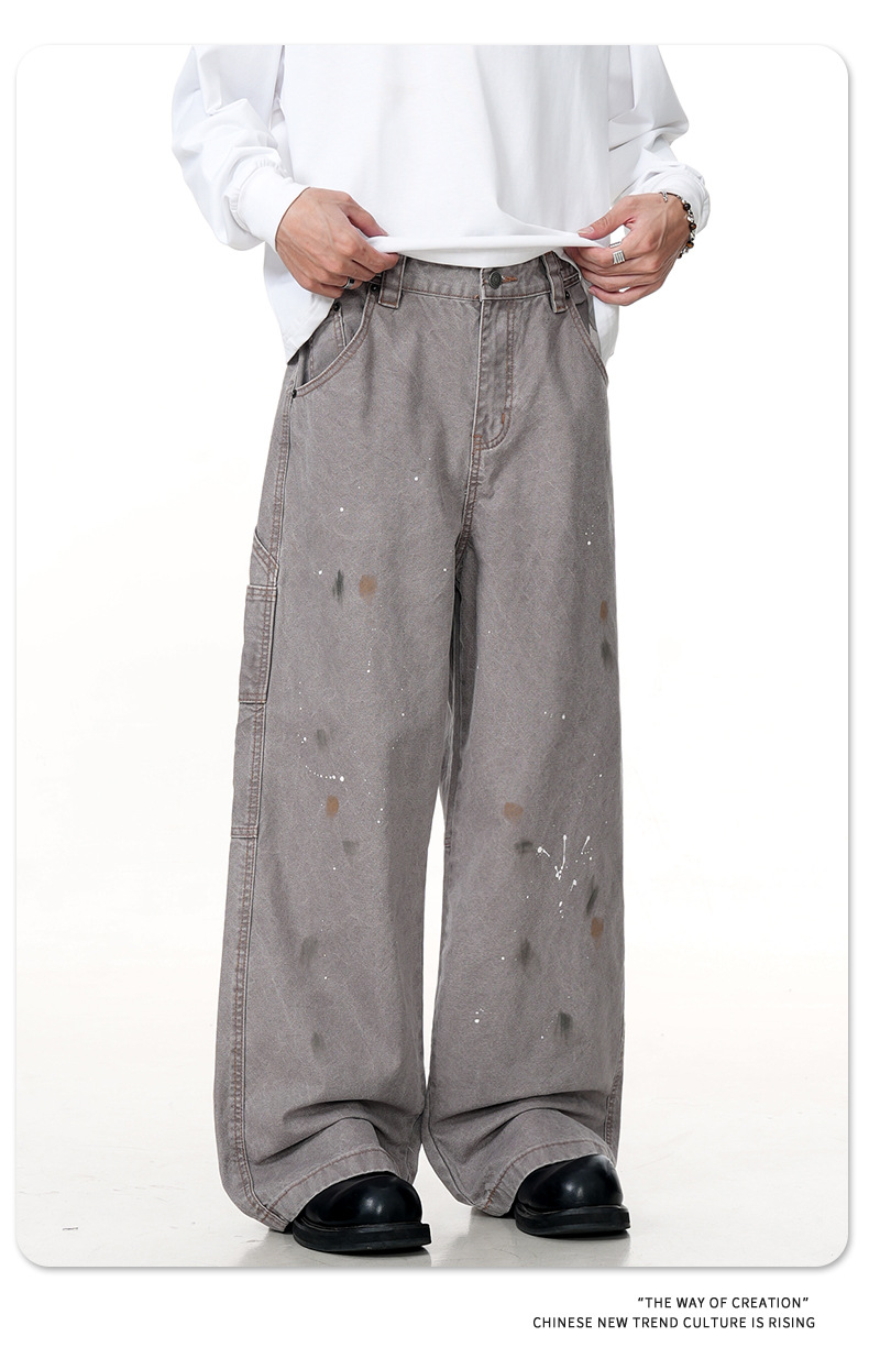 11KN American retro splashed ink graffiti design workwear jeans trendy brand loose straight leg casual pants cross-border