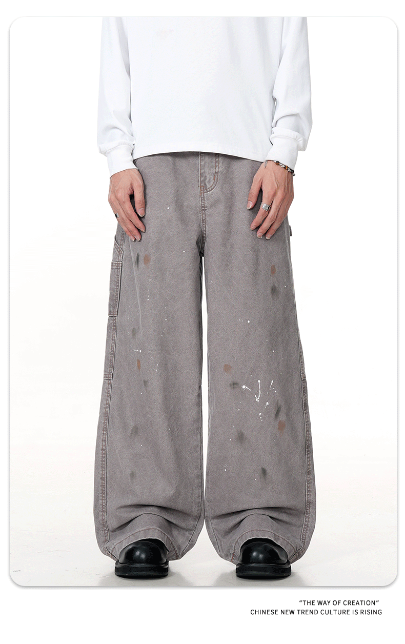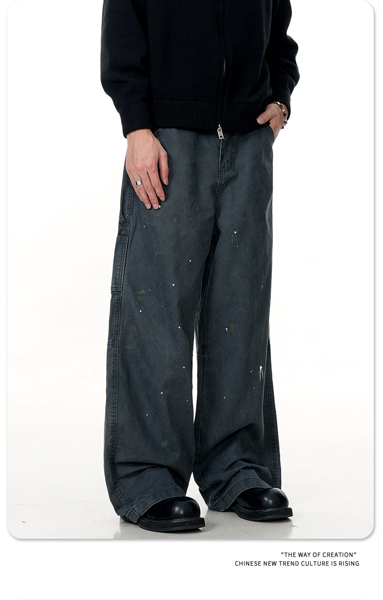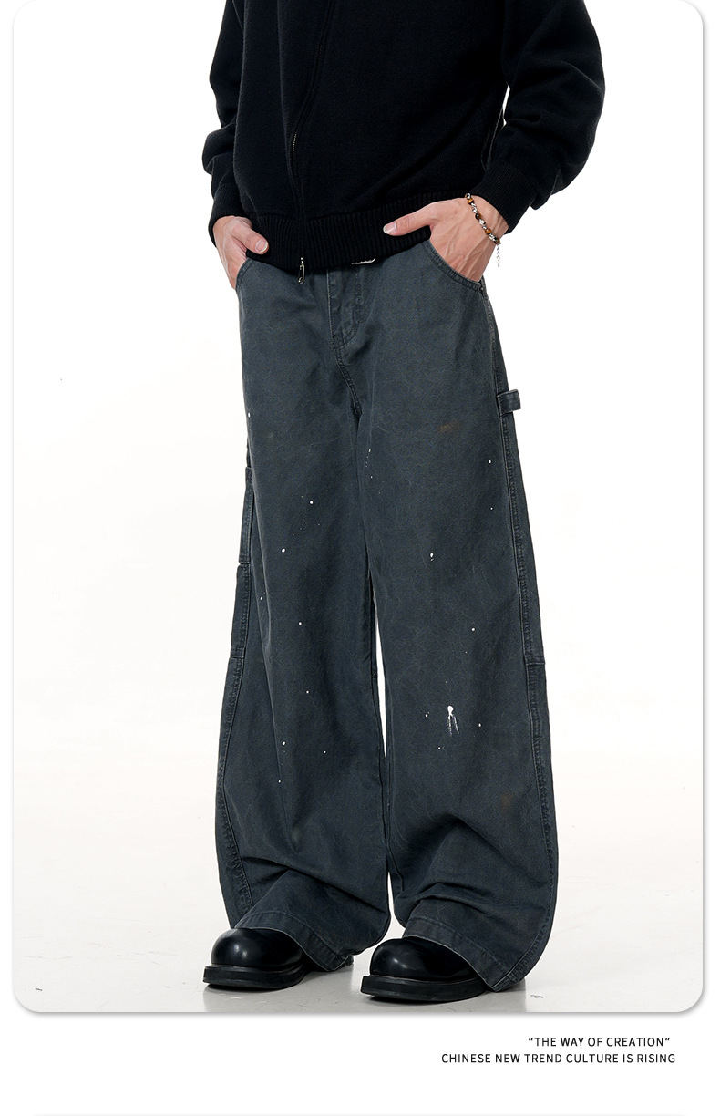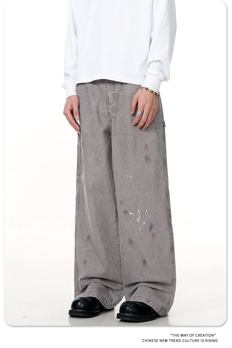 11KN American retro splashed ink graffiti design workwear jeans trendy brand loose straight leg casual pants cross-border