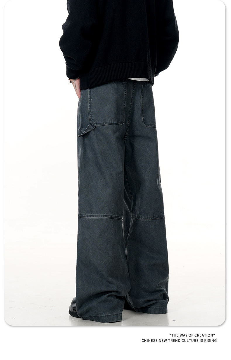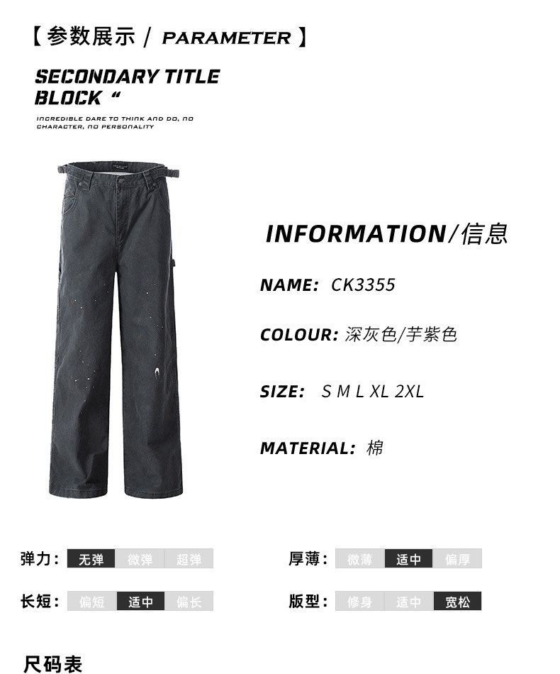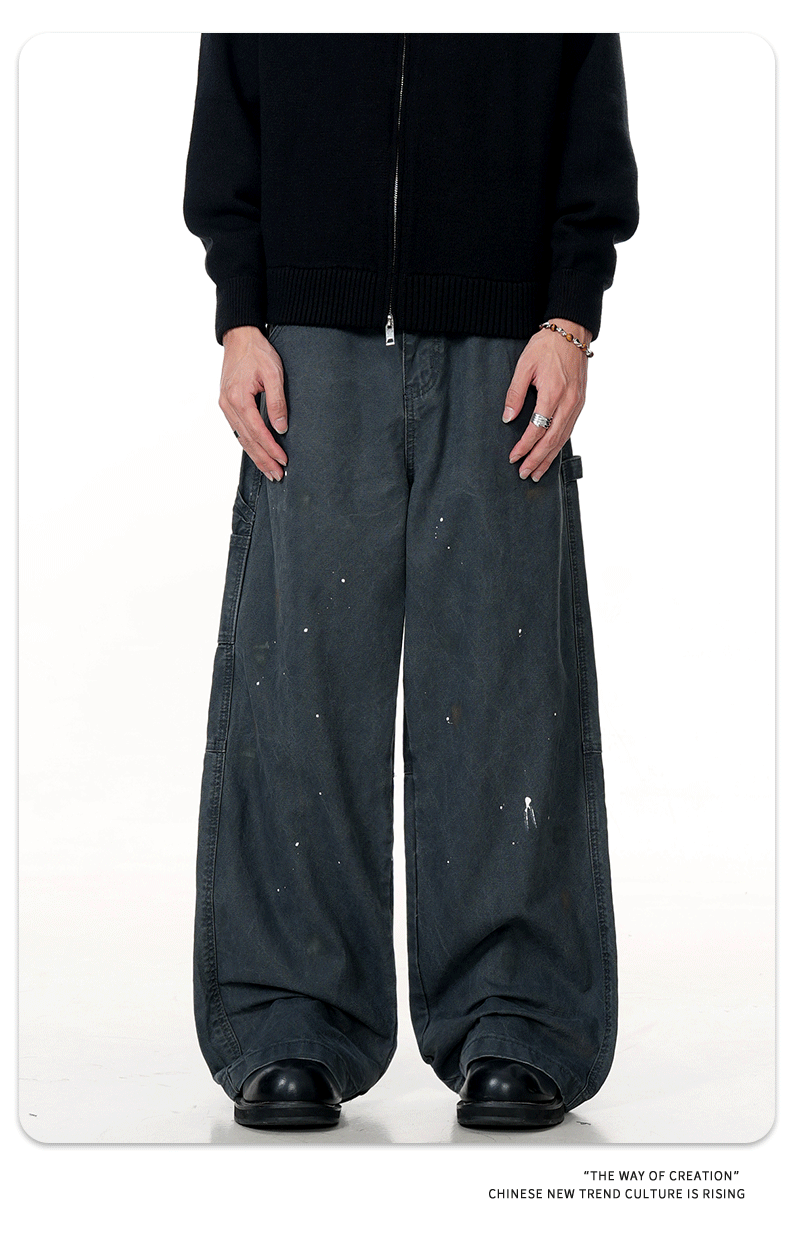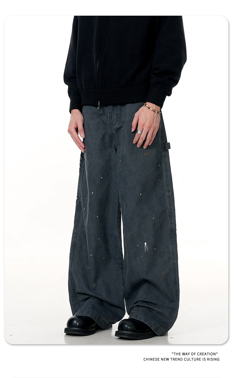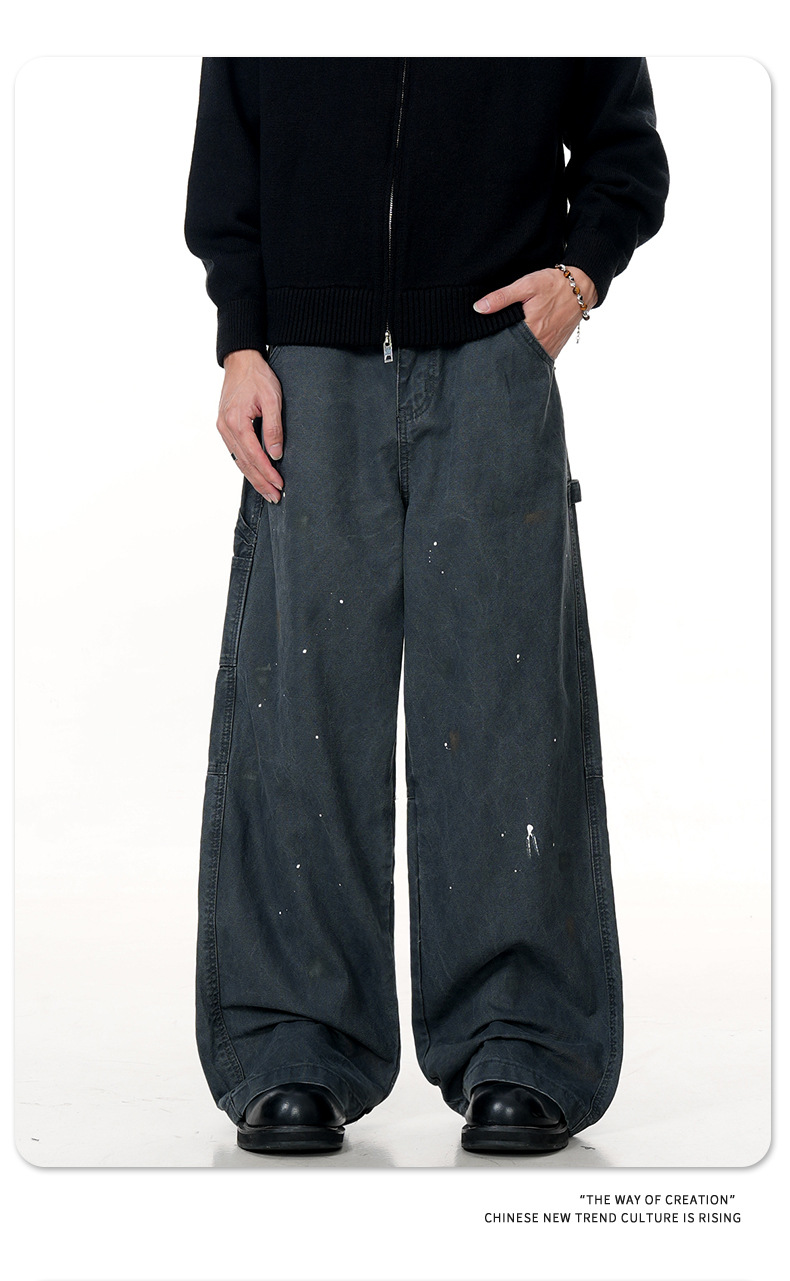 11KN American retro splashed ink graffiti design workwear jeans trendy brand loose straight leg casual pants cross-border