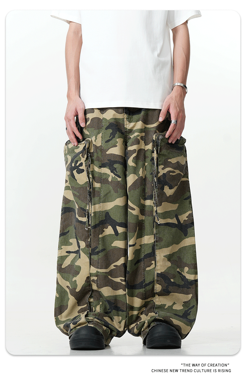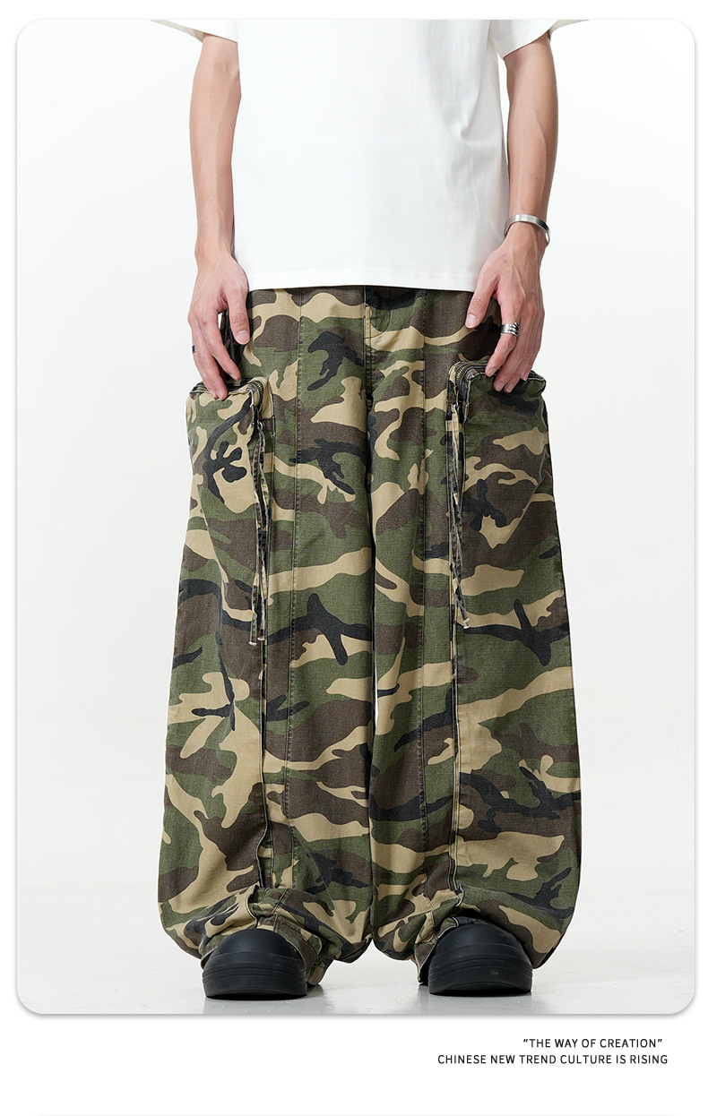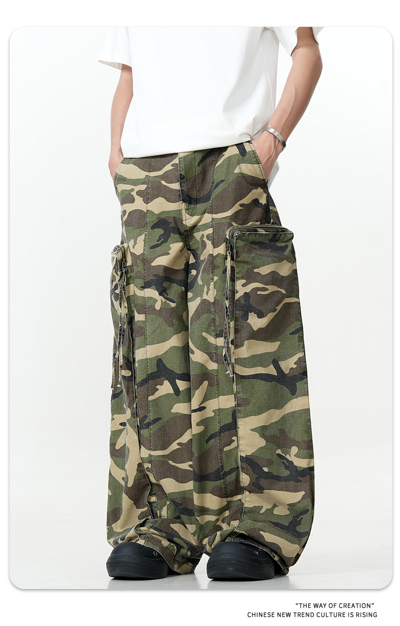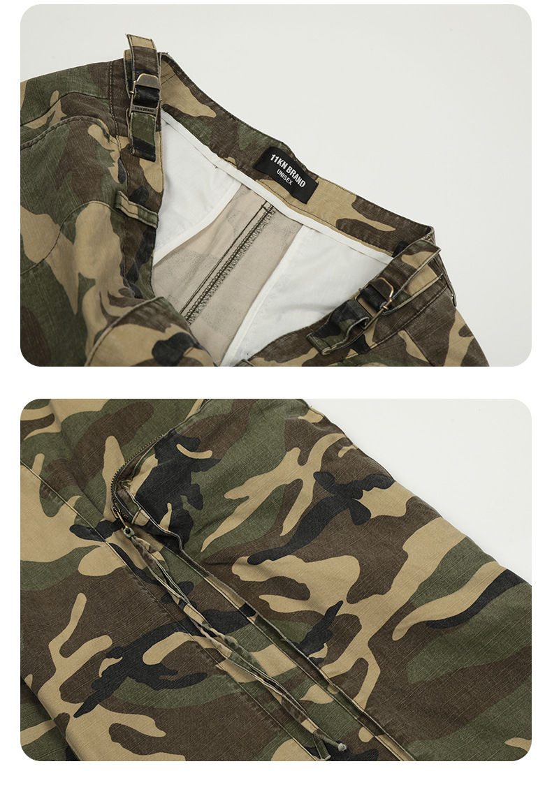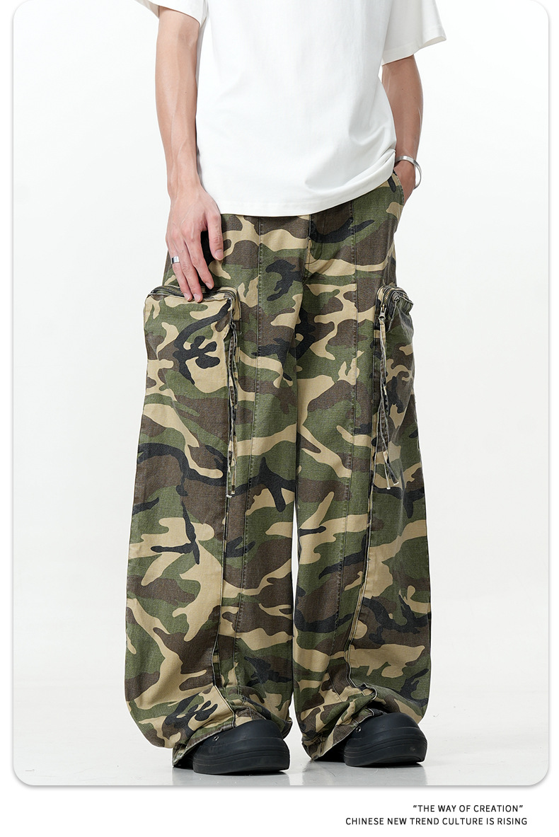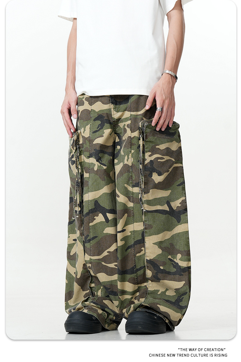 11 KN ファッションブランドジーンズメンズ 2024 autumn new camouflage ストレートワークスーツパッチワーク ズボンクロスボー