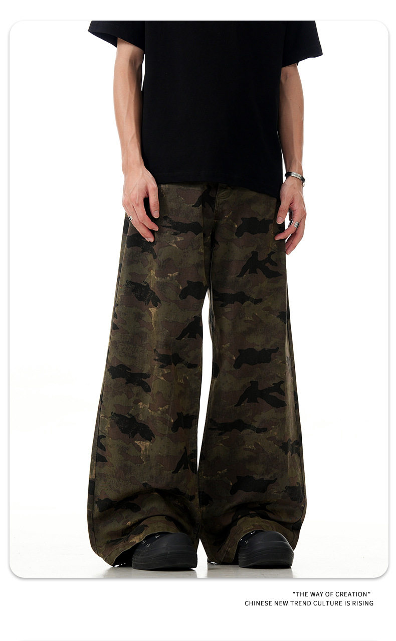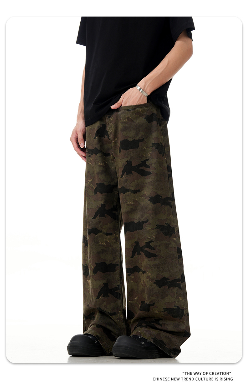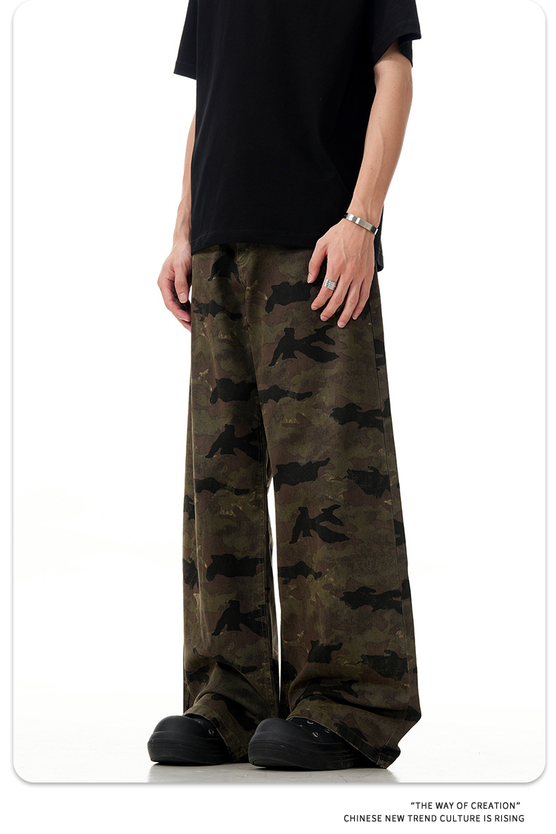 11 KN ハイストリート camouflage のあるエンジニアリングジーンズを るアメリカンレトロでゆったりしたストレートパンツが border