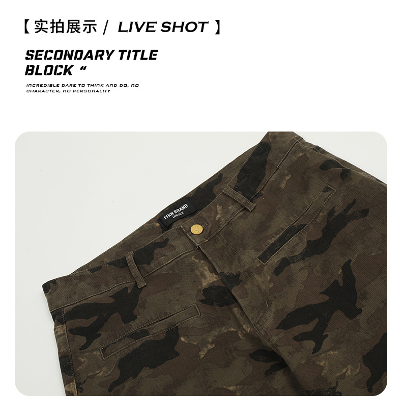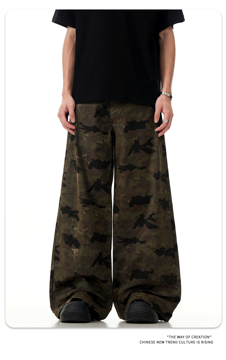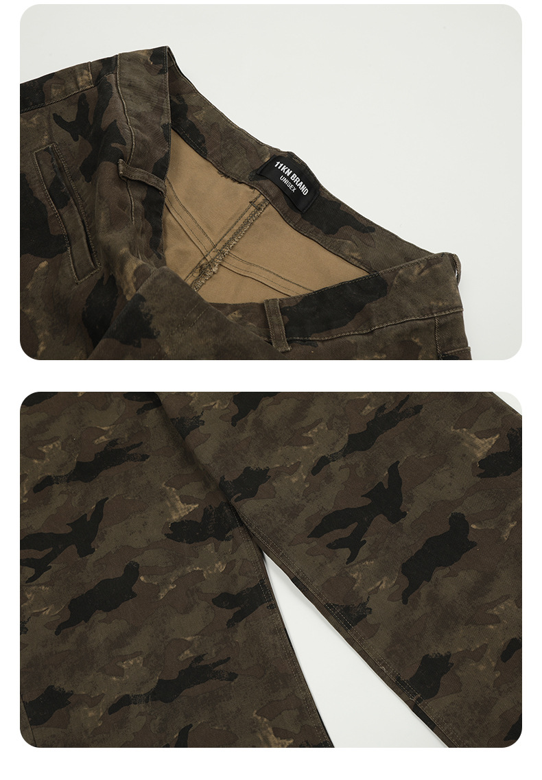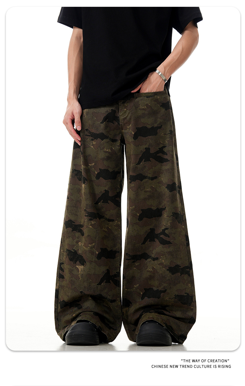 11 KN ハイストリート camouflage のあるエンジニアリングジーンズを るアメリカンレトロでゆったりしたストレートパンツが border