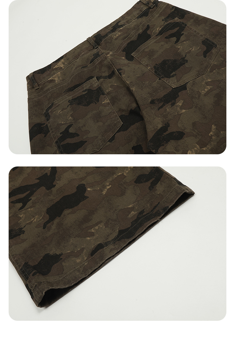 11KN high street camouflage silhouette distressed design workwear jeans American retro loose straight leg pants cross-border