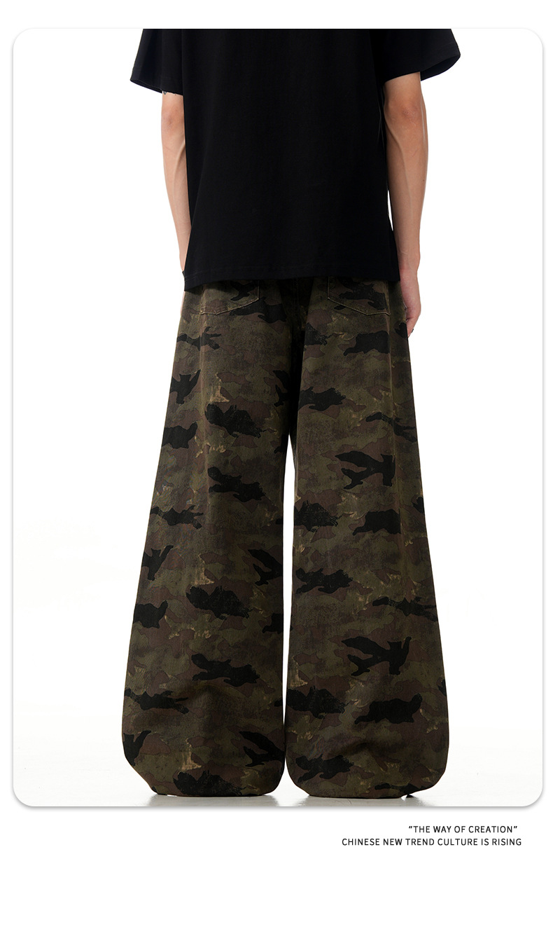 11KN đường phố cao ngụy trang hồ sơ làm thiết kế cũ cảm biến quần jean kiểu Mỹ cổ rộng thùng thình quần dài xuyên biên giới