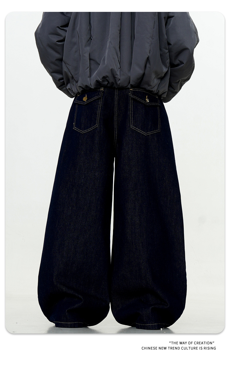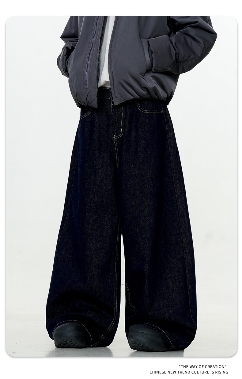 11KN Cleanfit Retro Dark Blue Loose Straight Casual Jeans