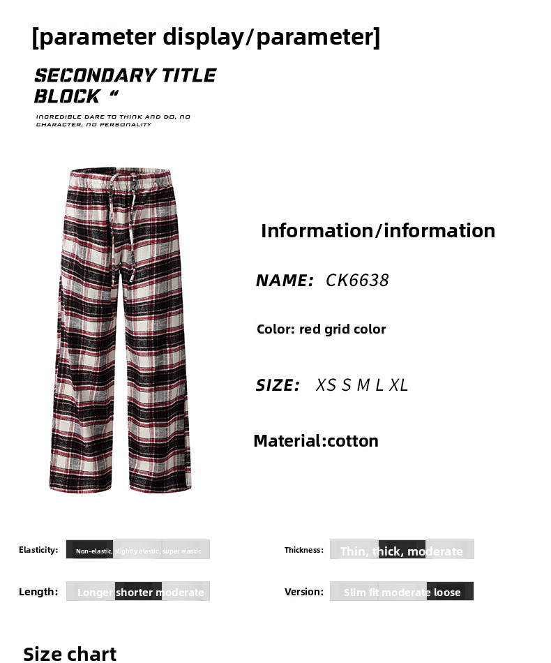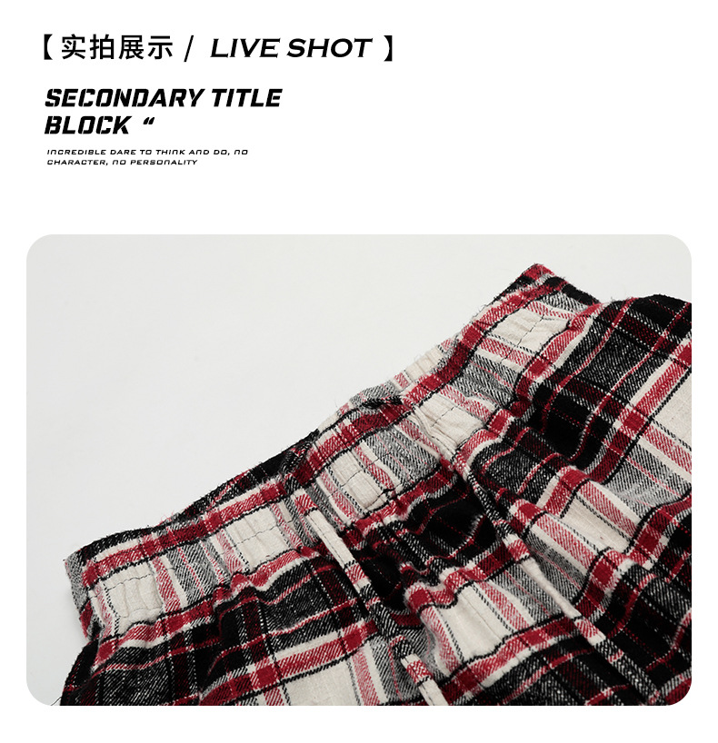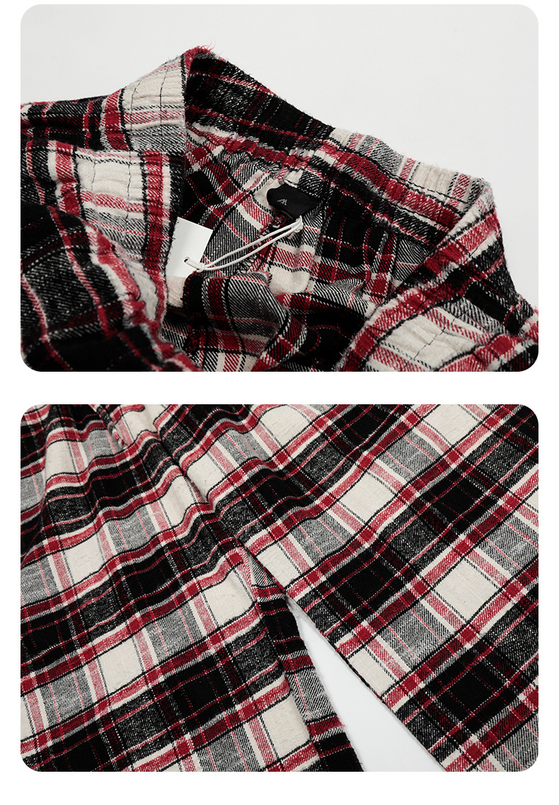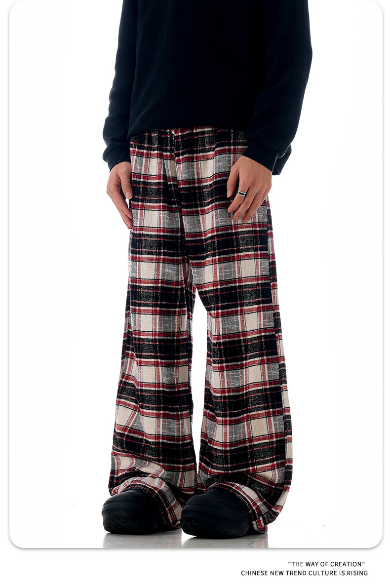 Plaid casual pants with an American impactLoose straight wide pants for spring and fallTrendy long pants with a draped feel