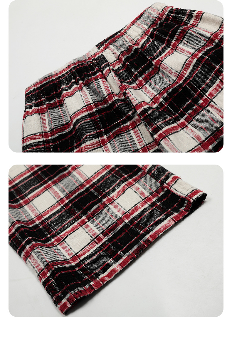 11KN Color-blocked Red Checkered Drawstring Straight-leg Slacks
