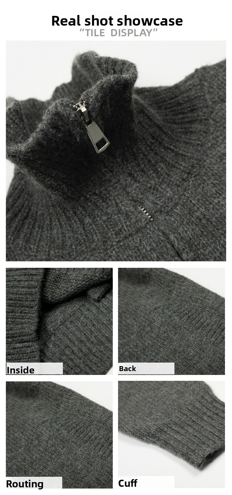 11KN gray zipper knitted sweater jacket