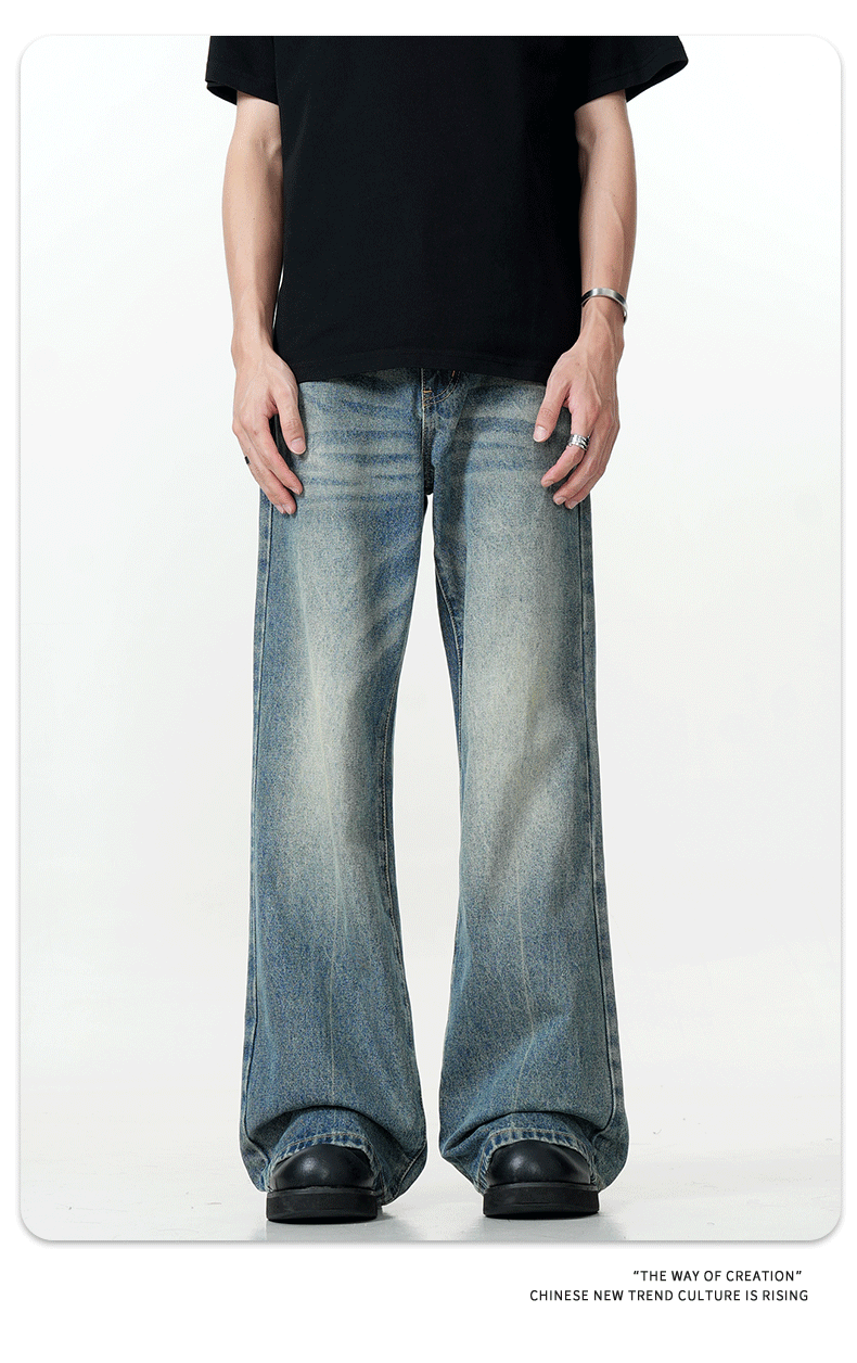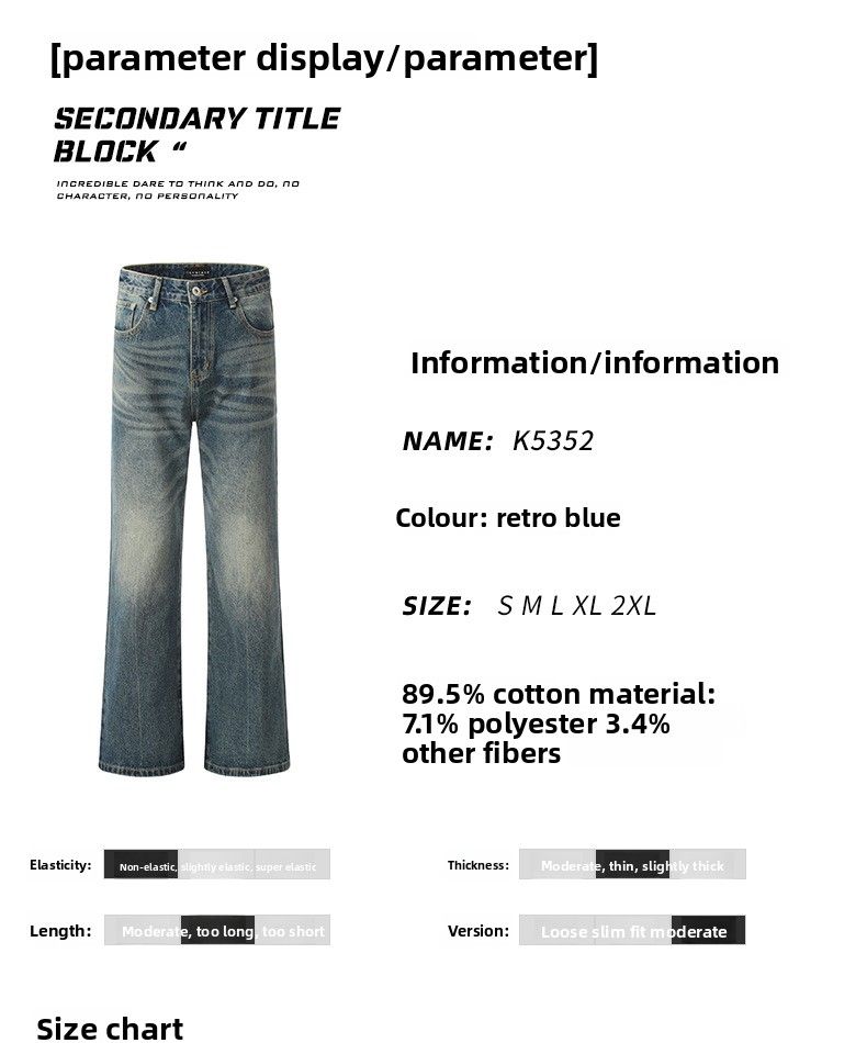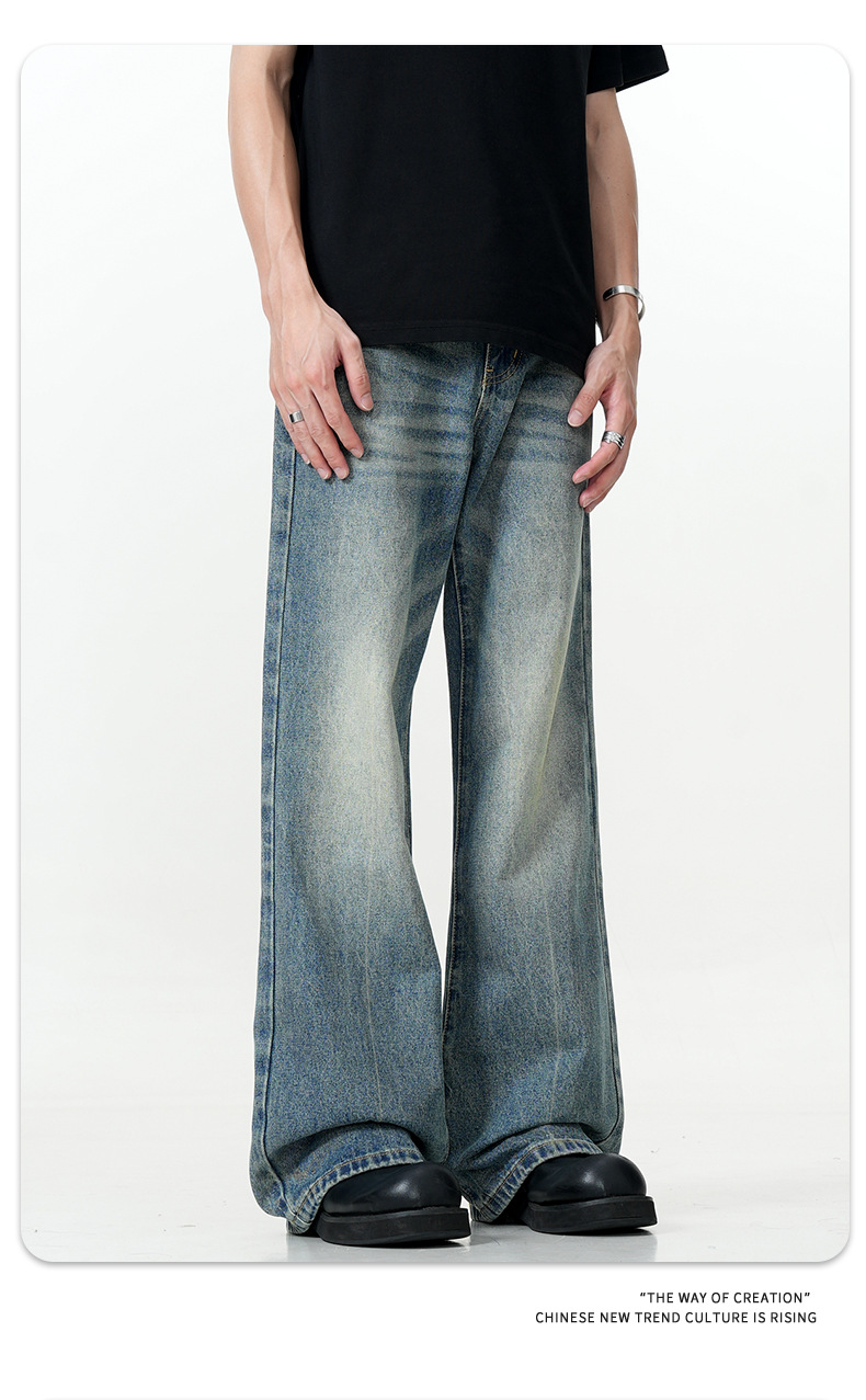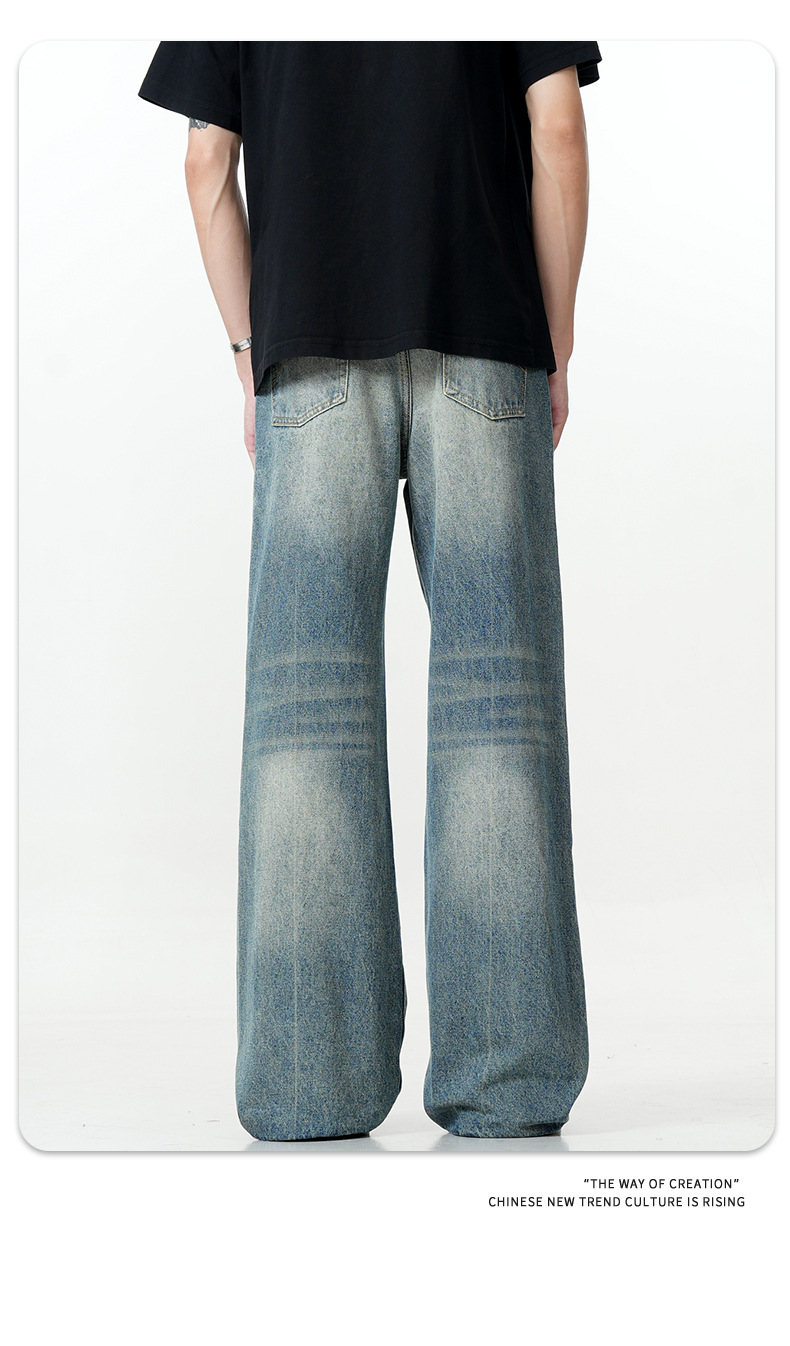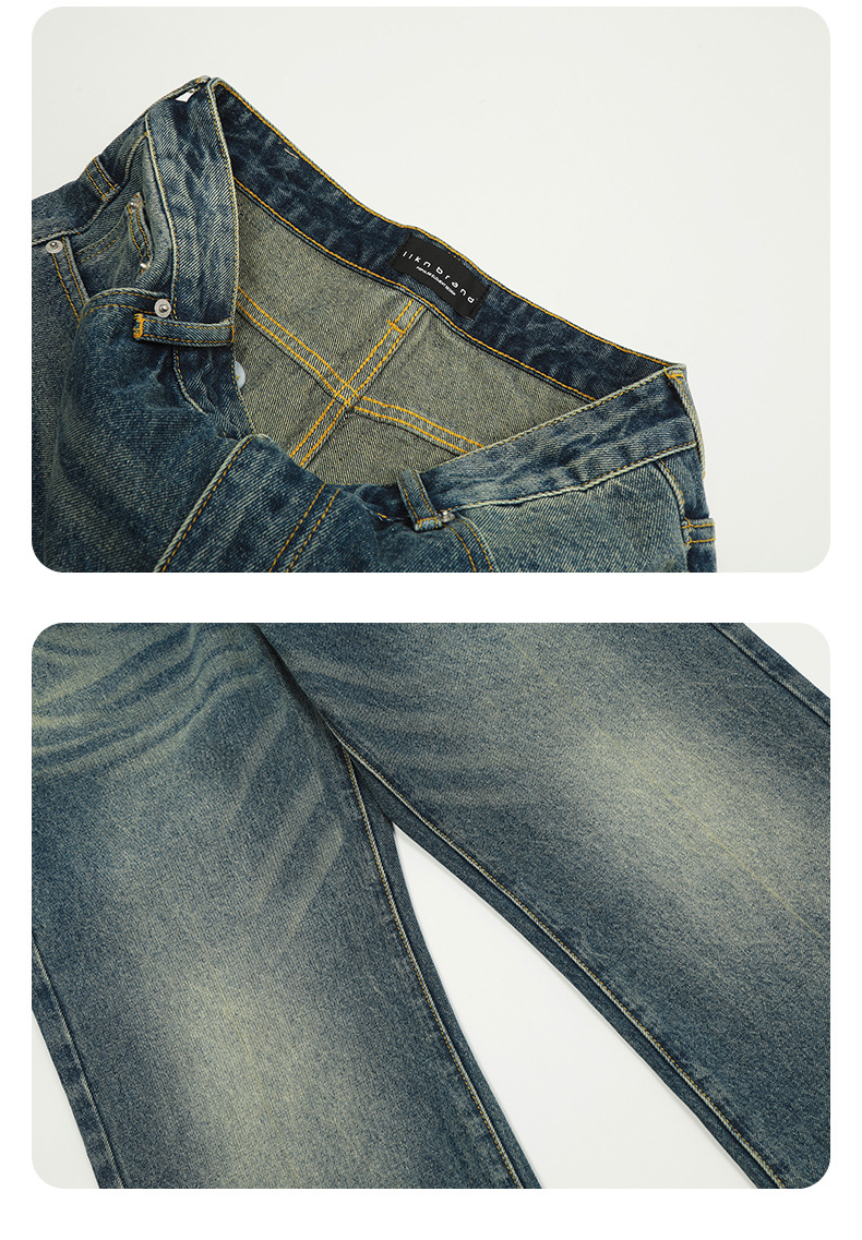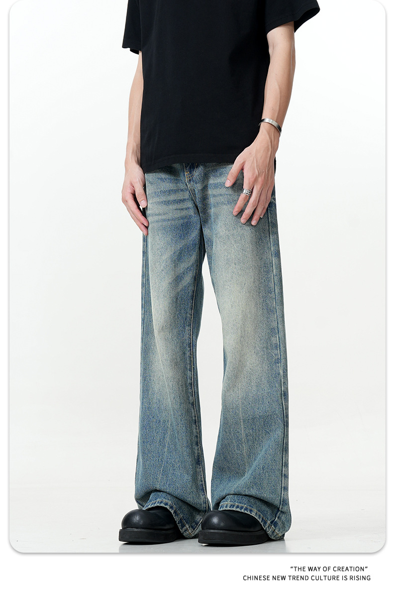 11KN American jeans retro high street cleanfit washed trendy slimming vibe versatile long pants cross-border