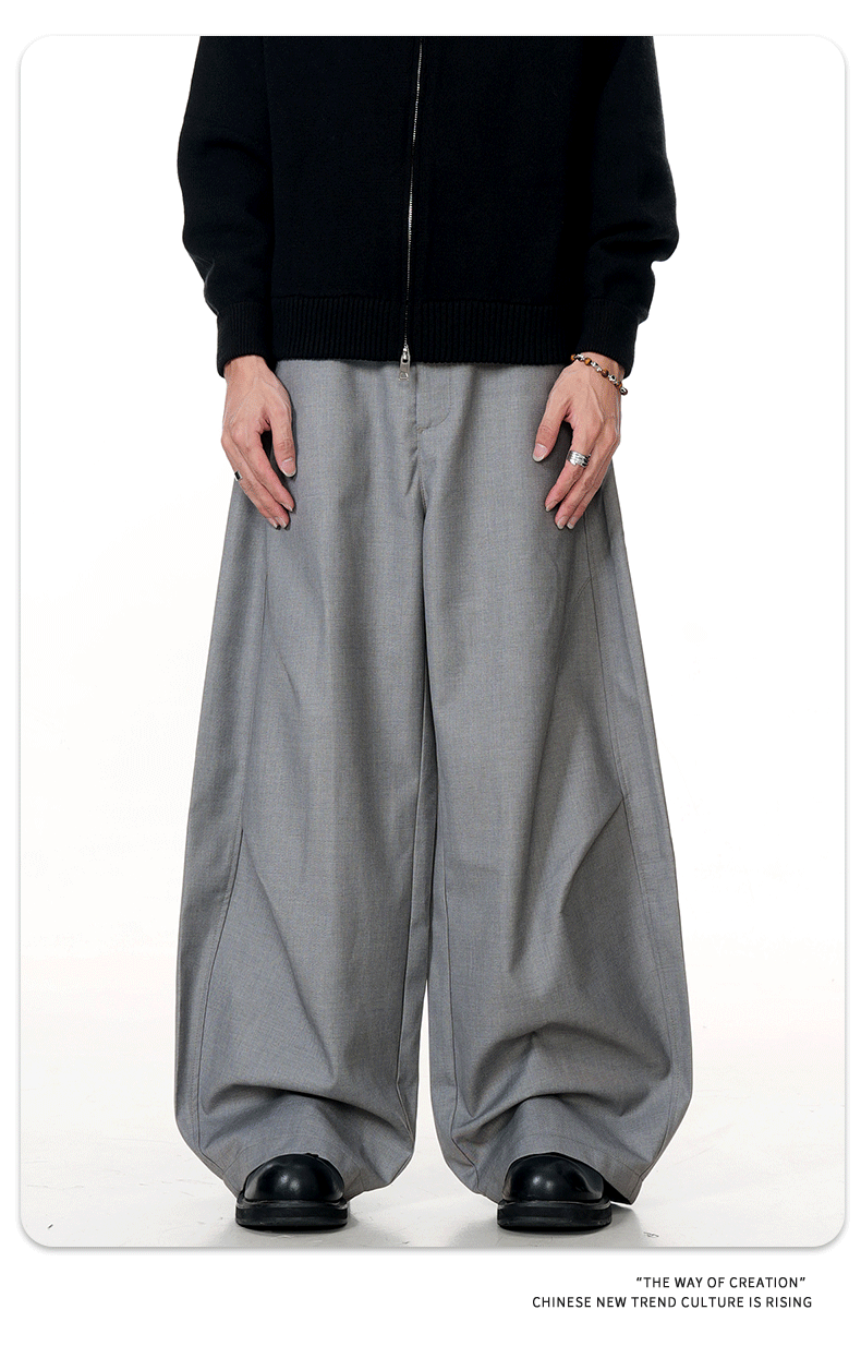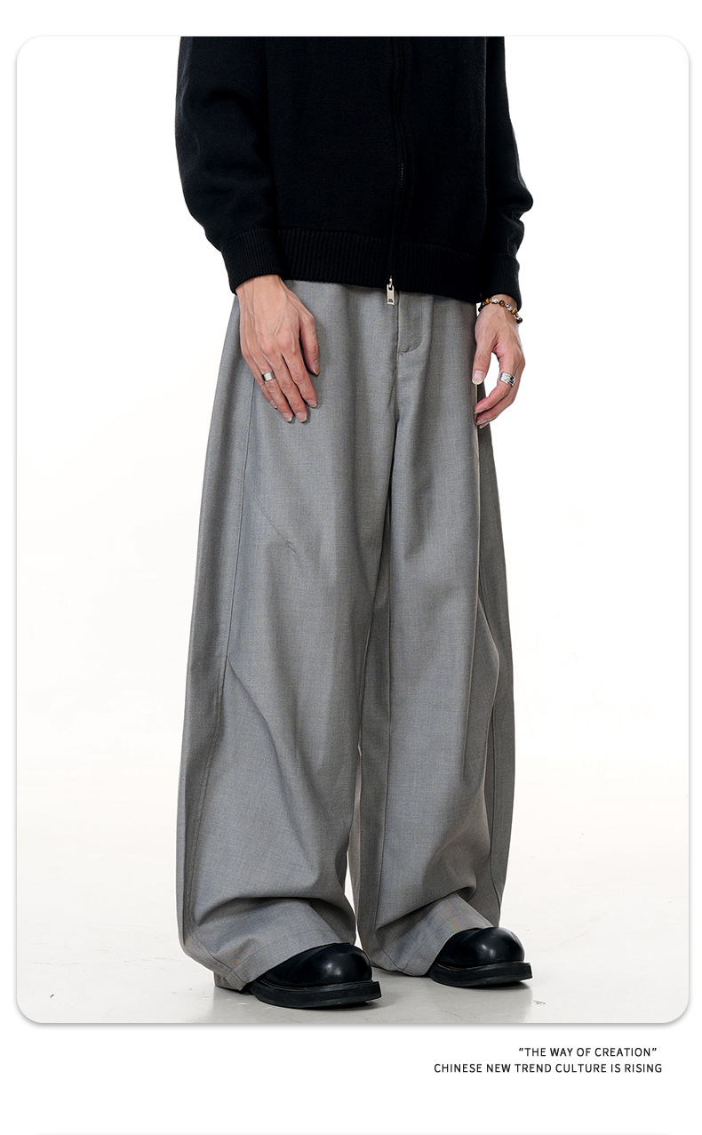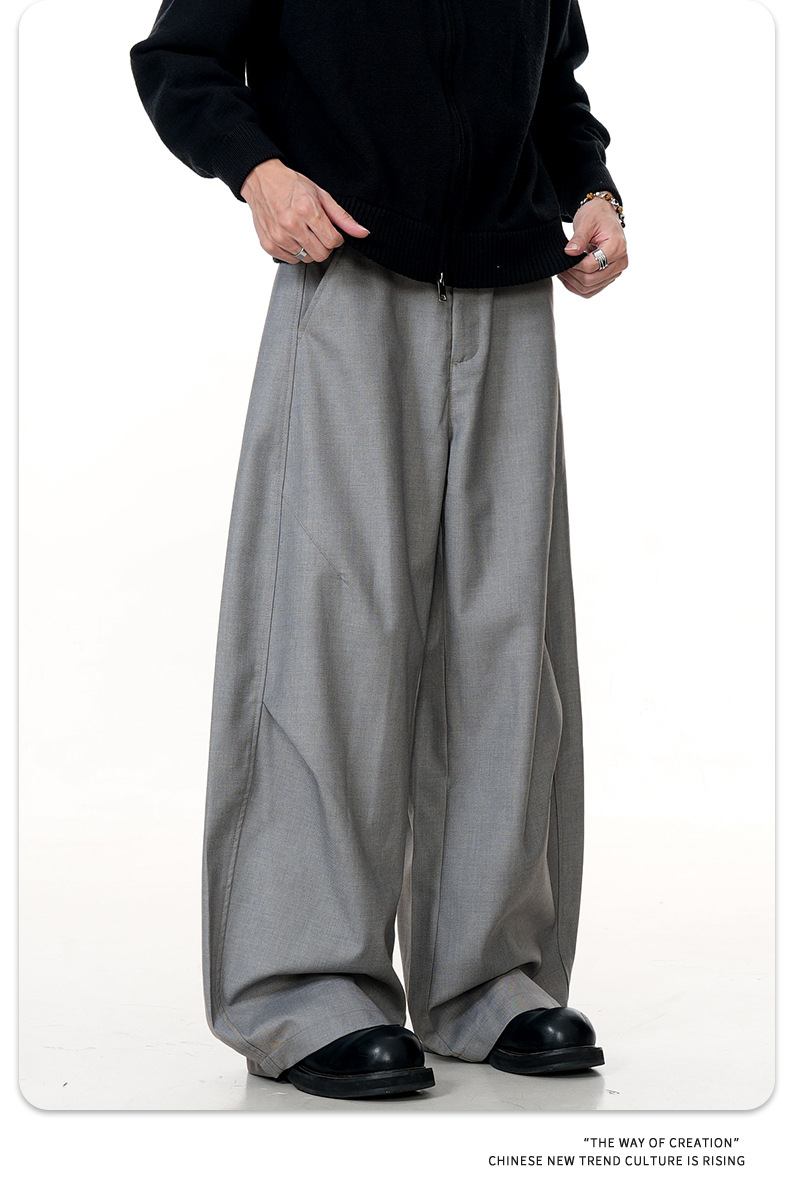 11KN American high street minimalist curved knife loose pleated men's and women's styles niche design casual suit pants cross-border