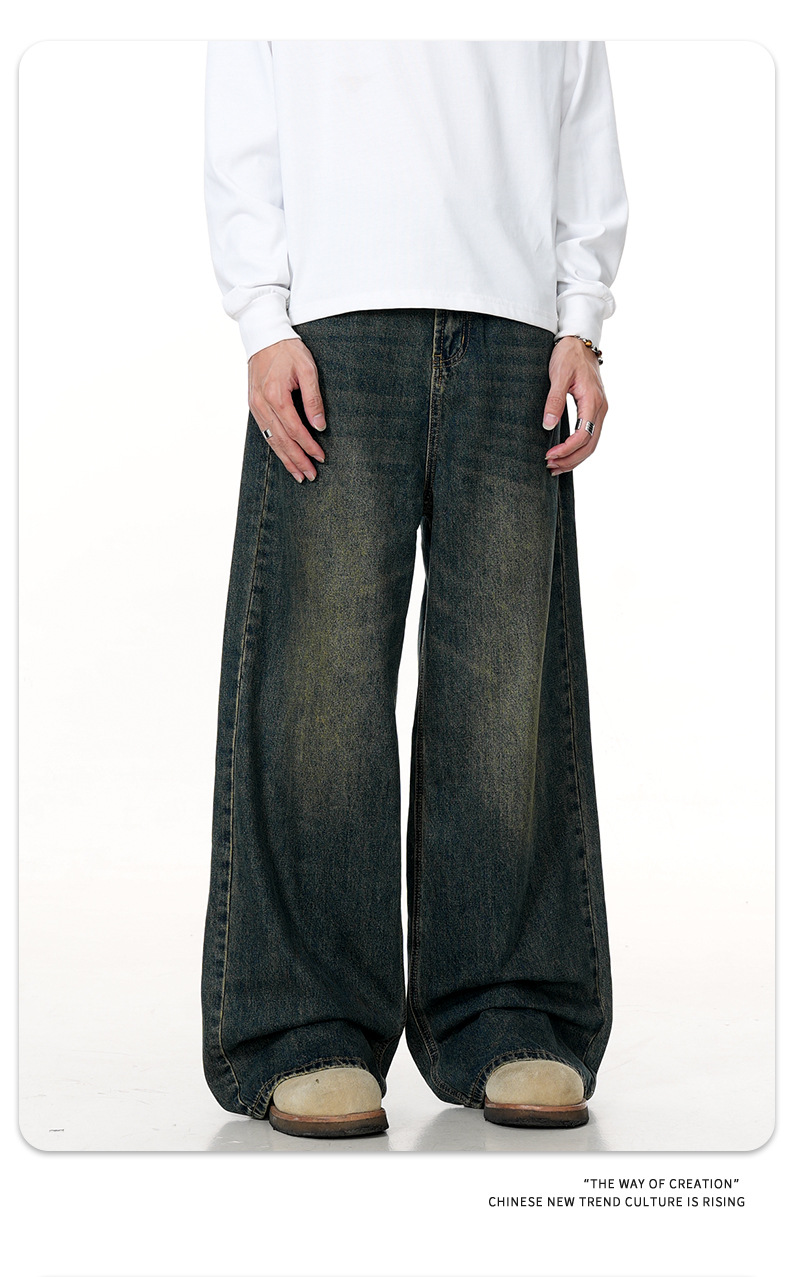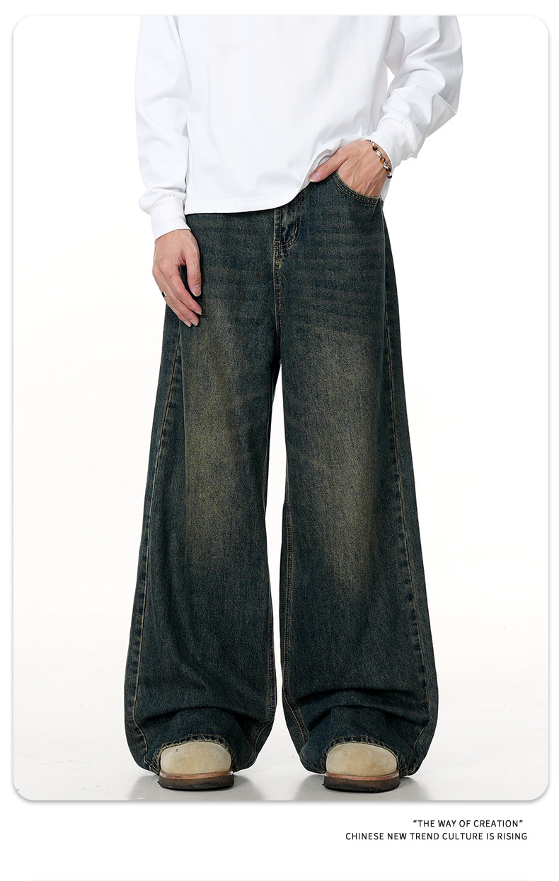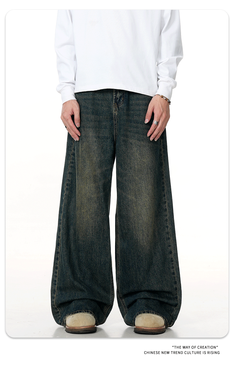 11KN Mỹ Vintage Jeans giặt làm cũ rộng thùng thình 2024 mới xuất hiện gầy chân rộng quần Triều Nhãn hiệu qua biên giới