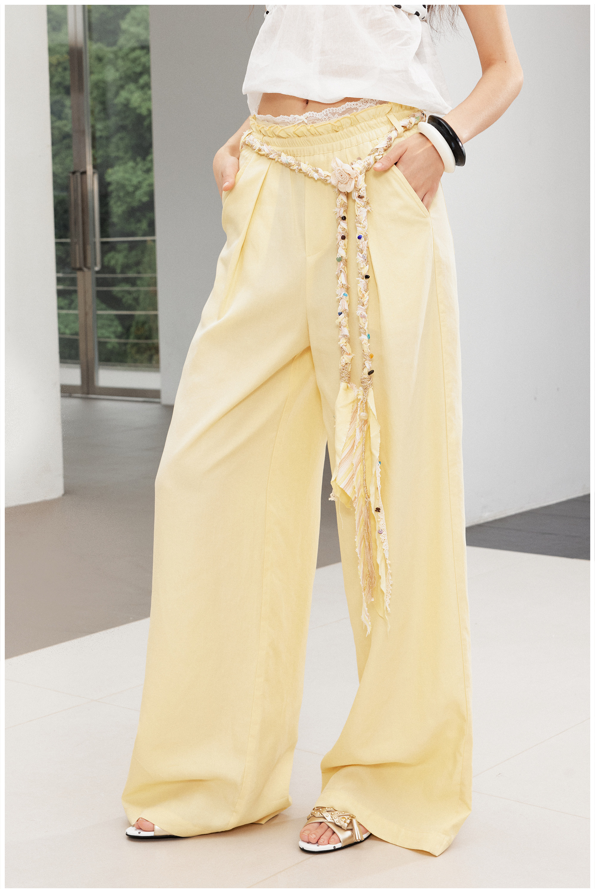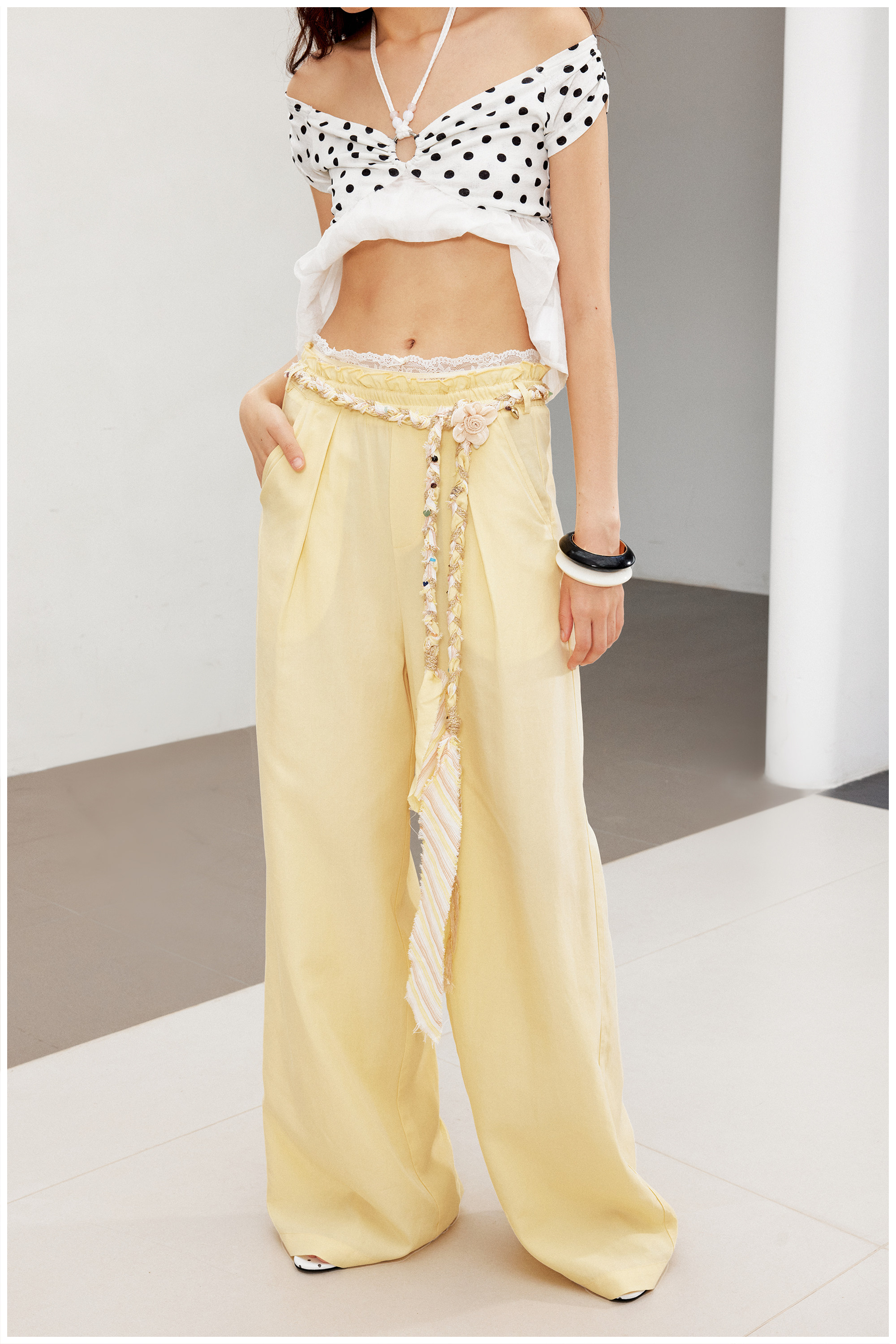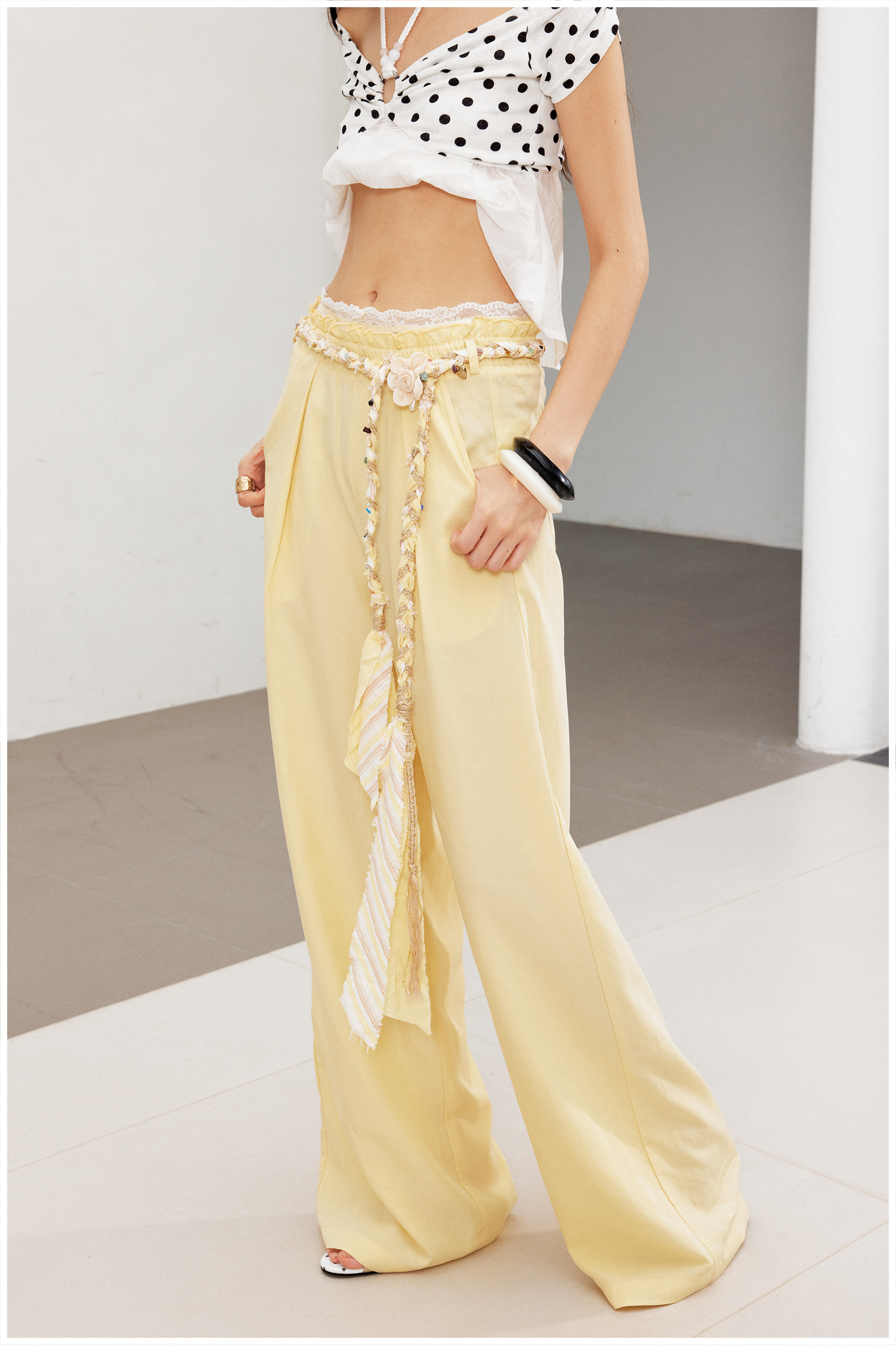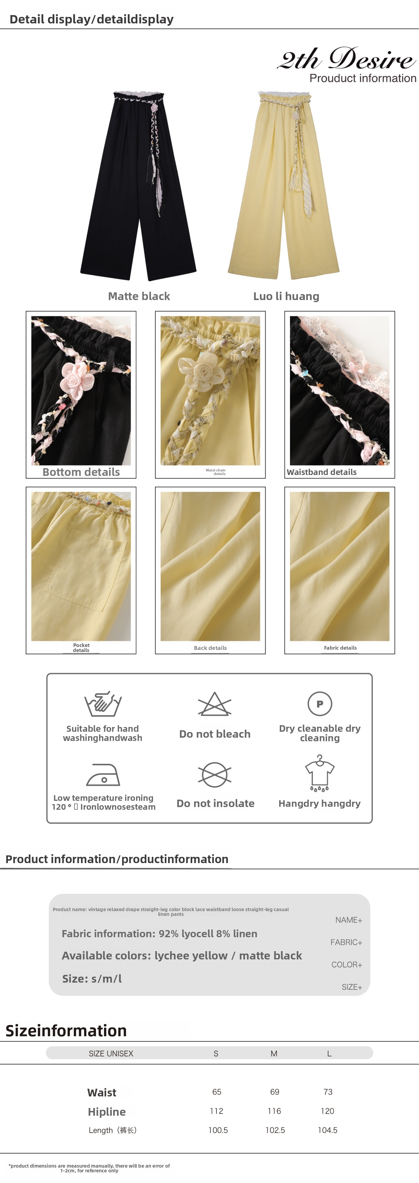 2th Desire Vintage Contrast Waist Lace Splicing Loose Straight Pants
