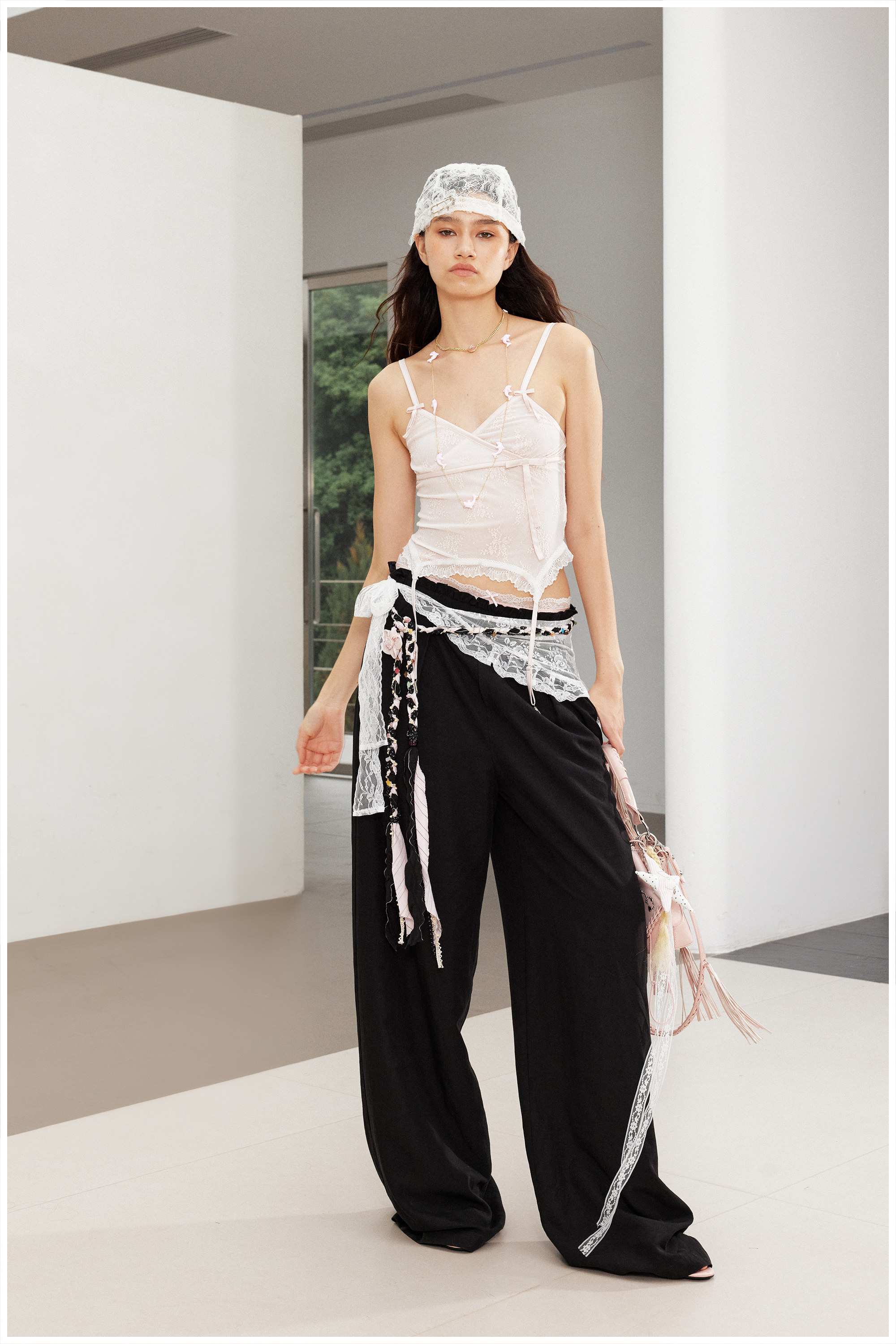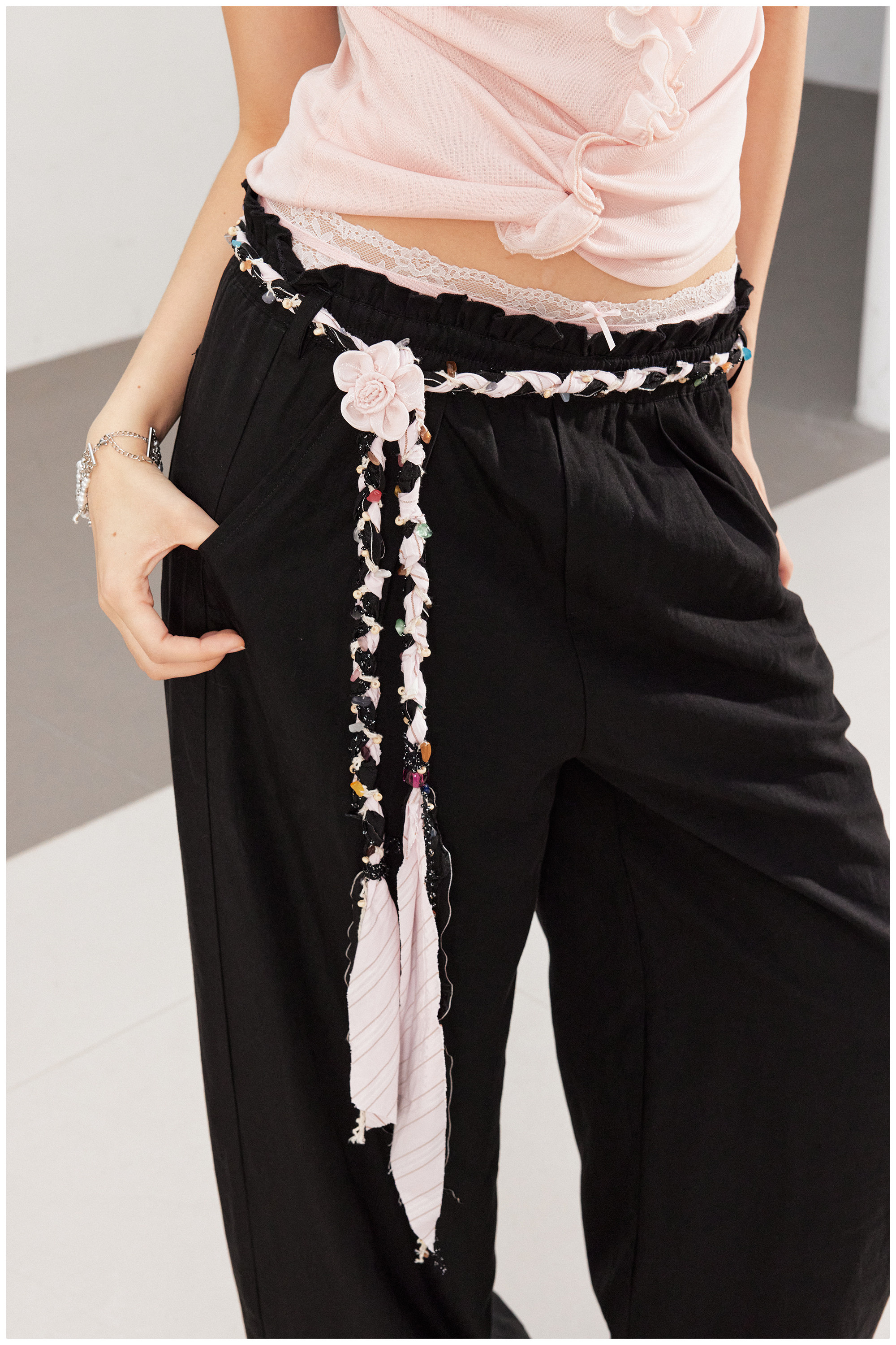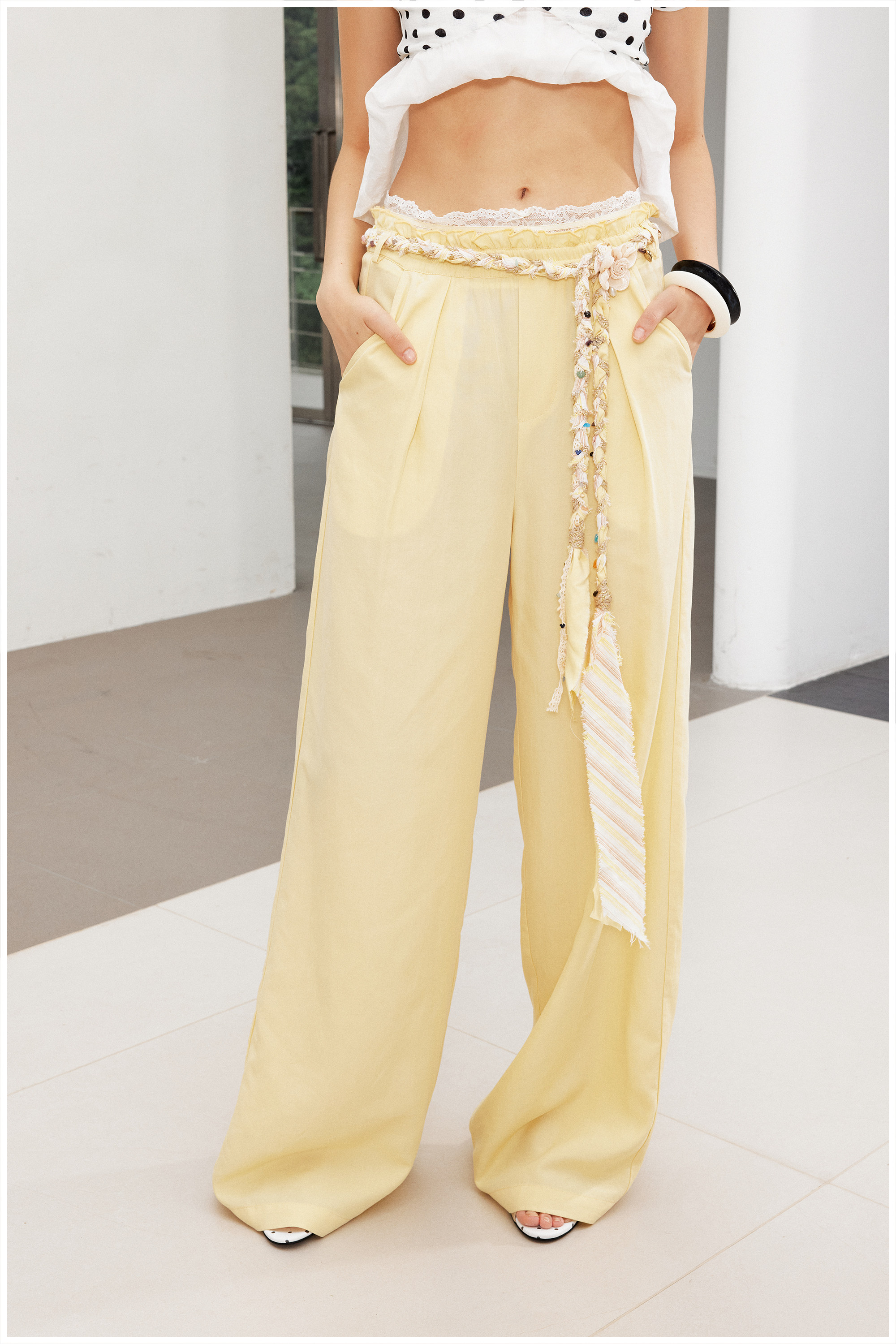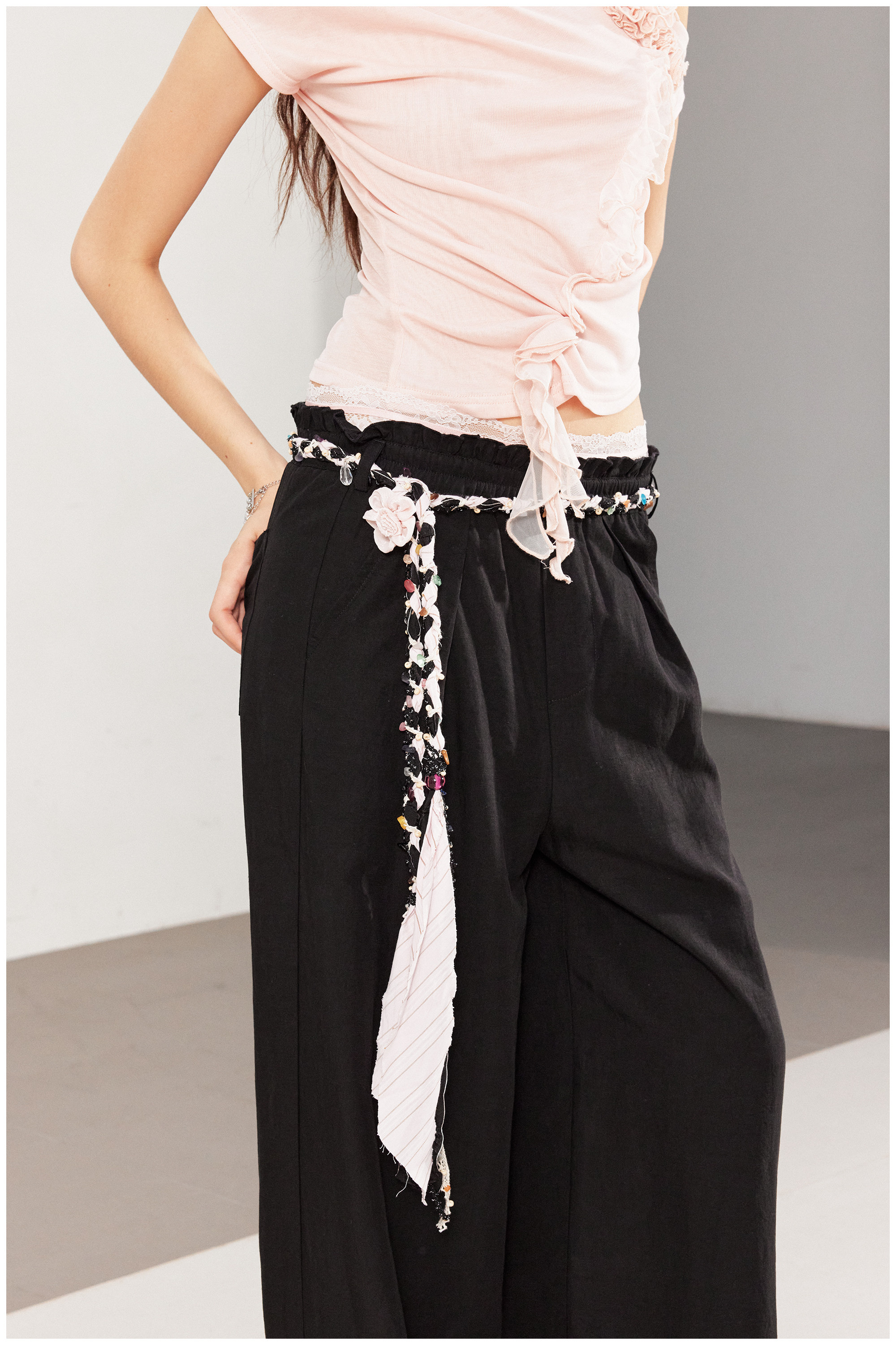 2th Desire Vintage Contrast Waist Lace Splicing Loose Straight Pants