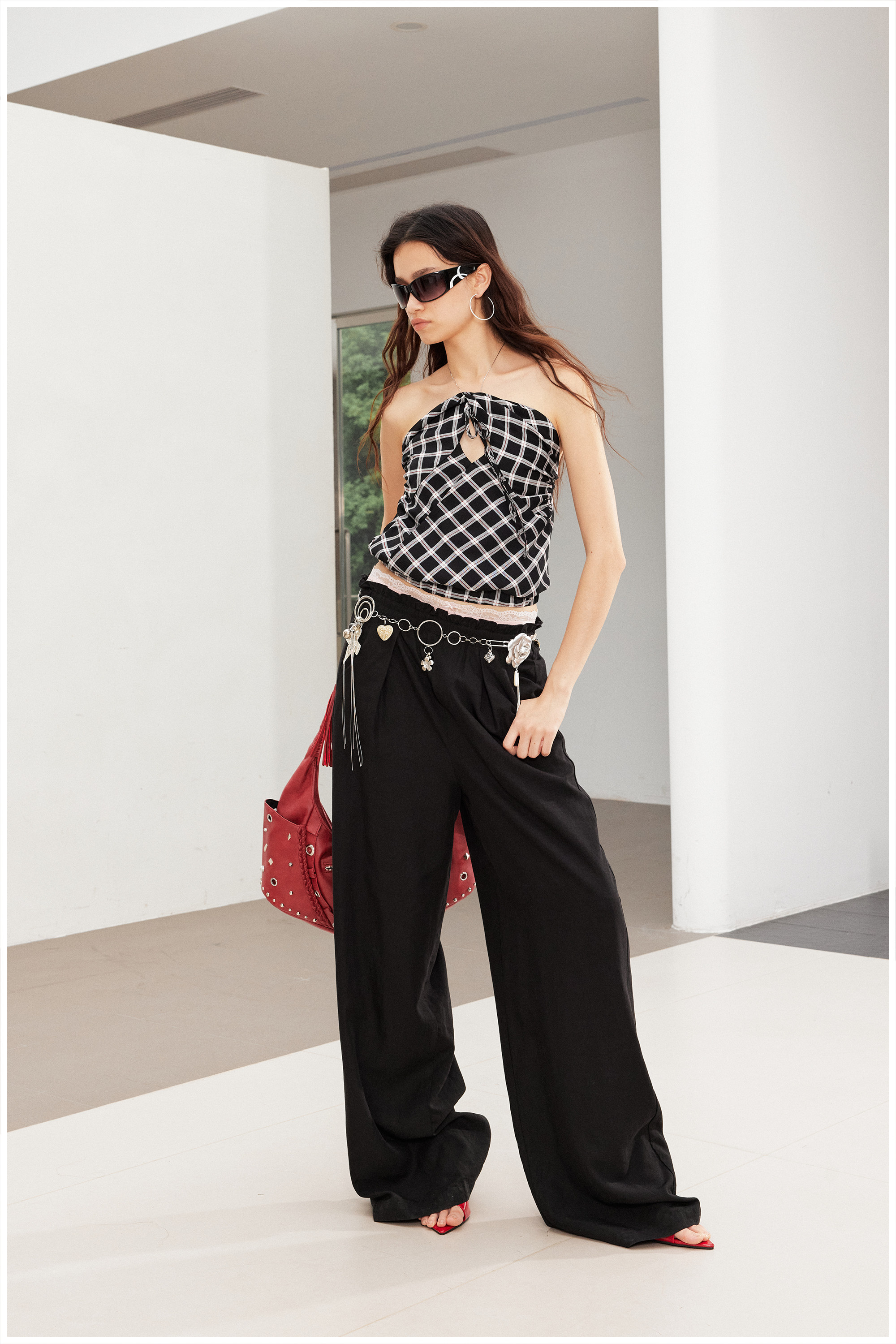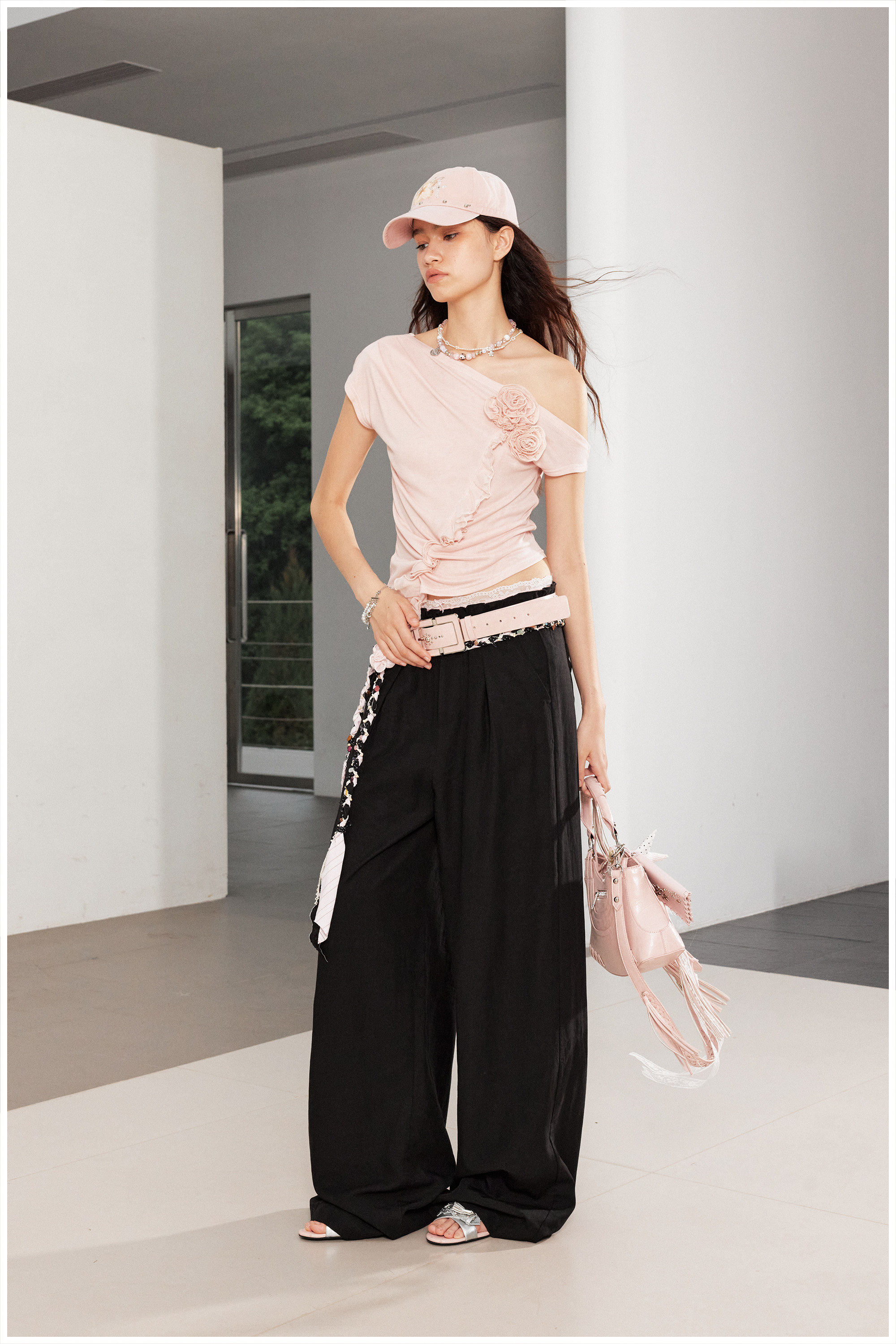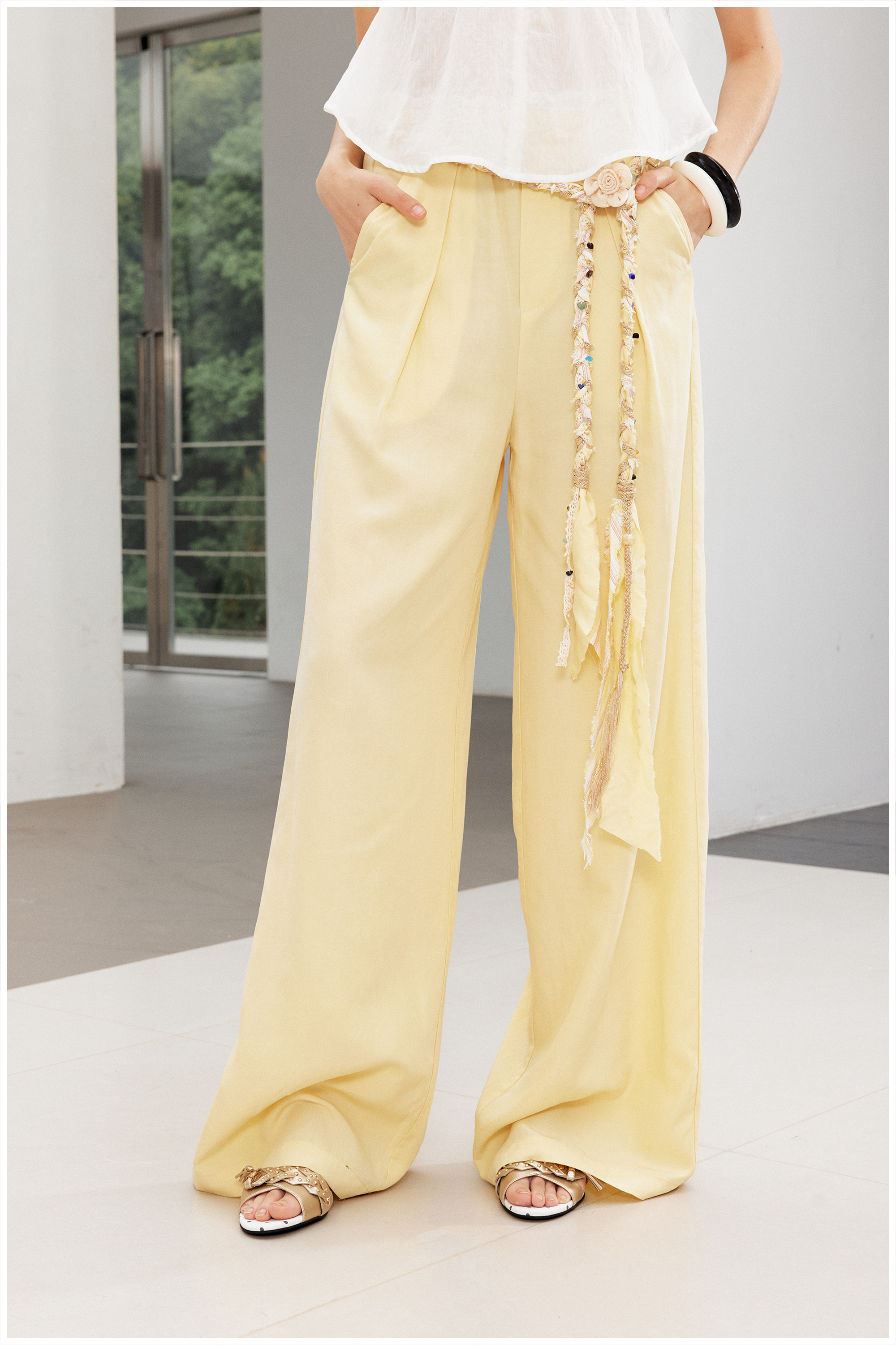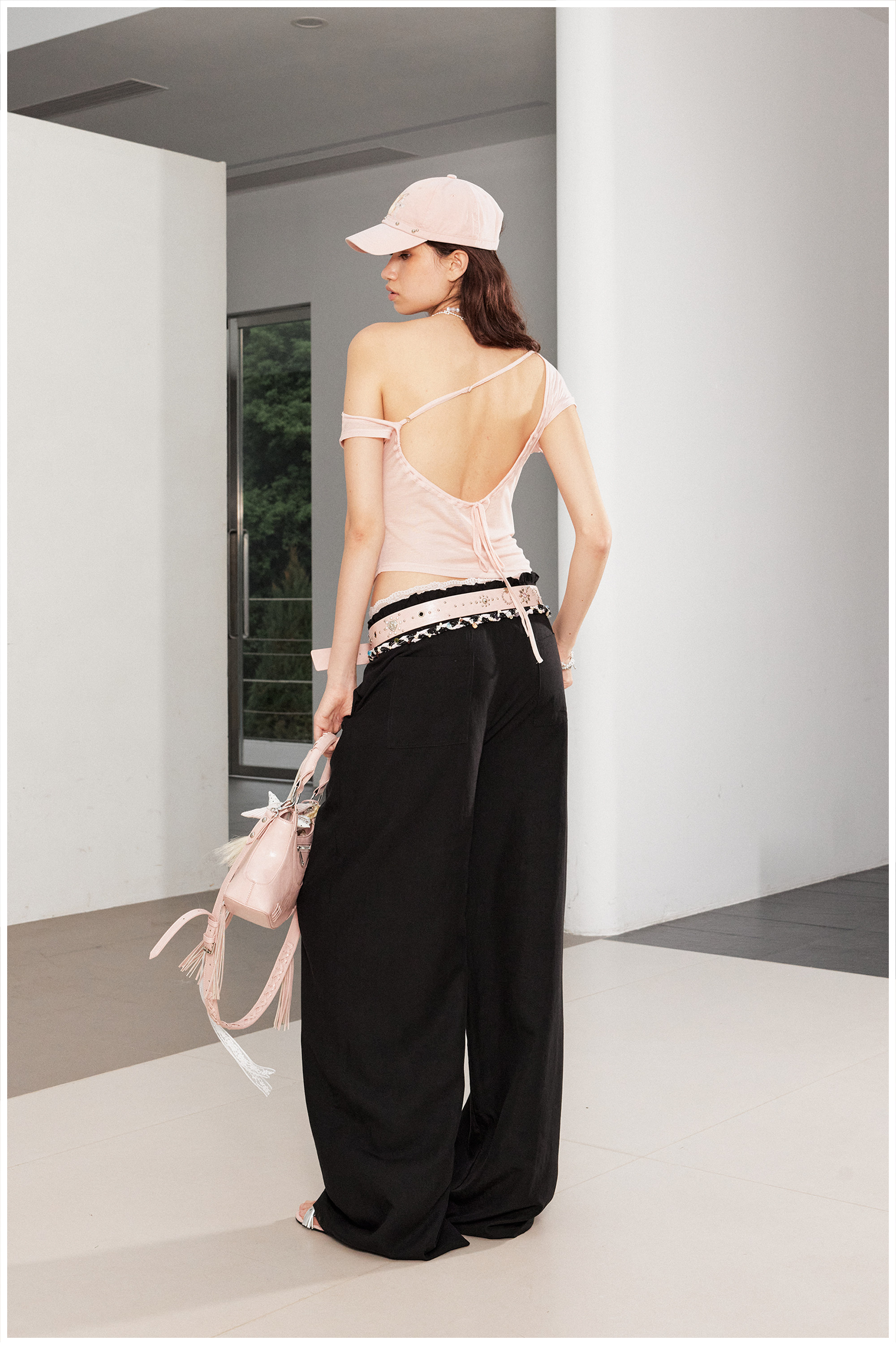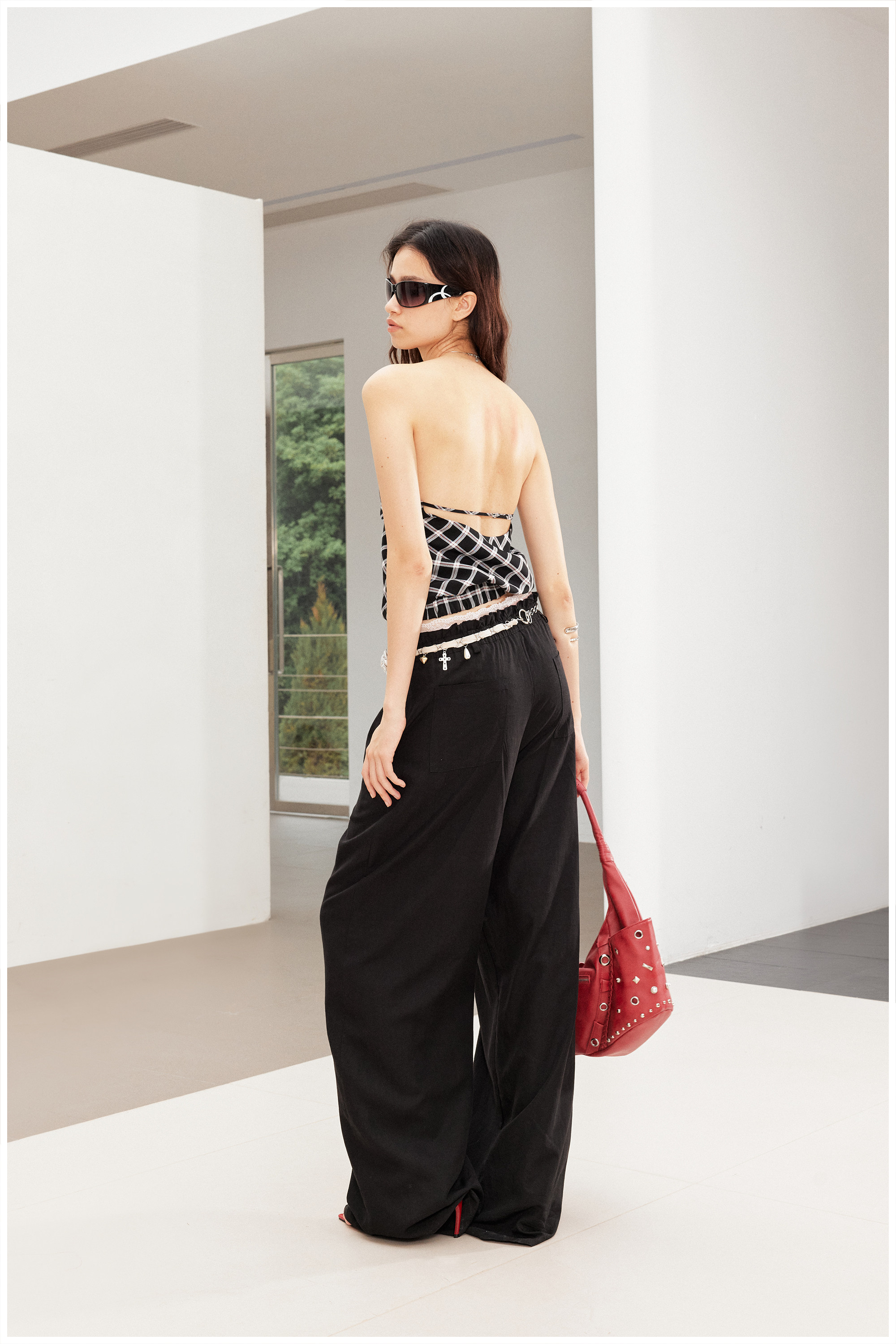 2th Desire Vintage Contrast Waist Lace Splicing Loose Straight Pants