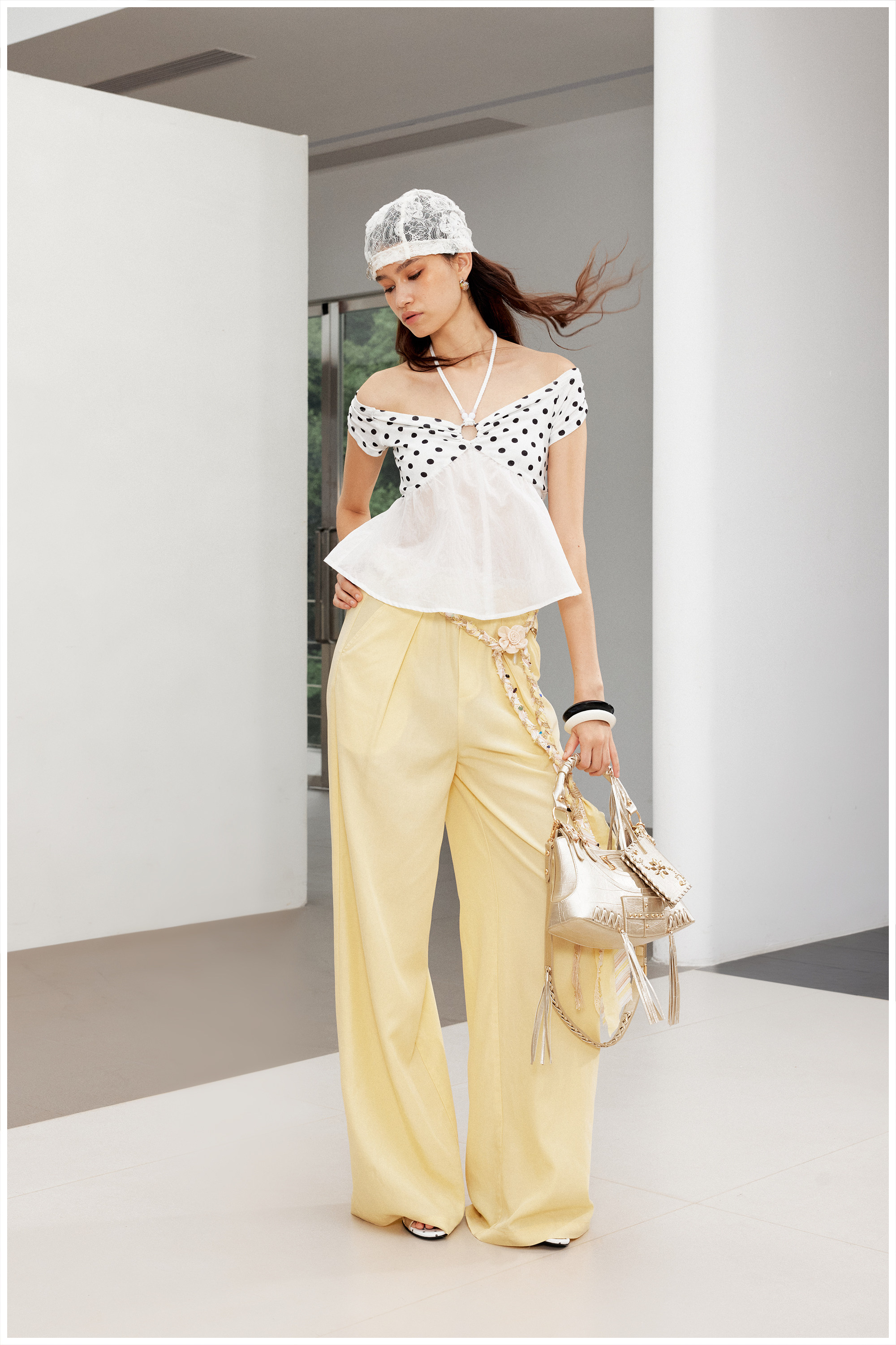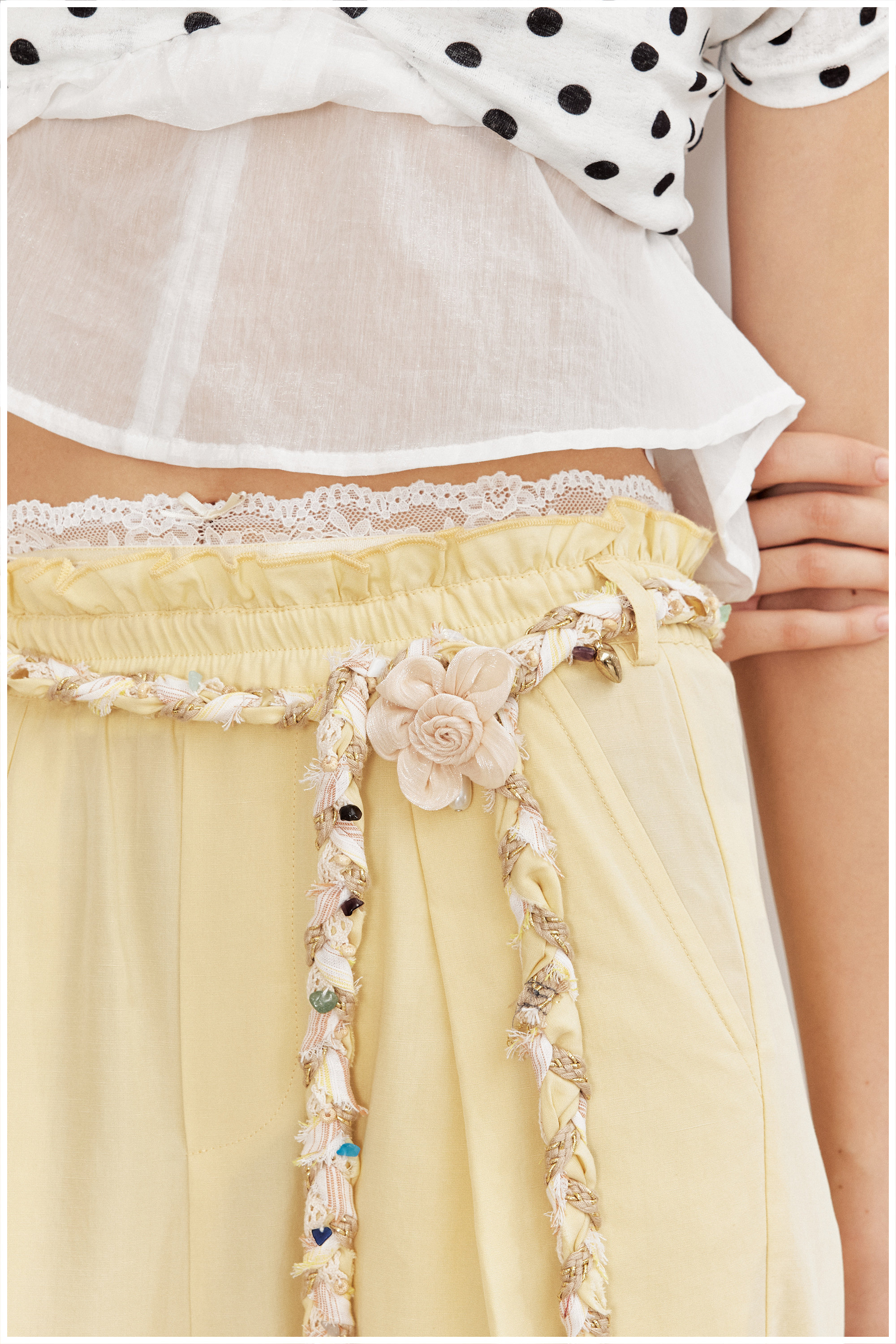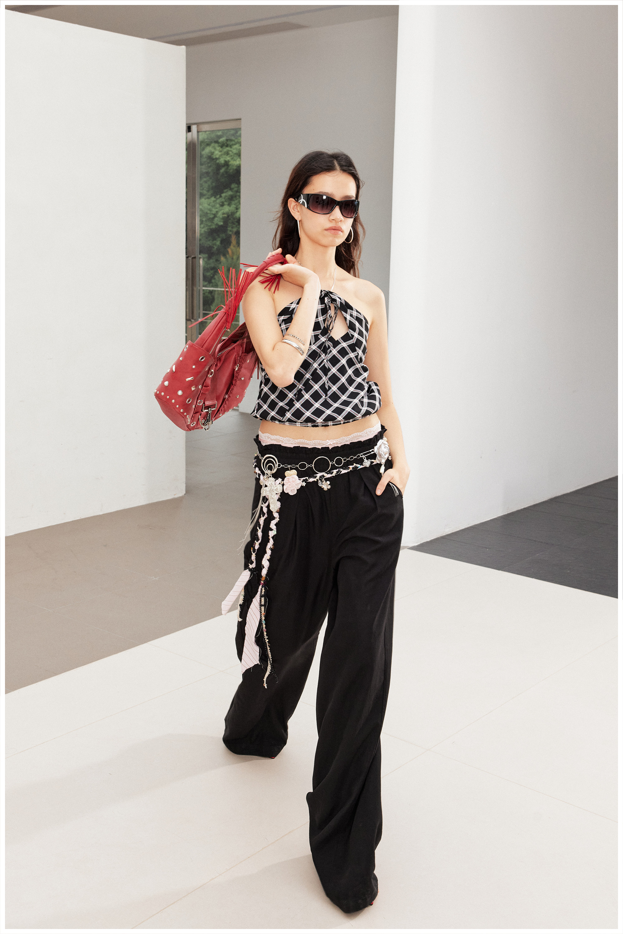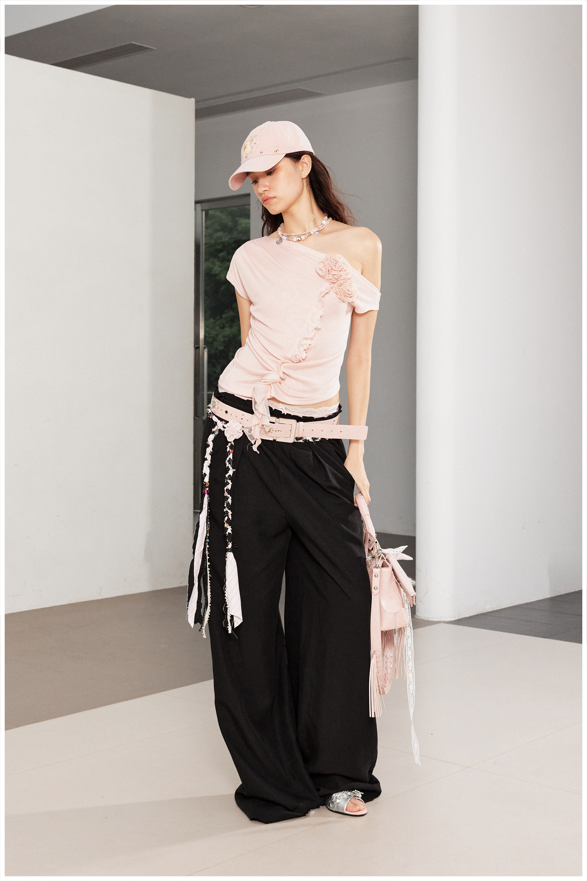 2th Desire Vintage Contrast Waist Lace Splicing Loose Straight Pants