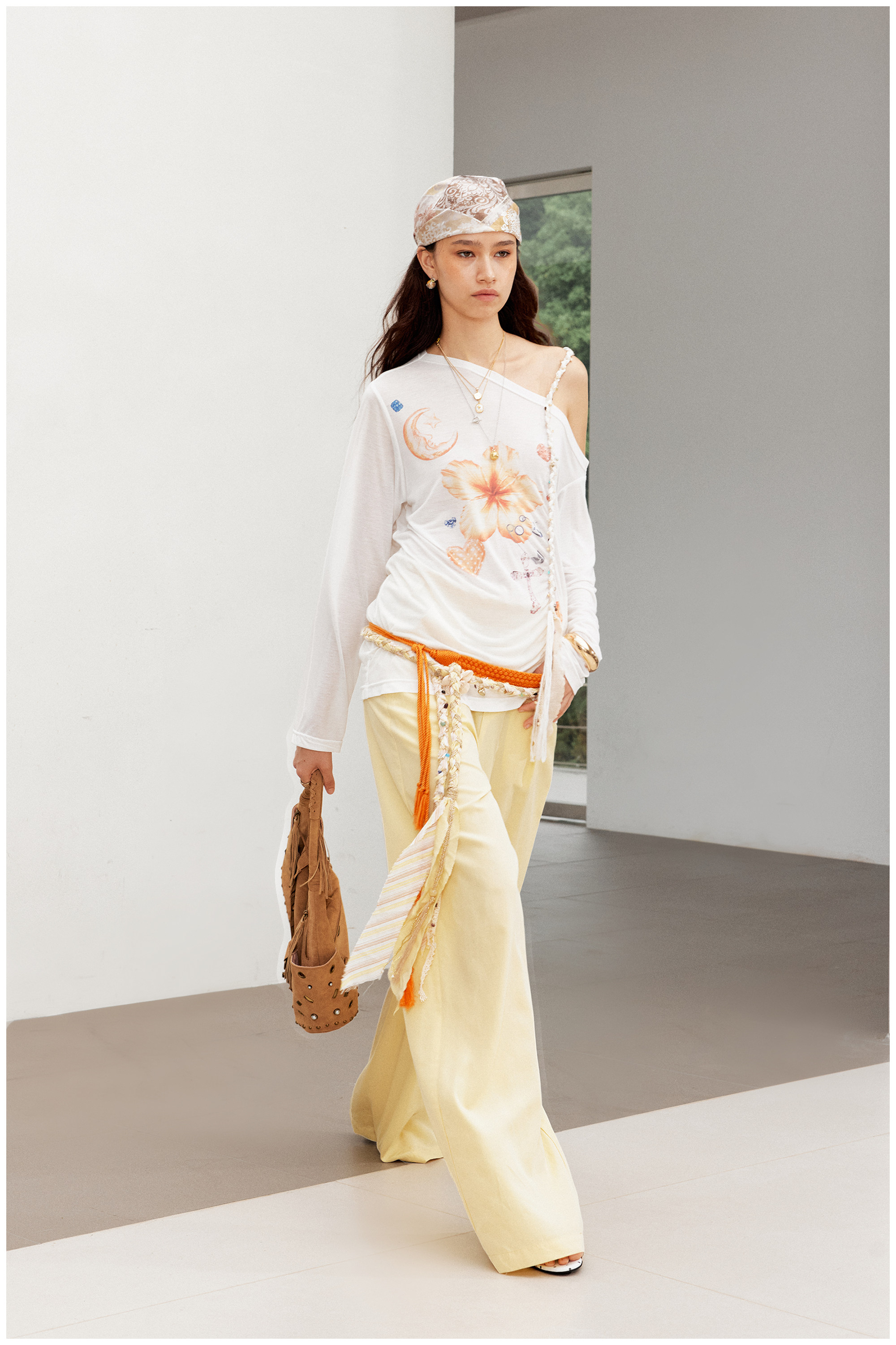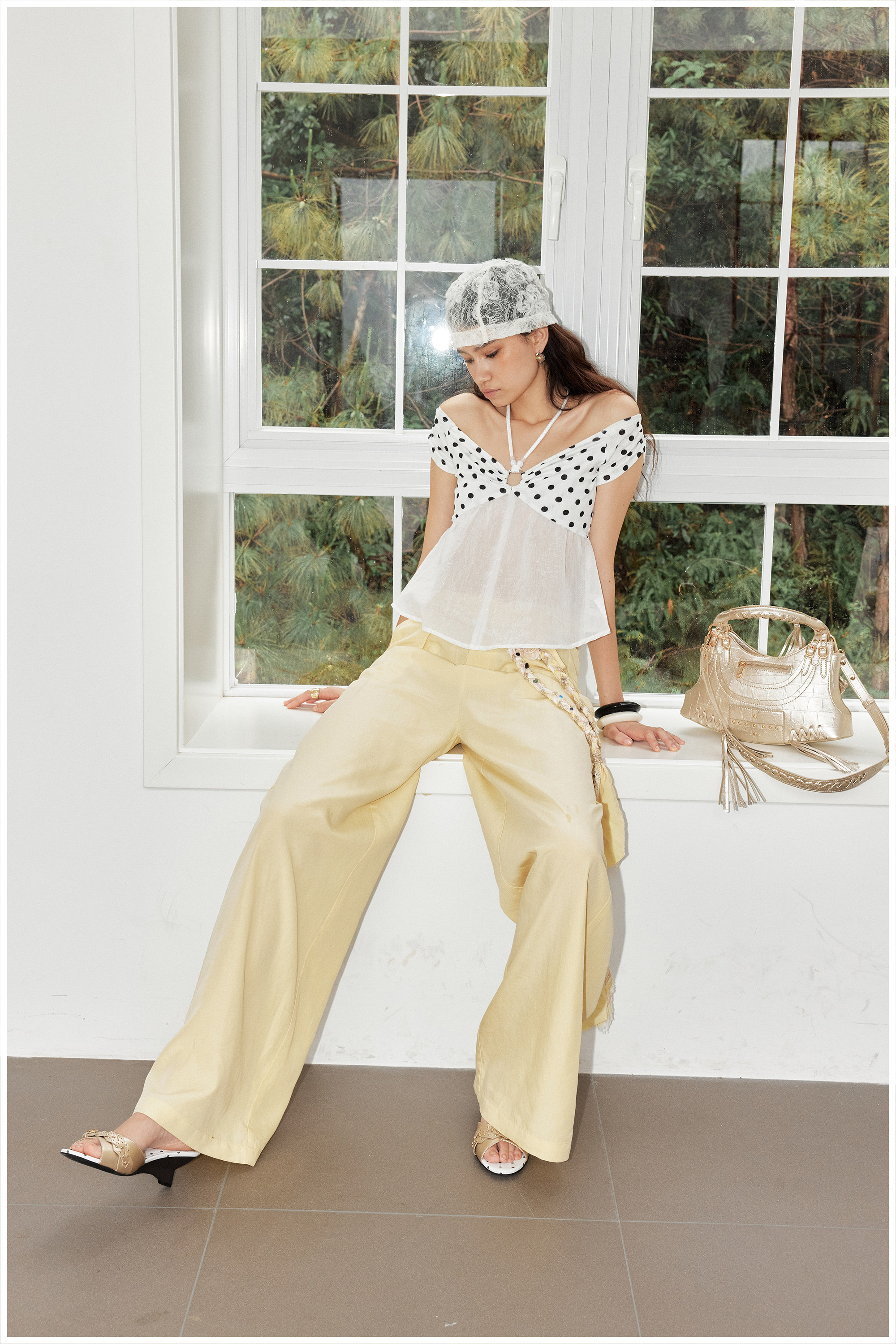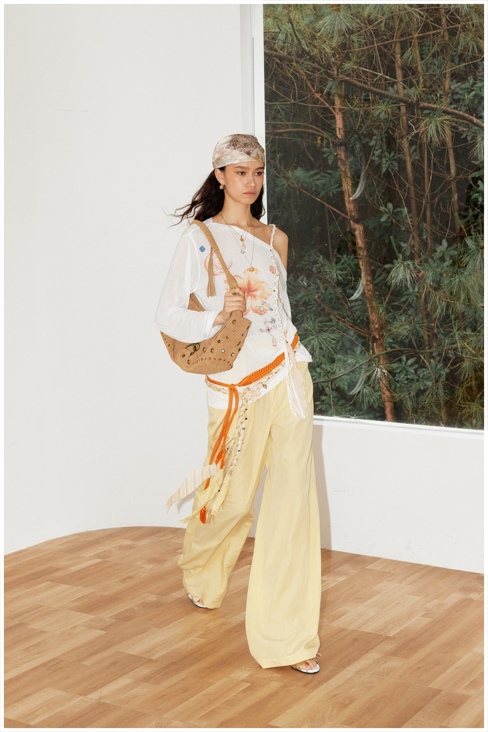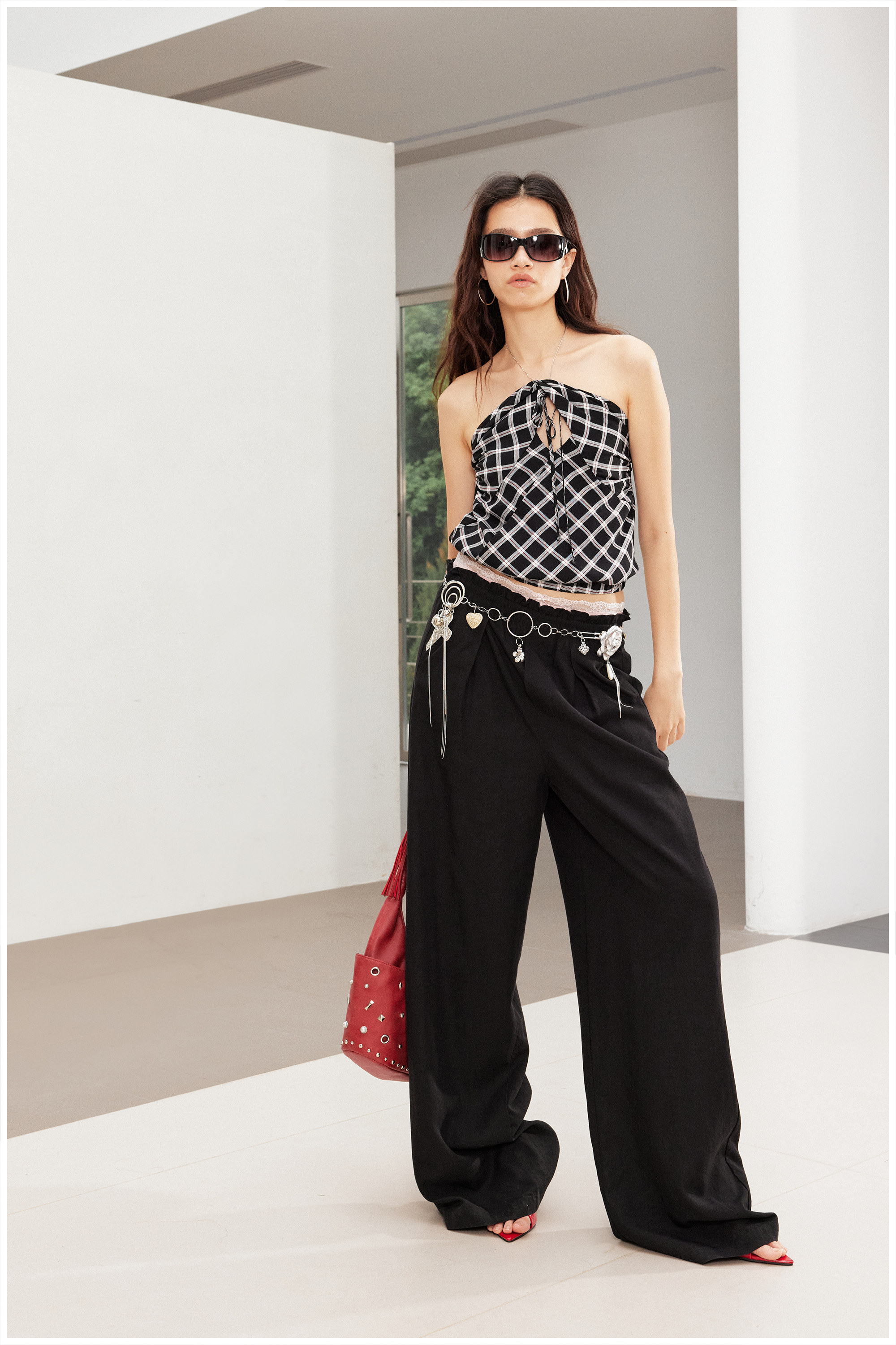 2th Desire Vintage Contrast Waist Lace Splicing Loose Straight Pants