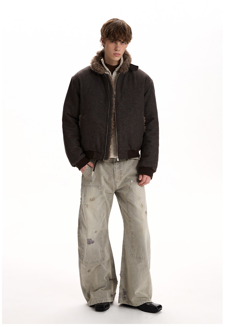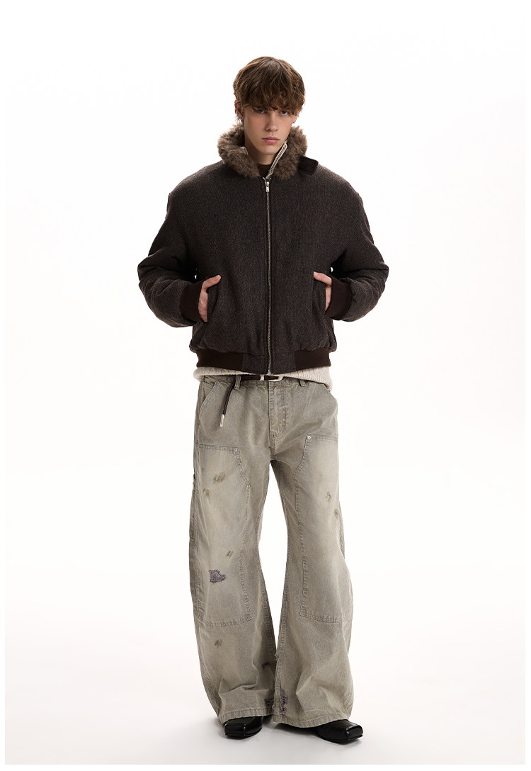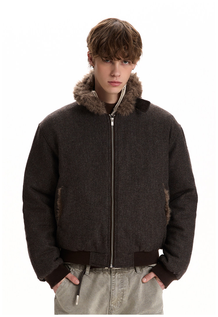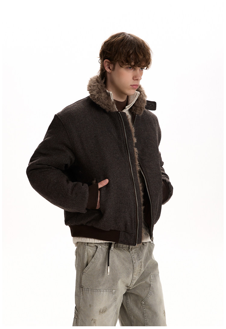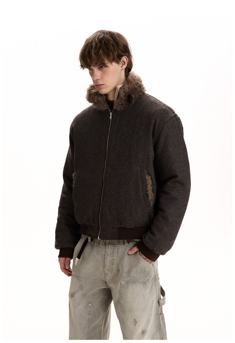 A PUEE Retro Fur Collar Thickened Thermal Tooling Jacket