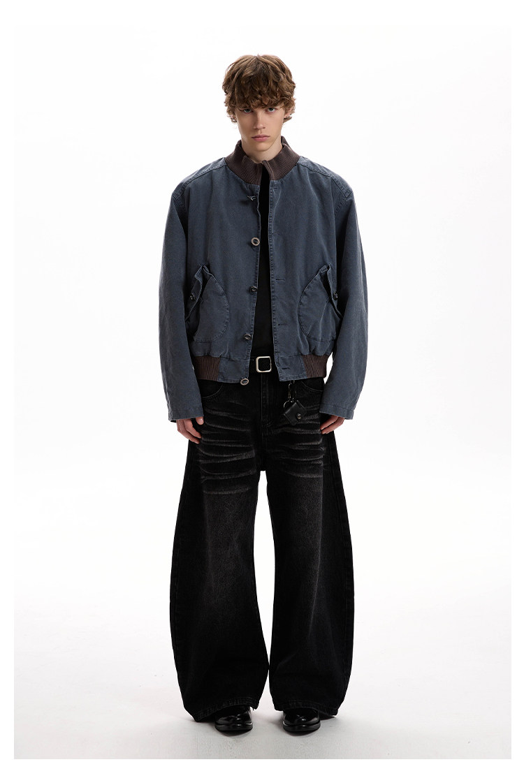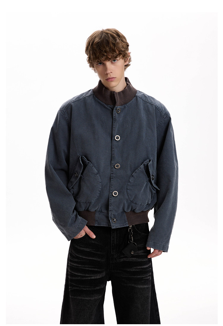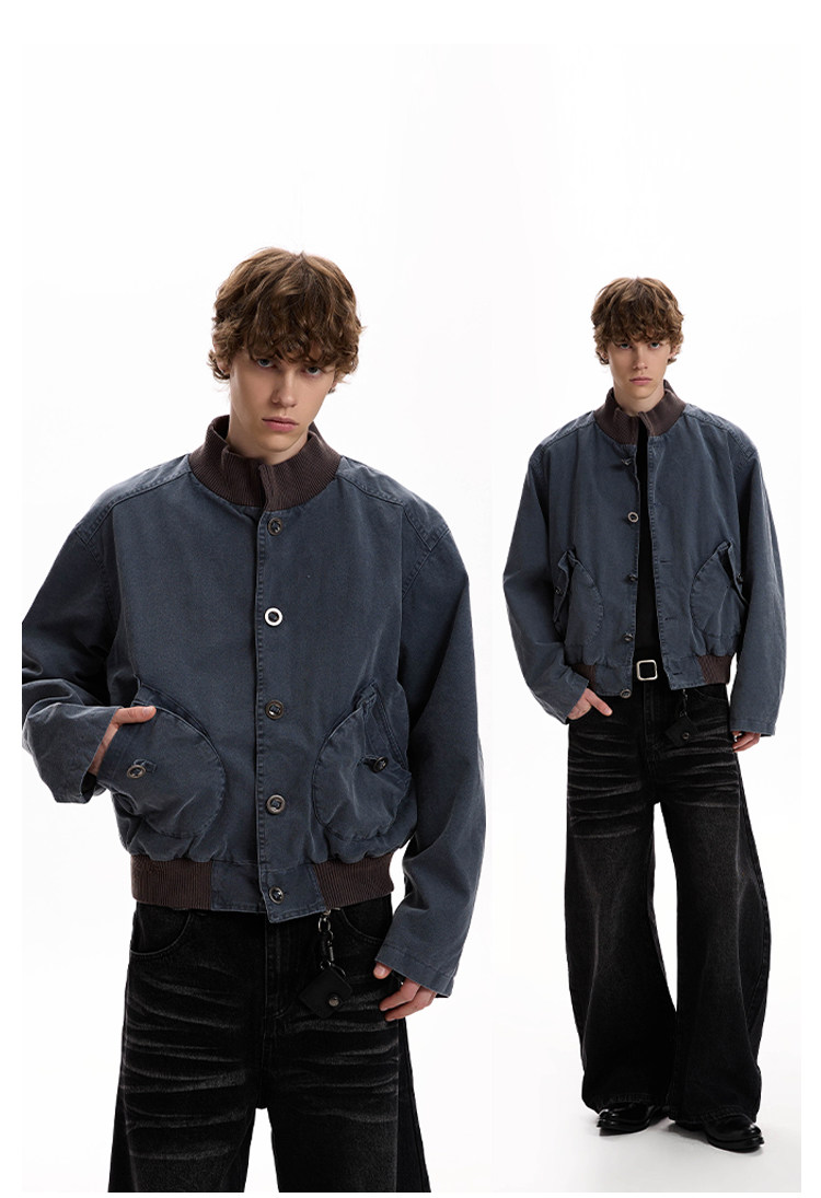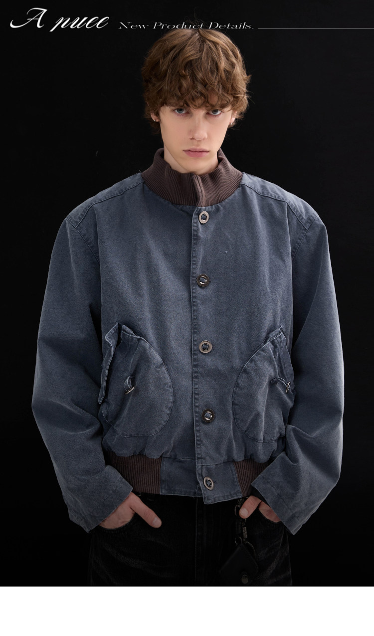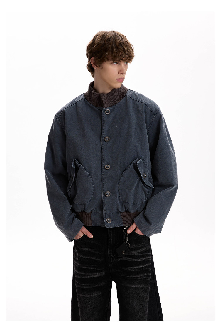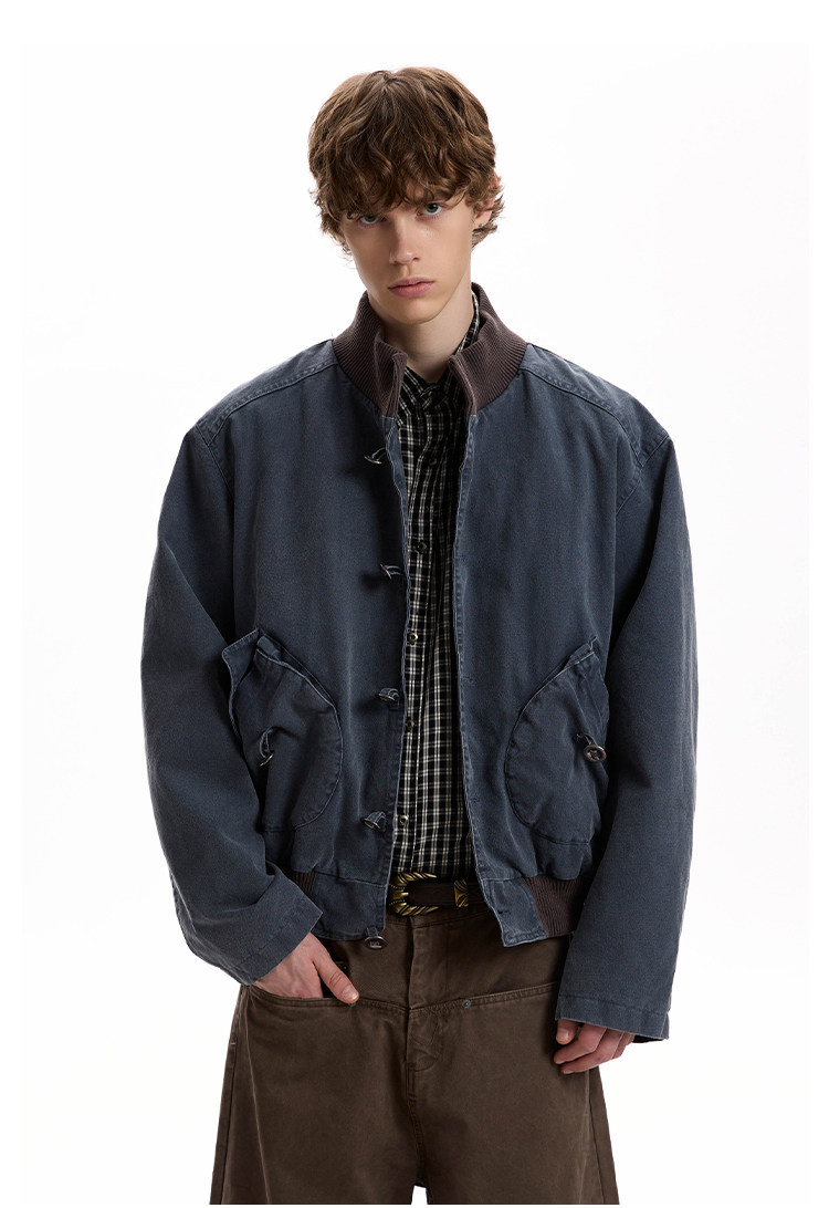 A PUEE Retro Short Stand-up Collar Versatile Jacket