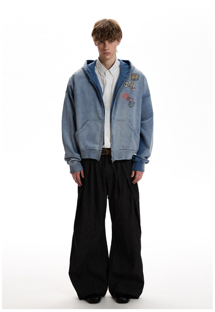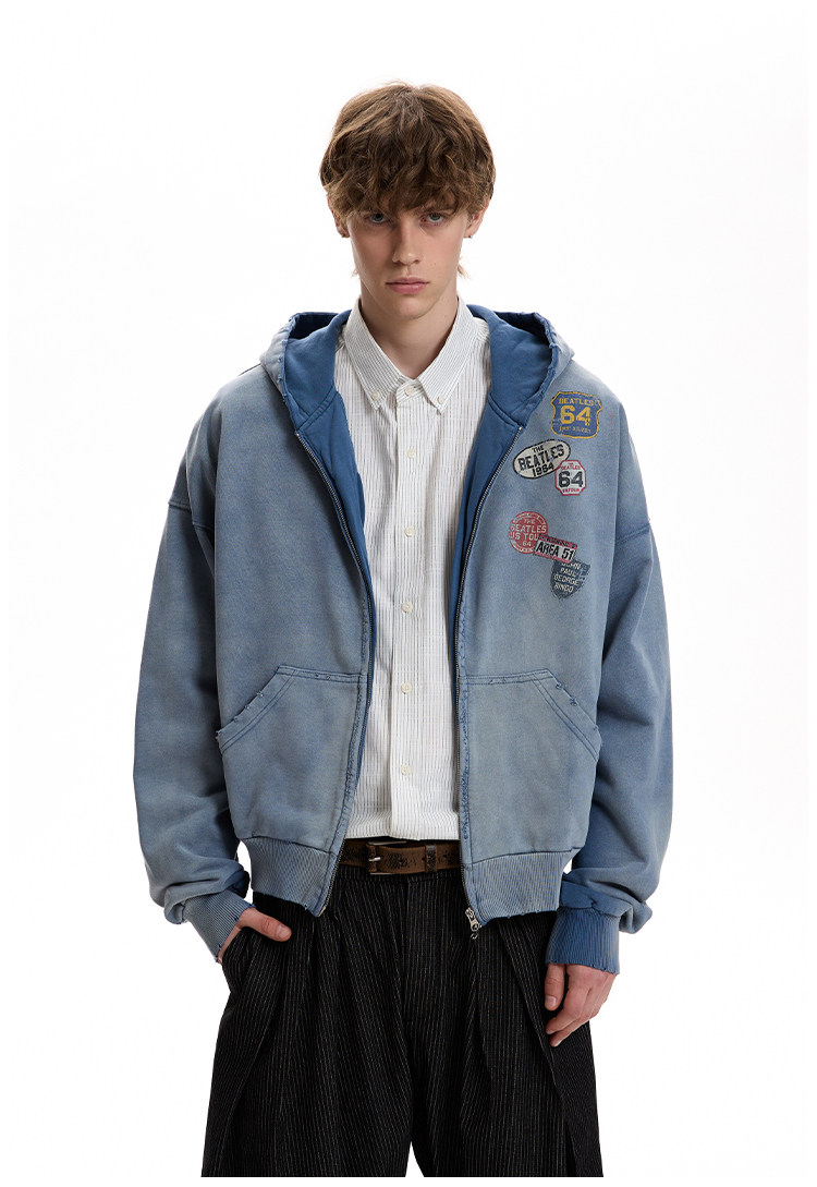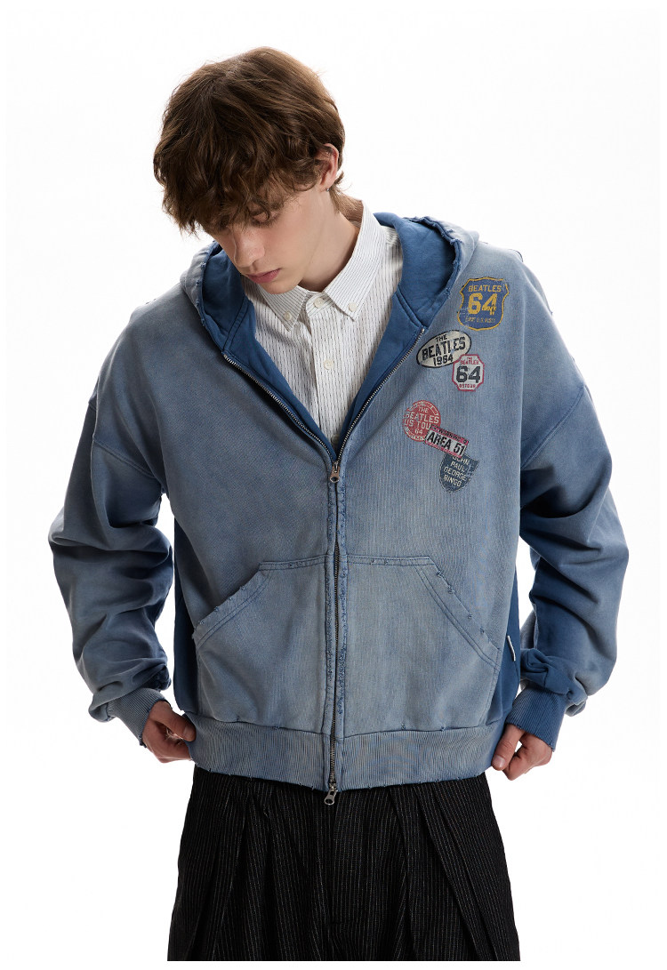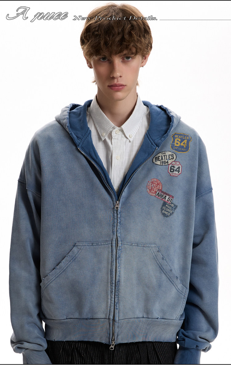 A PUEE Vintage Make Old Label Printed Hooded Sweater
