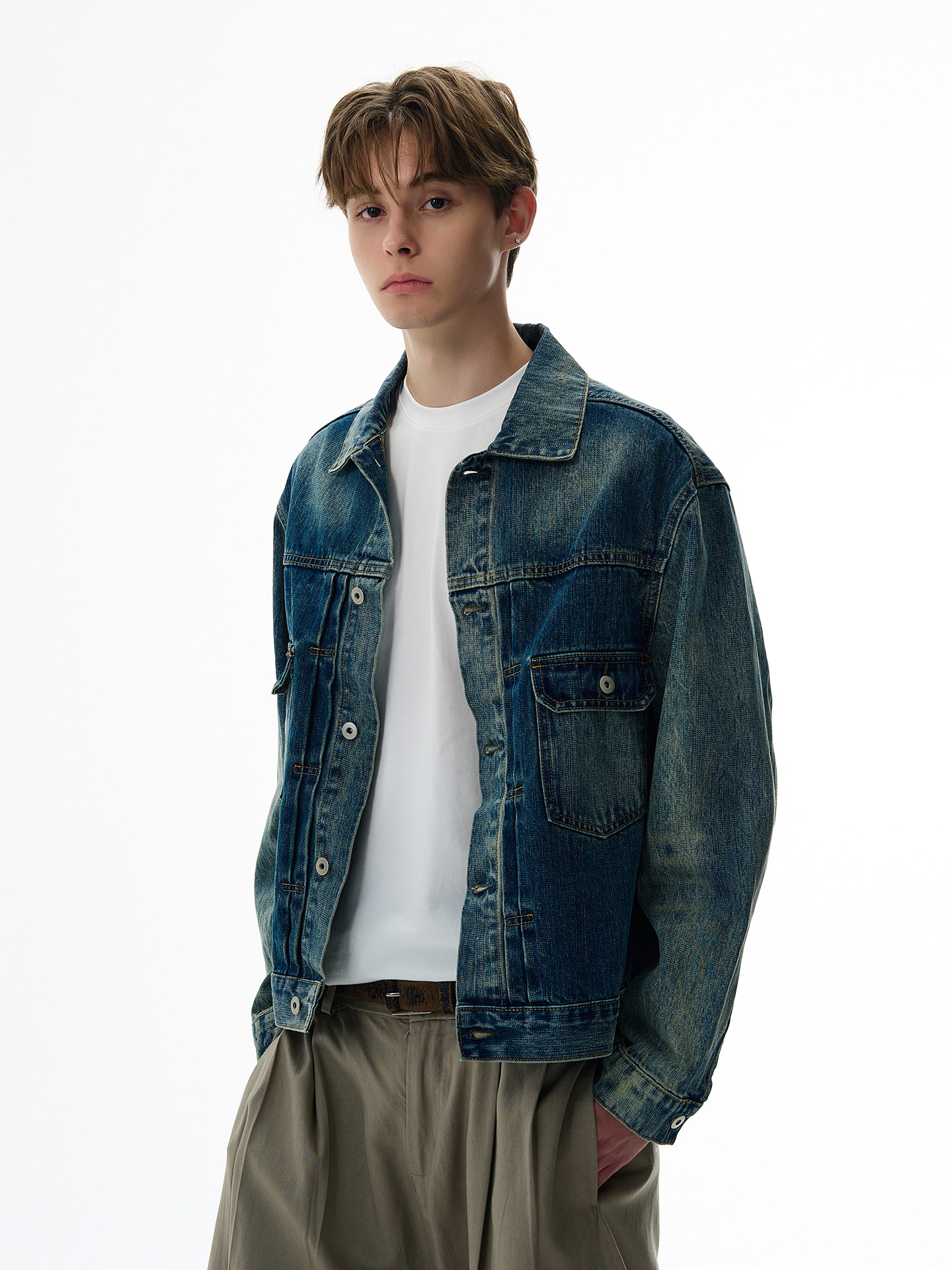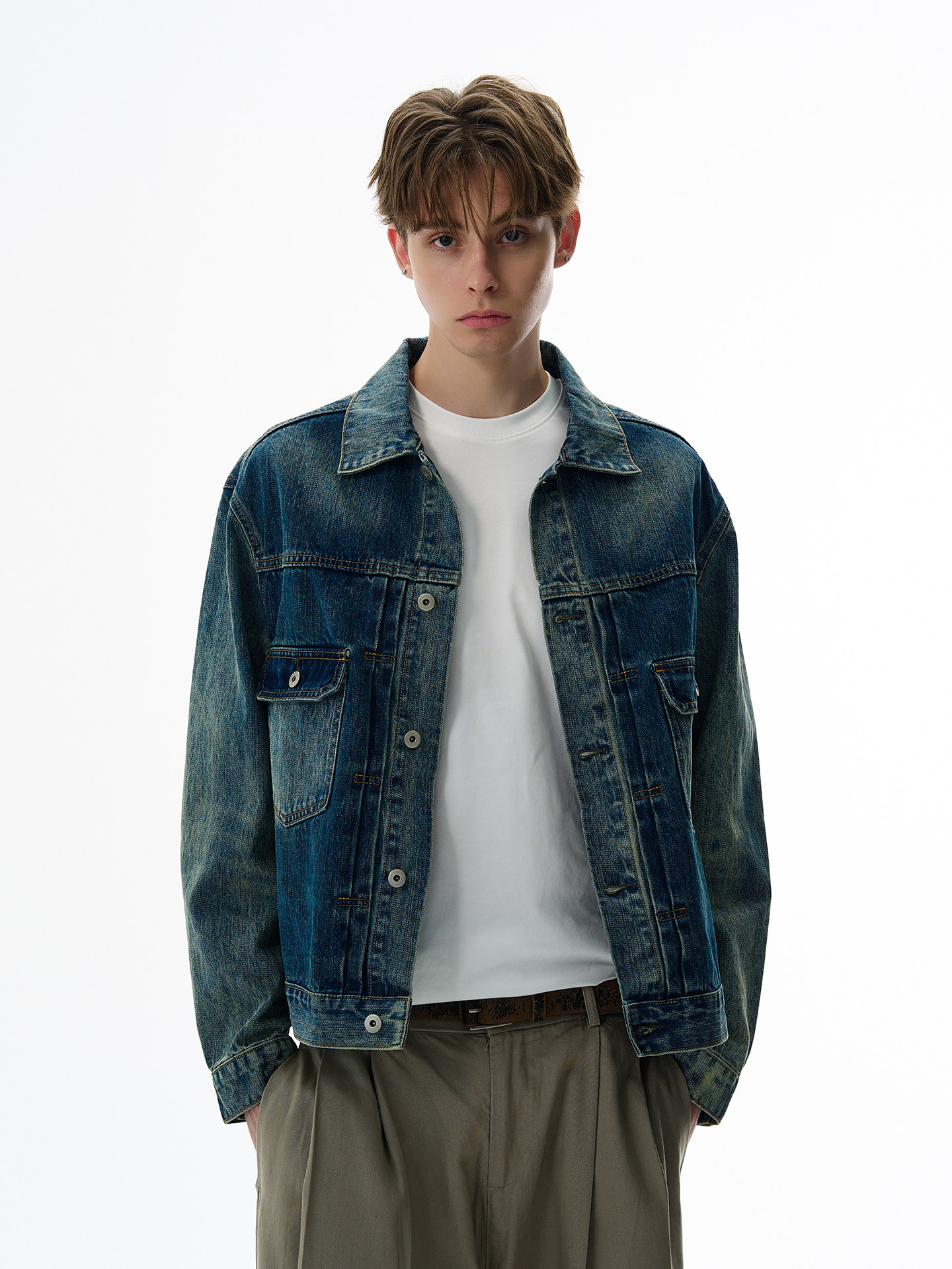 A PUEE Vintage Washed Old Pocket Denim Jacket