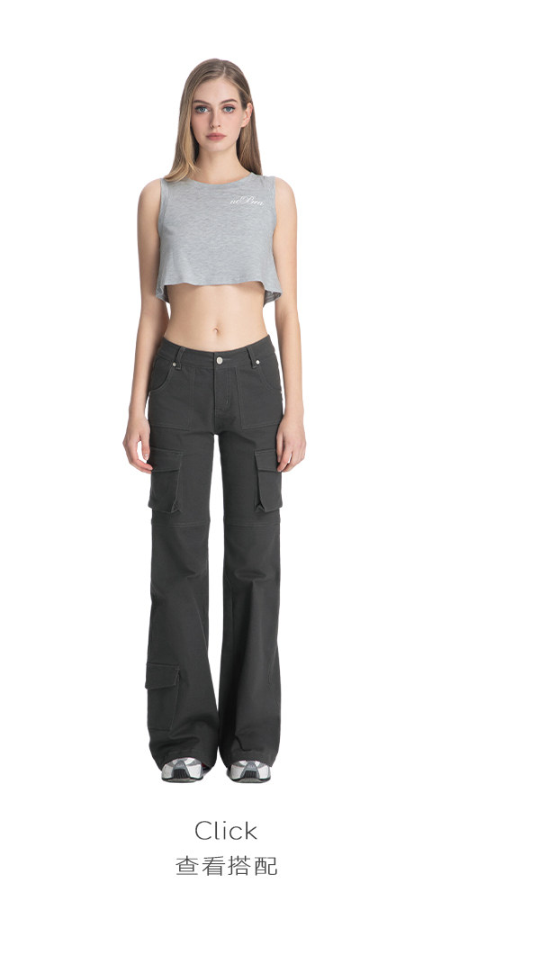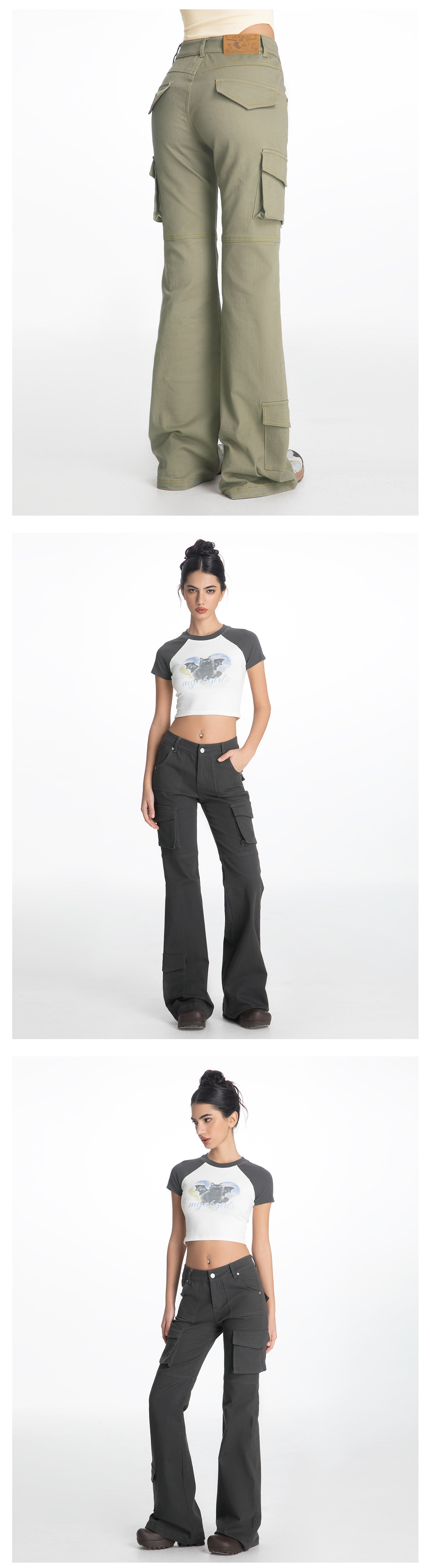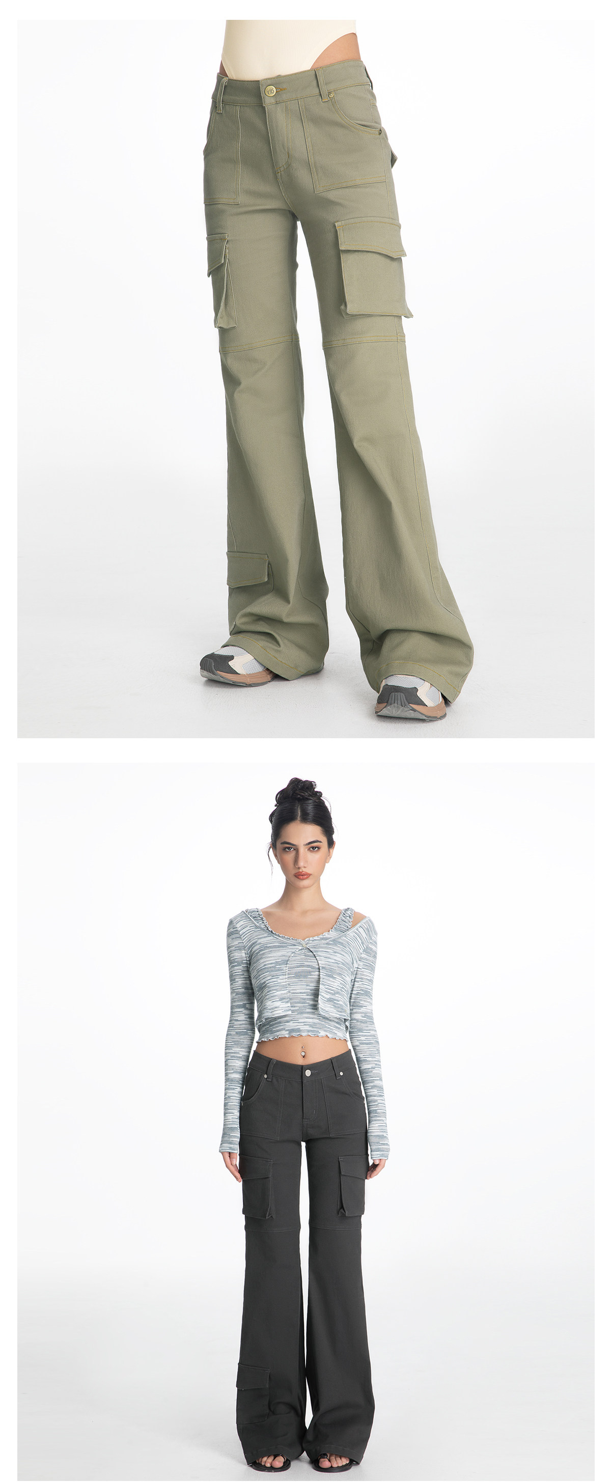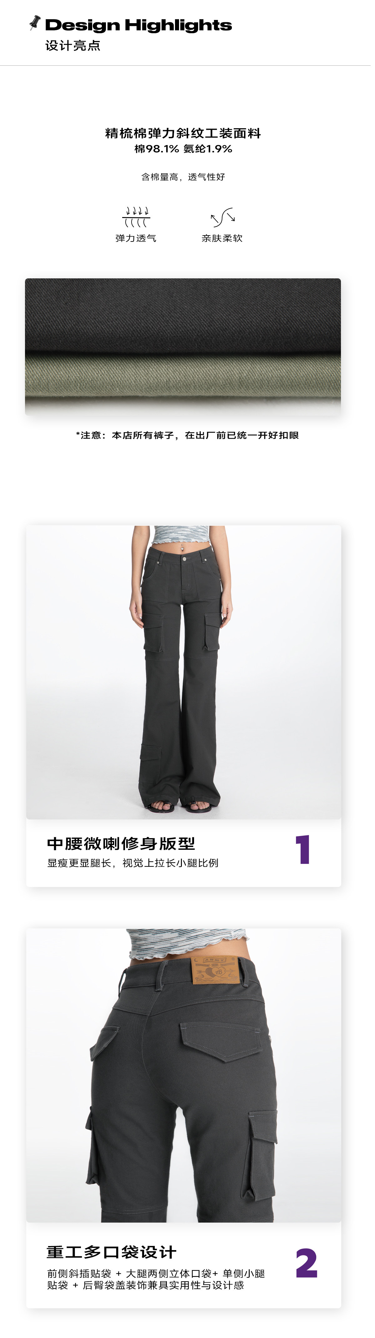 ABMY retro multi-pocket heavy industry micro-pull trousers