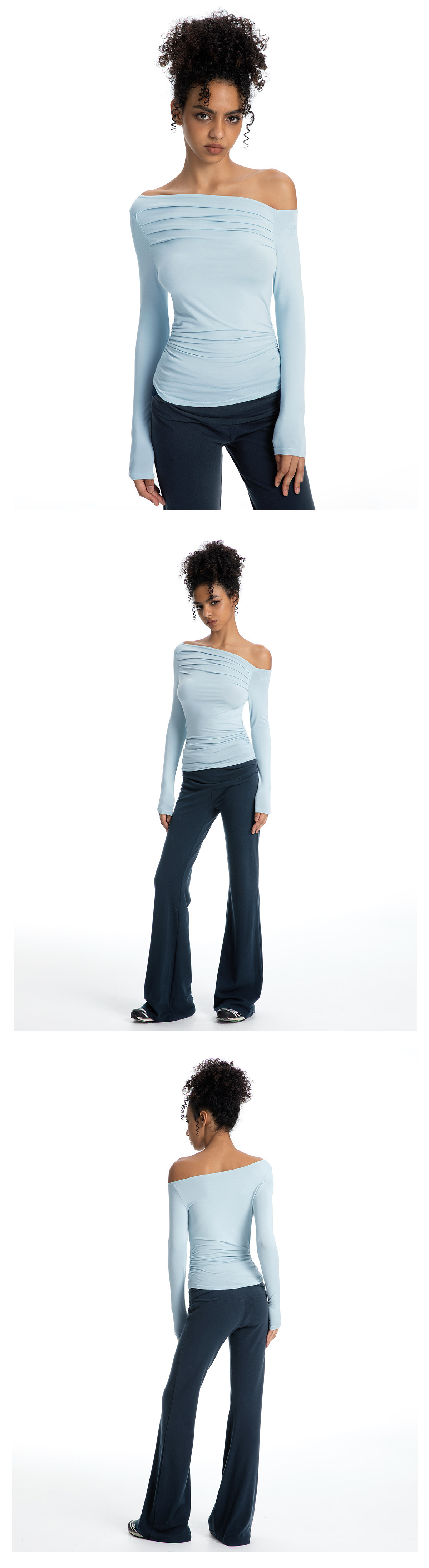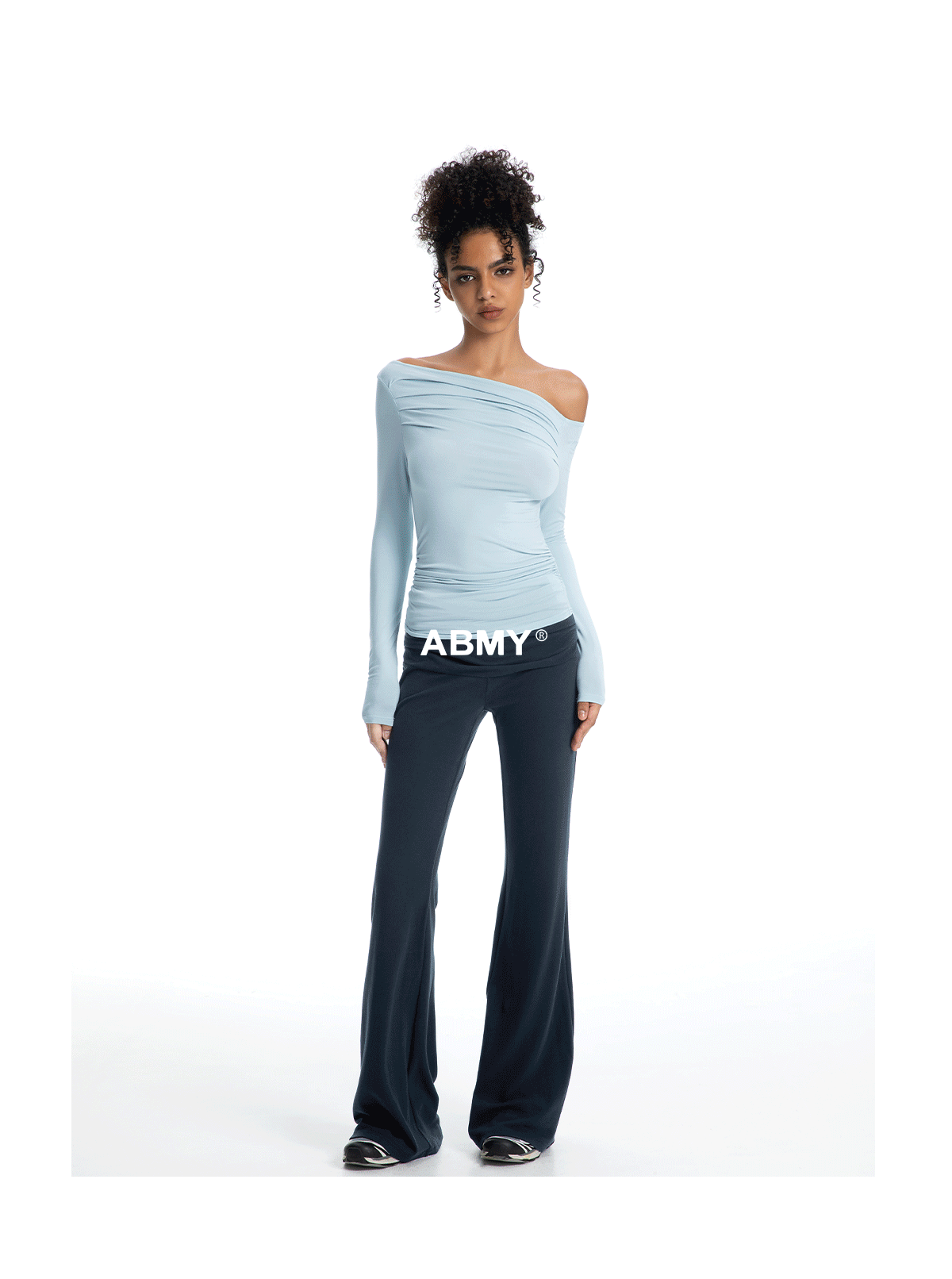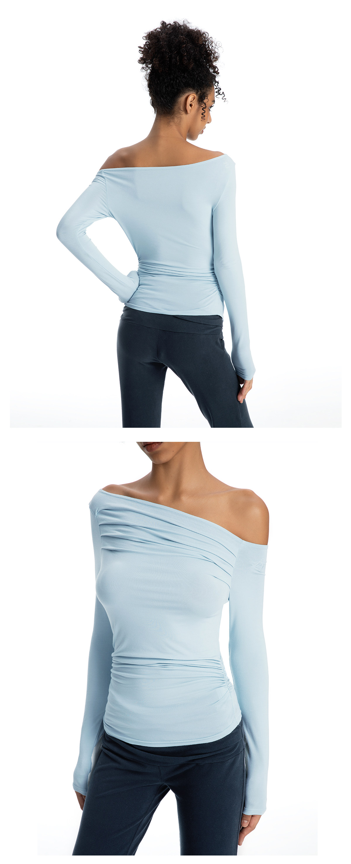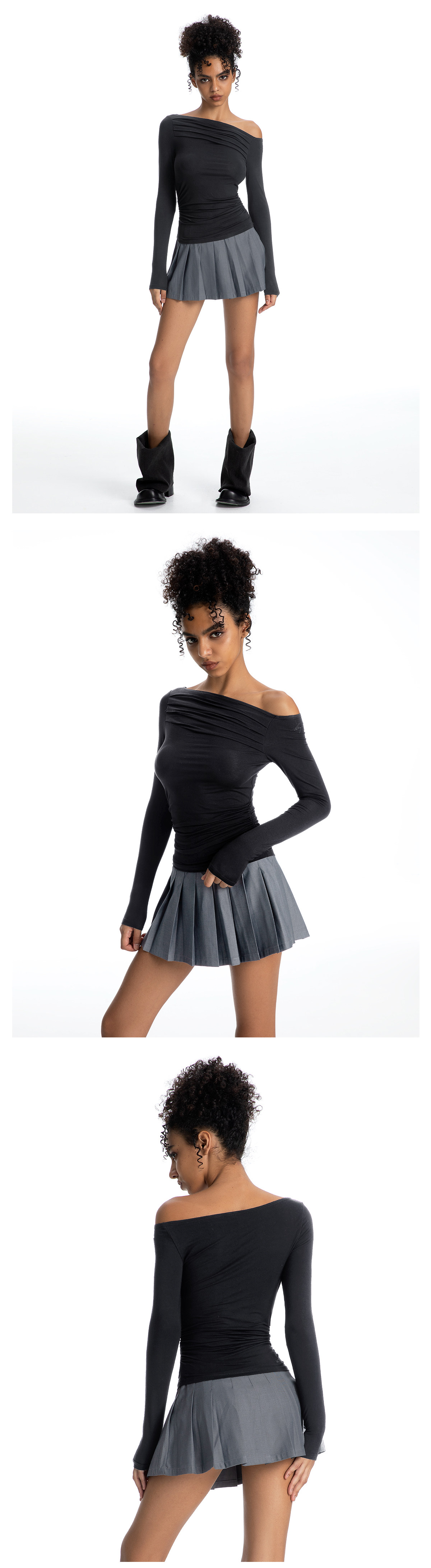 ABMY Pleated Slim Skinny Slash Shoulder Tee