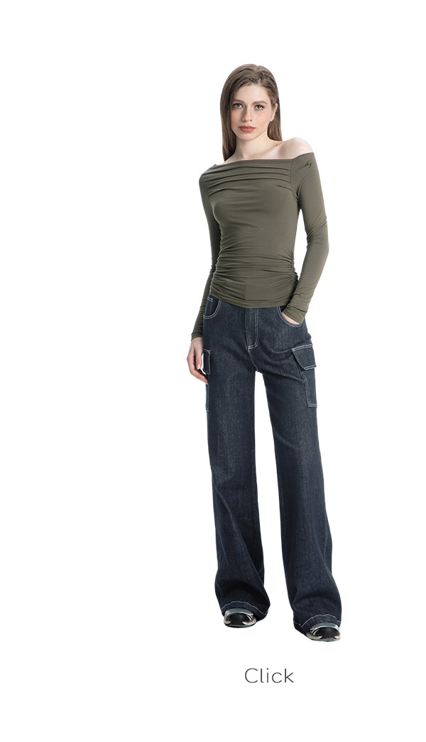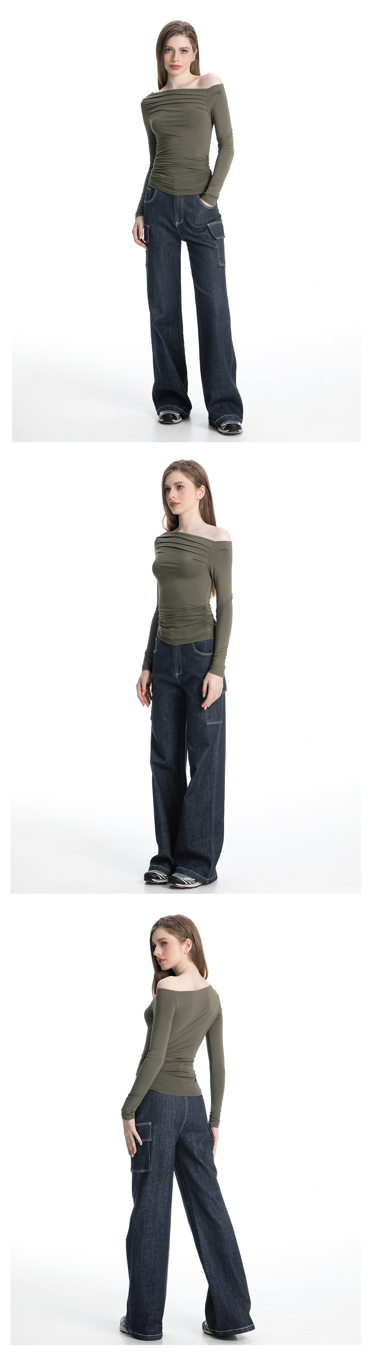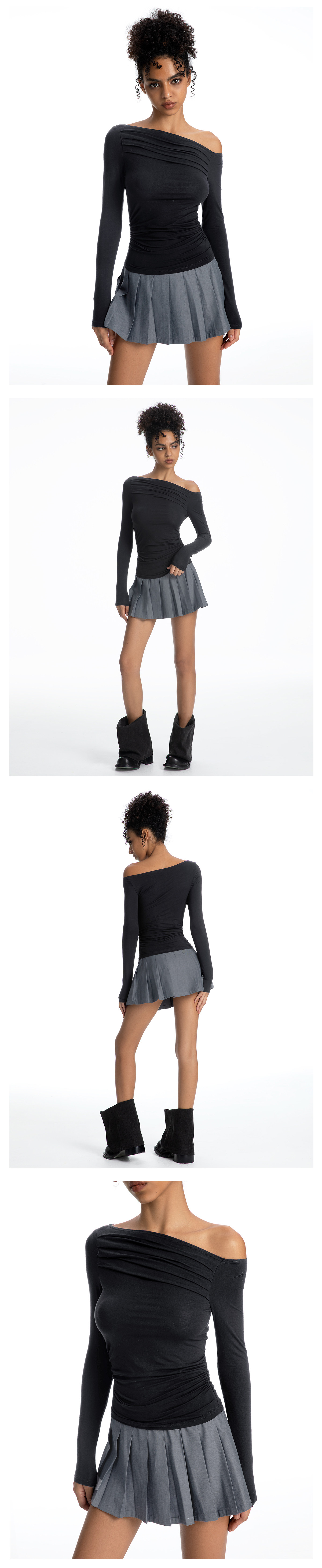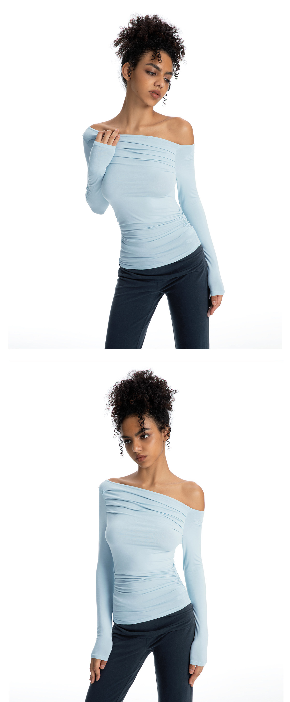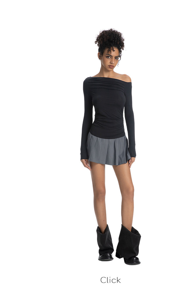 ABMY Pleated Slim Skinny Slash Shoulder Tee