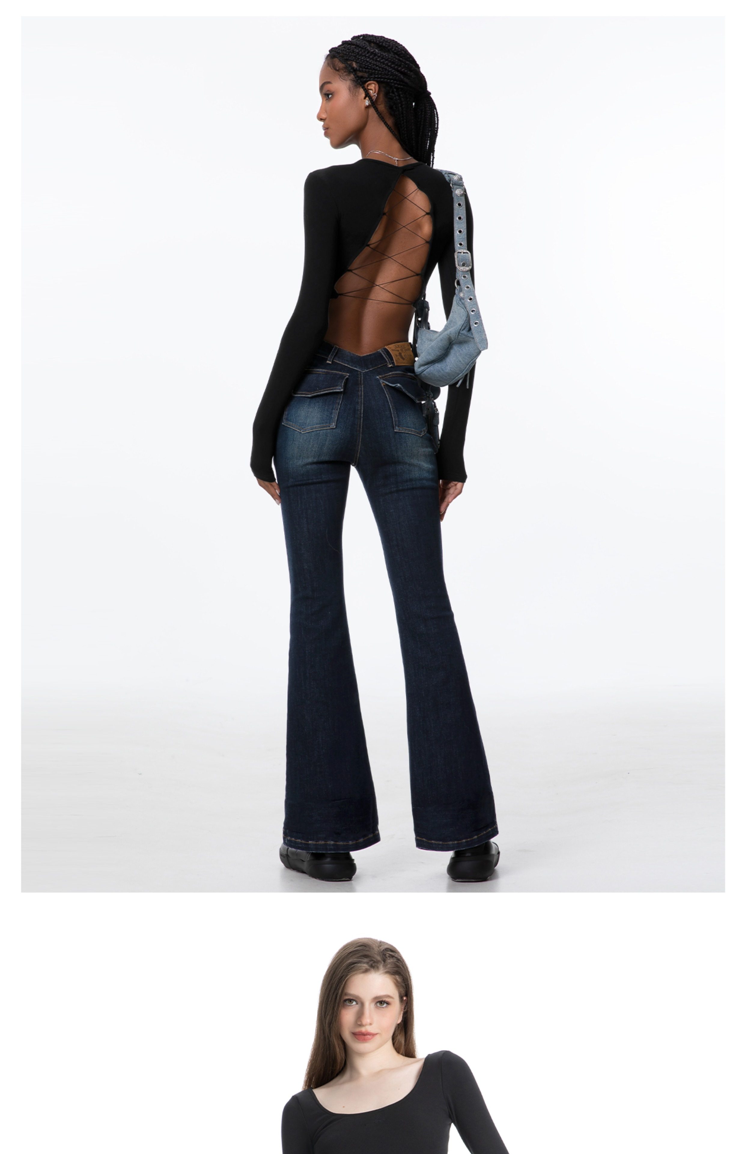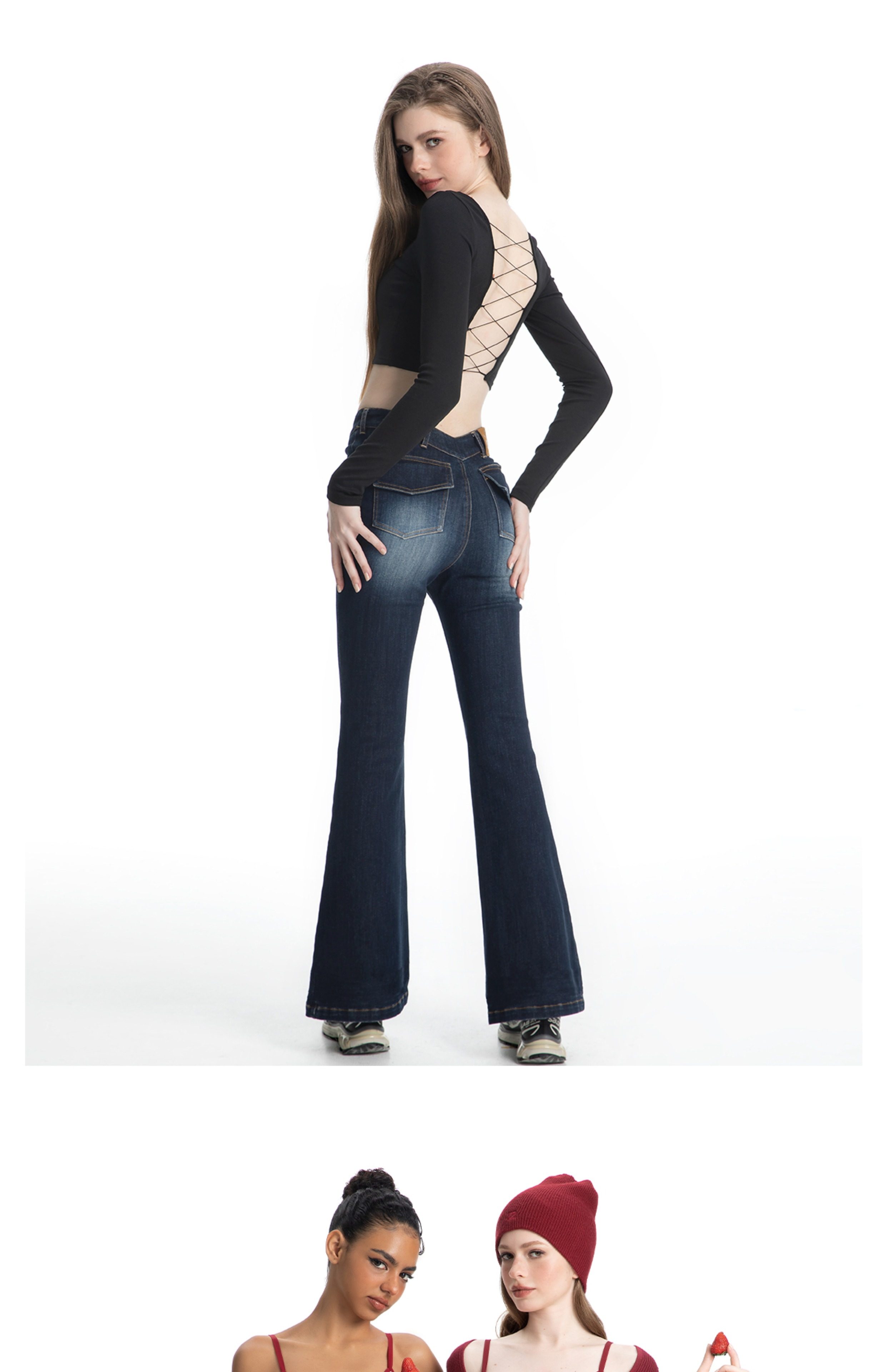ABMY Spice Girl V Waist Skinny Elastic Flared Jeans