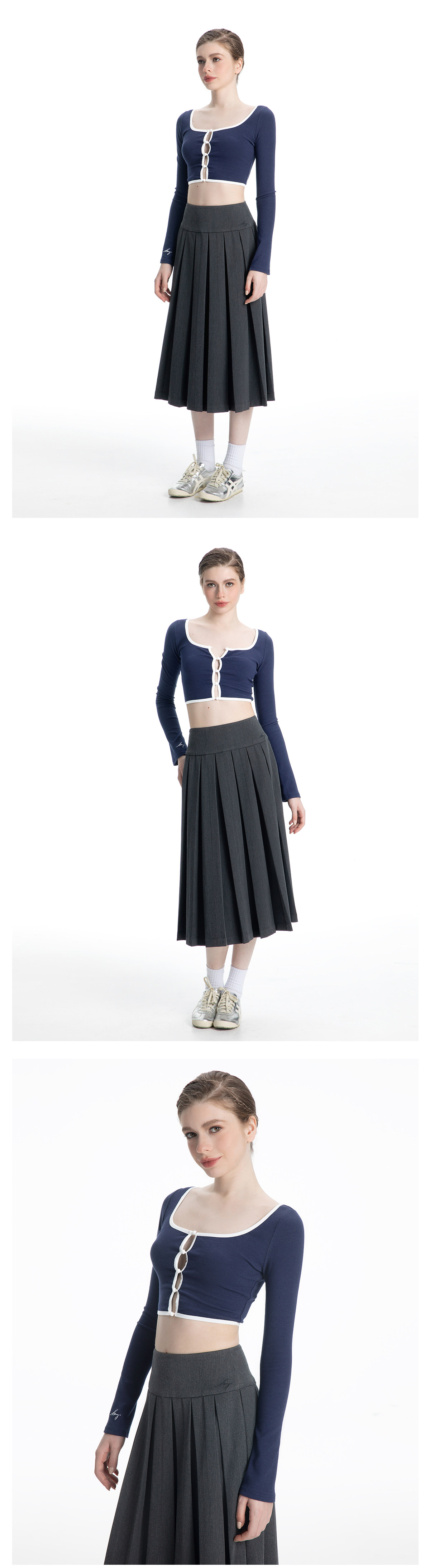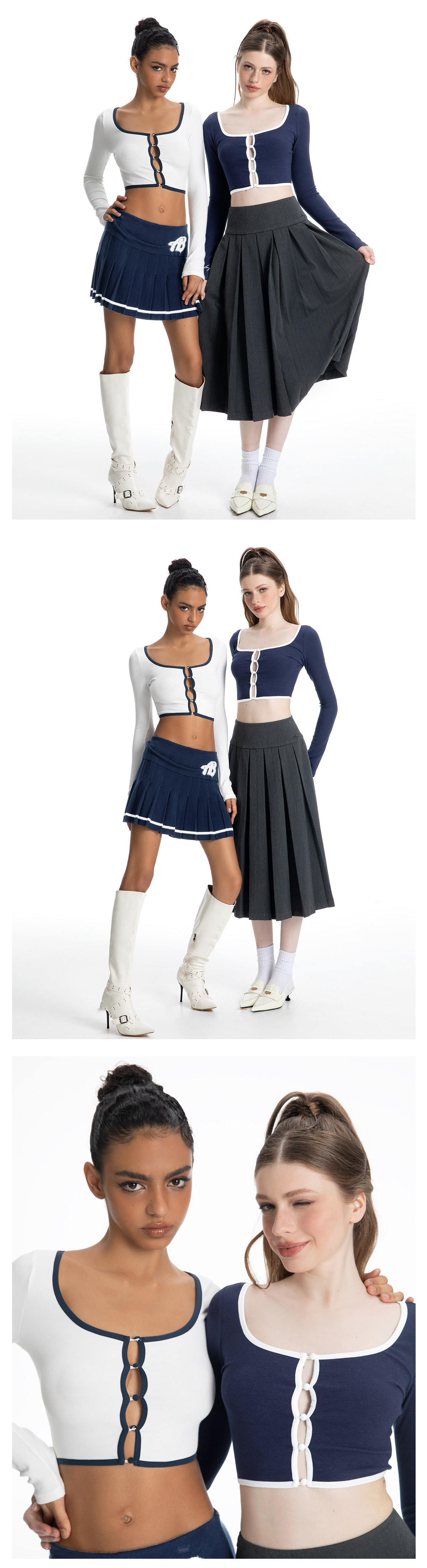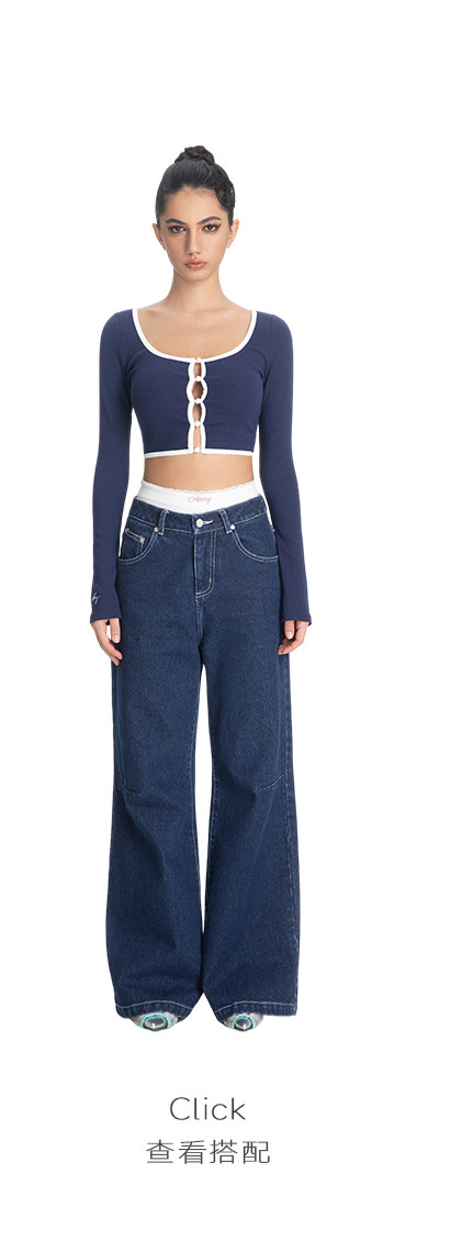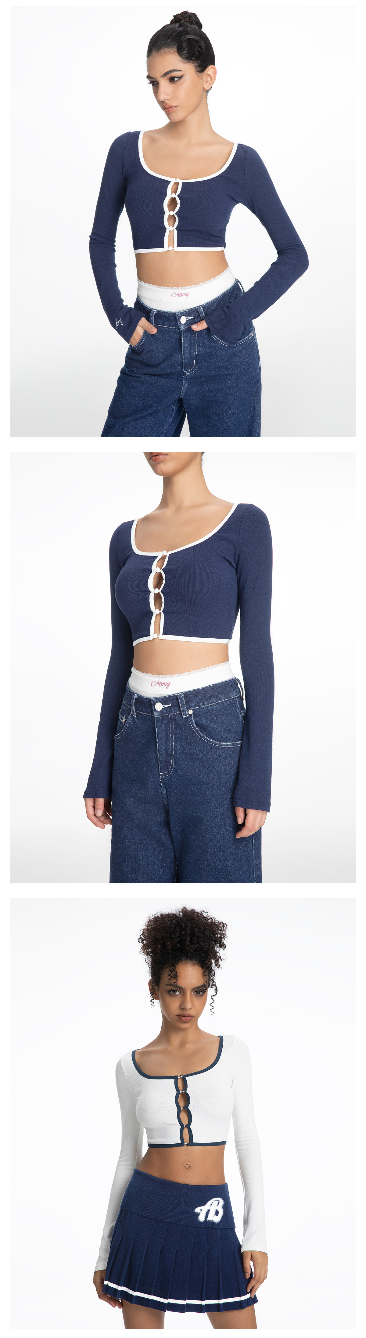 ABMY Square-neck Breasted Contrasting Hemming Cardigan