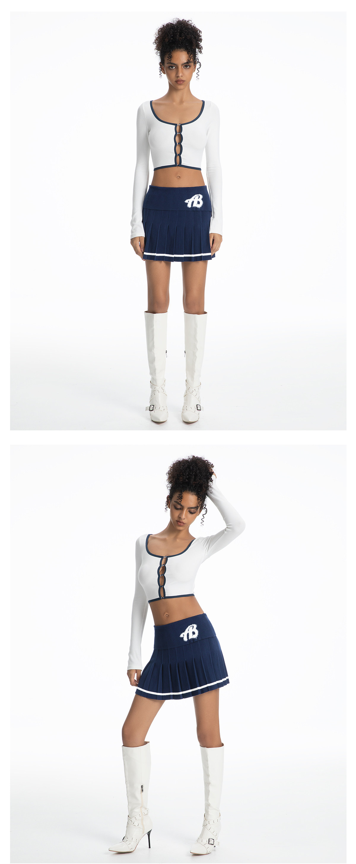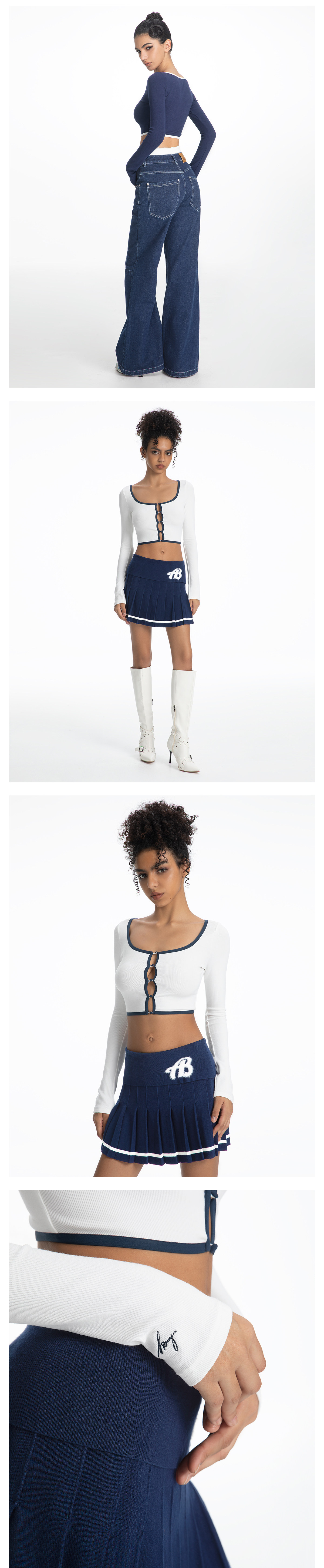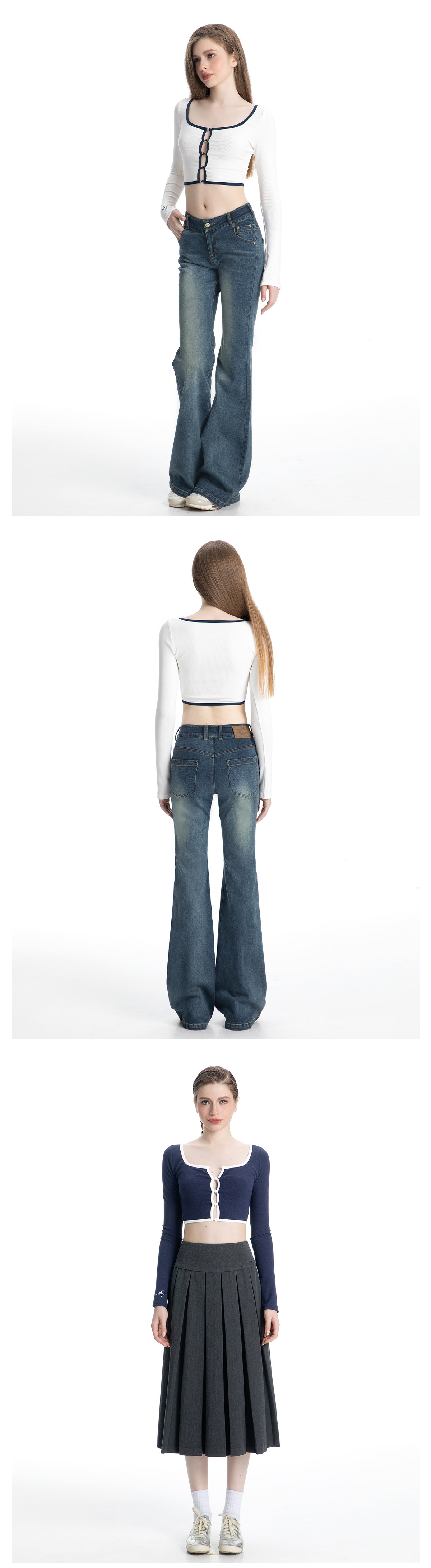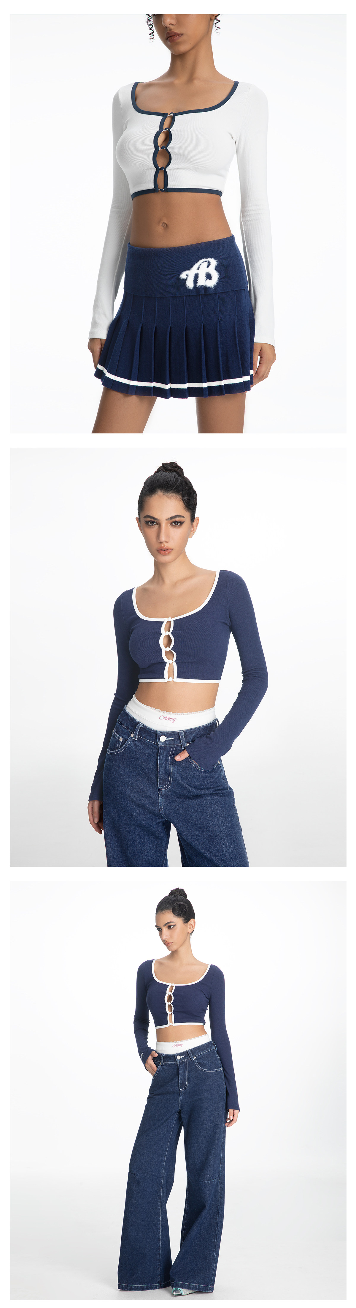 ABMY Square-neck Breasted Contrasting Hemming Cardigan