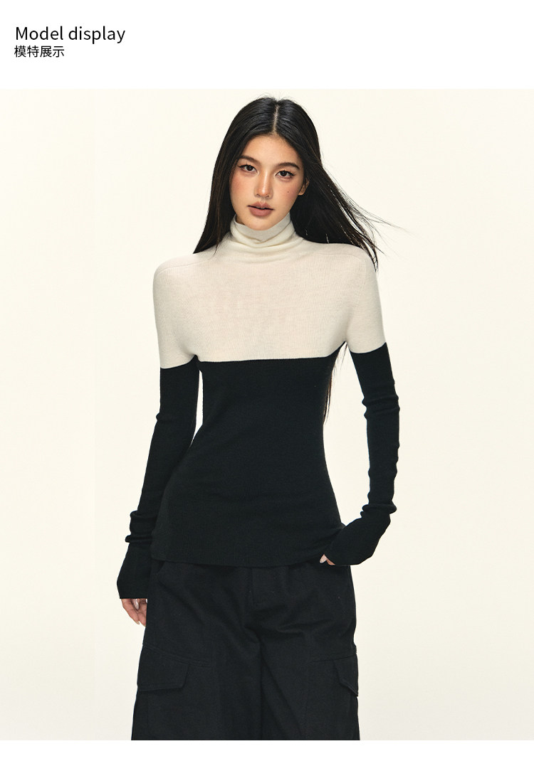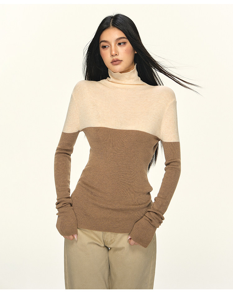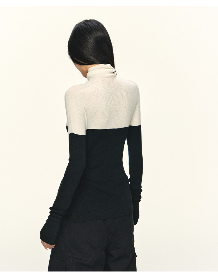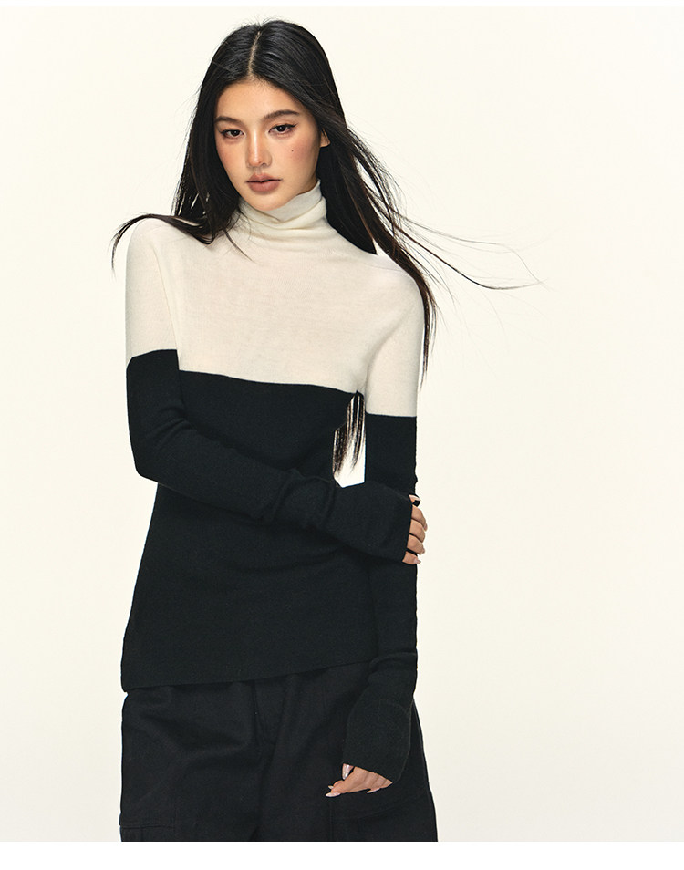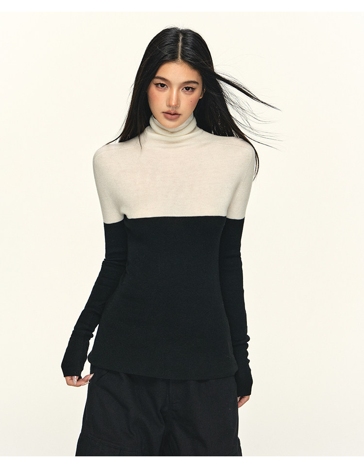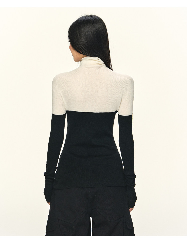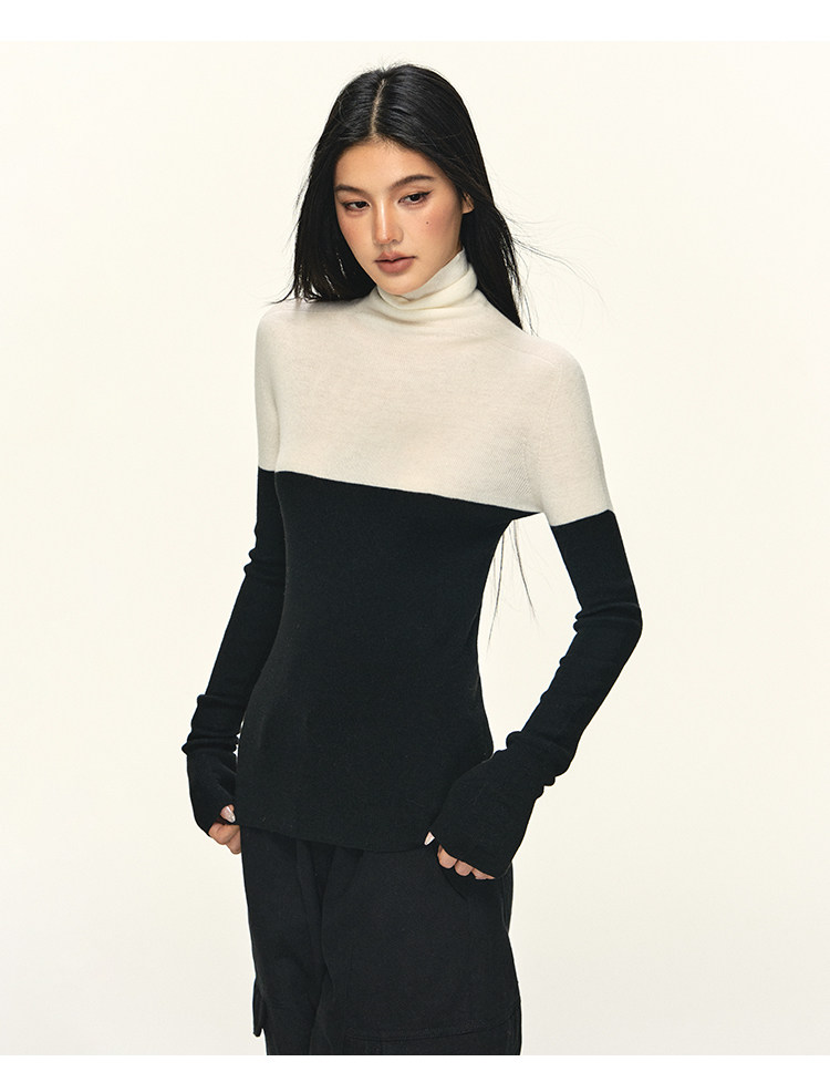 Anna Aneae Contrasting Turtleneck with Knitted Bottom Long Sleeves